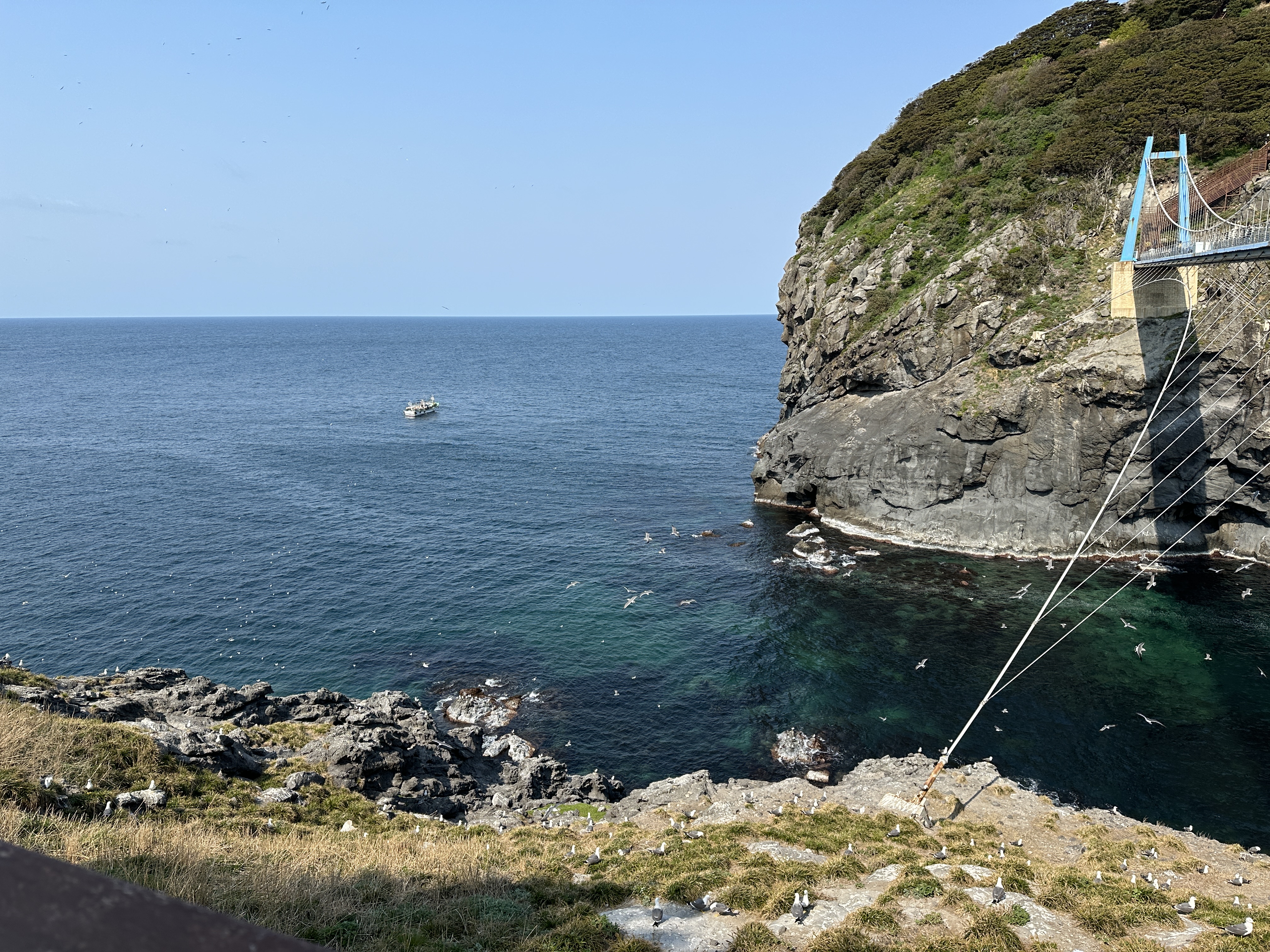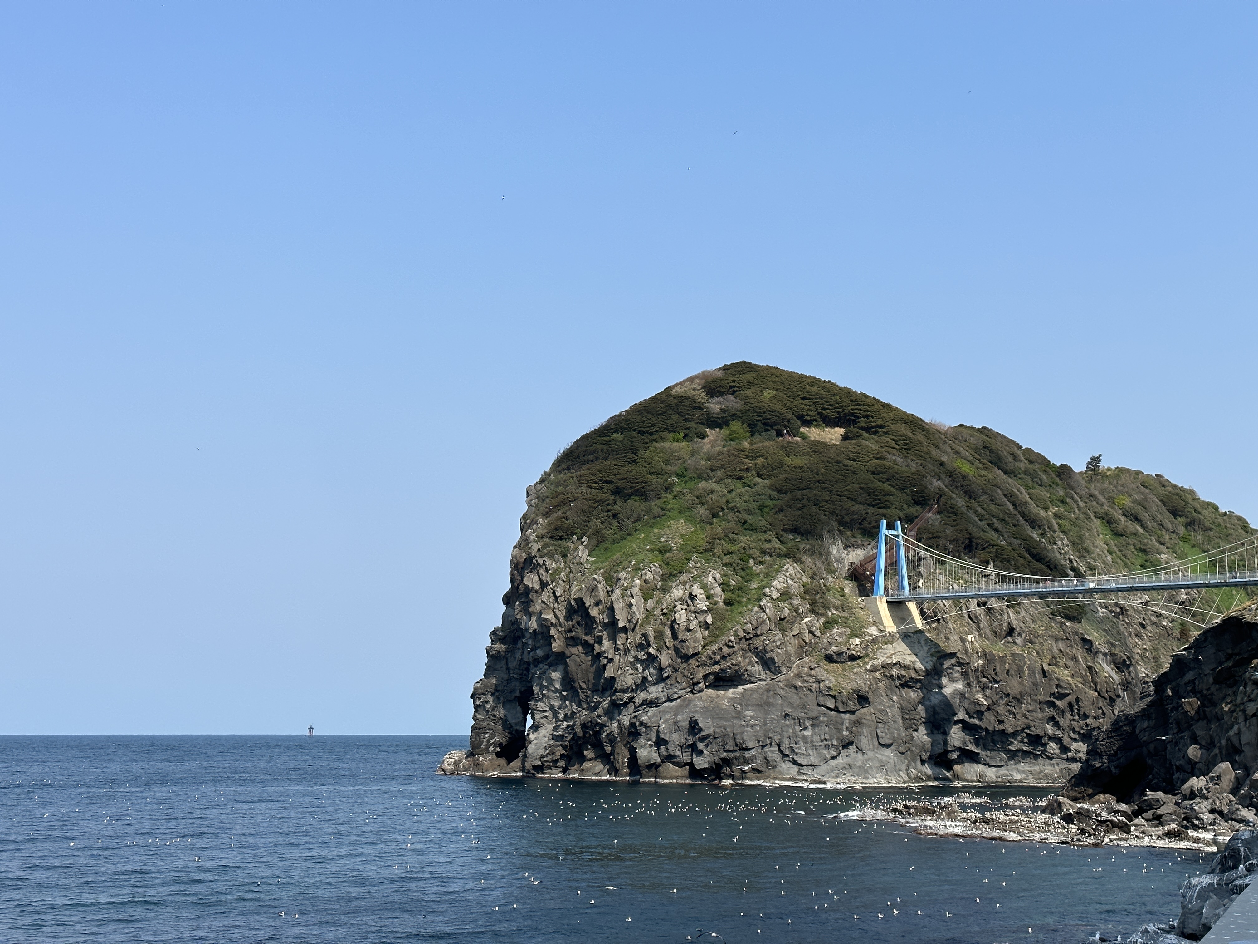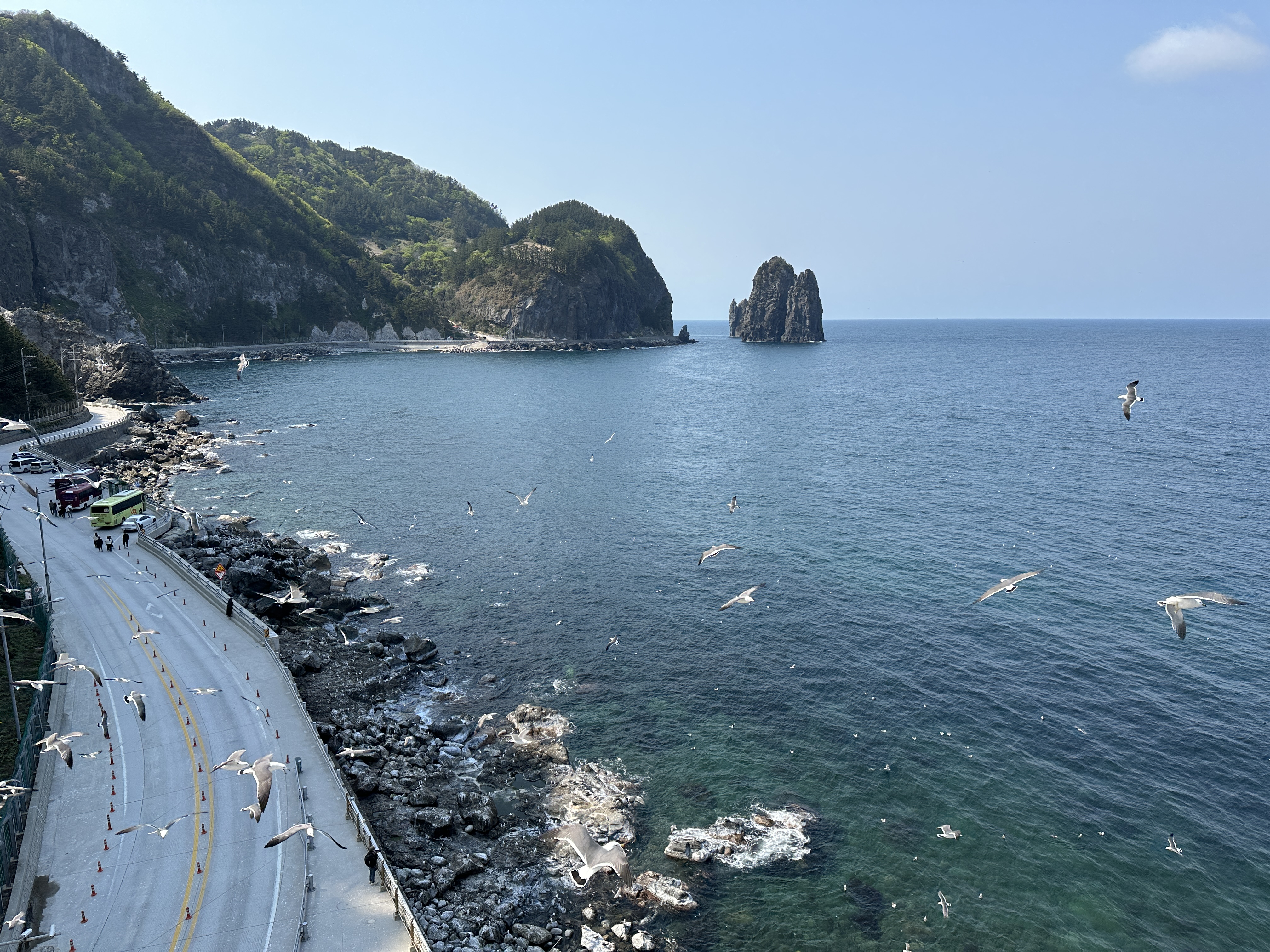 이 곳은 관음도로 향하는 다리를 건너면서 동쪽을 보면 볼 수 있는 방사상 주상절리입니다. 저 지형 자체가 생각보다 아름다워요, 갈매기들도 어마어마하게 많고 감탄하면서 보게 됩니다.