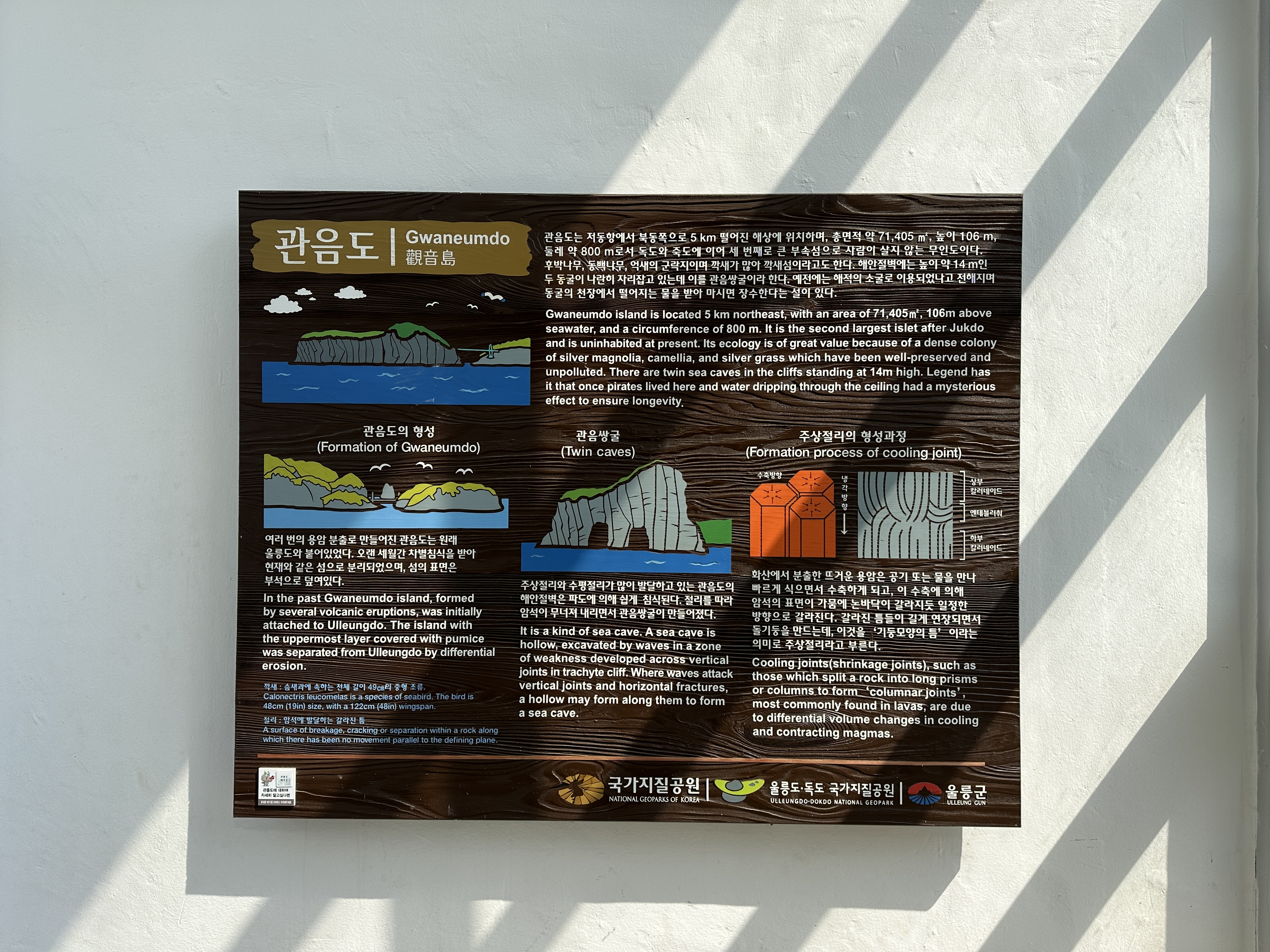 관음도가 원래는 울릉도와 붙어있었다고 하는 유래부터, 형성과정까지 자세하게 설명이 되어 있습니다. 이런 설명들을 보다보면 자연의 대단함을 느낍니다.