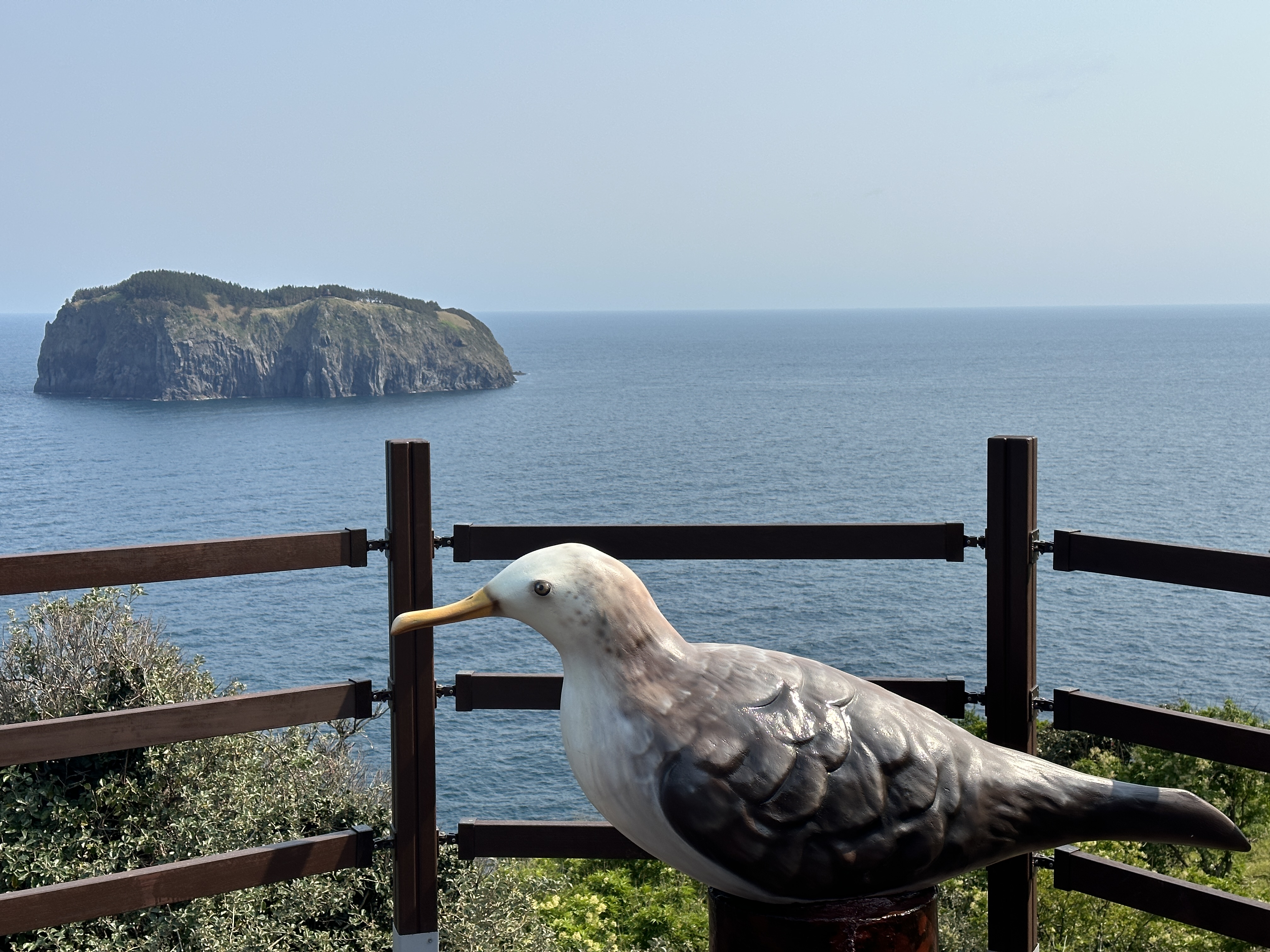 죽도가 보이기 시작합니다. 전망대에 웬 새가 있나 하고 놀라서 가봅니다. ㅋㅋㅋㅋ