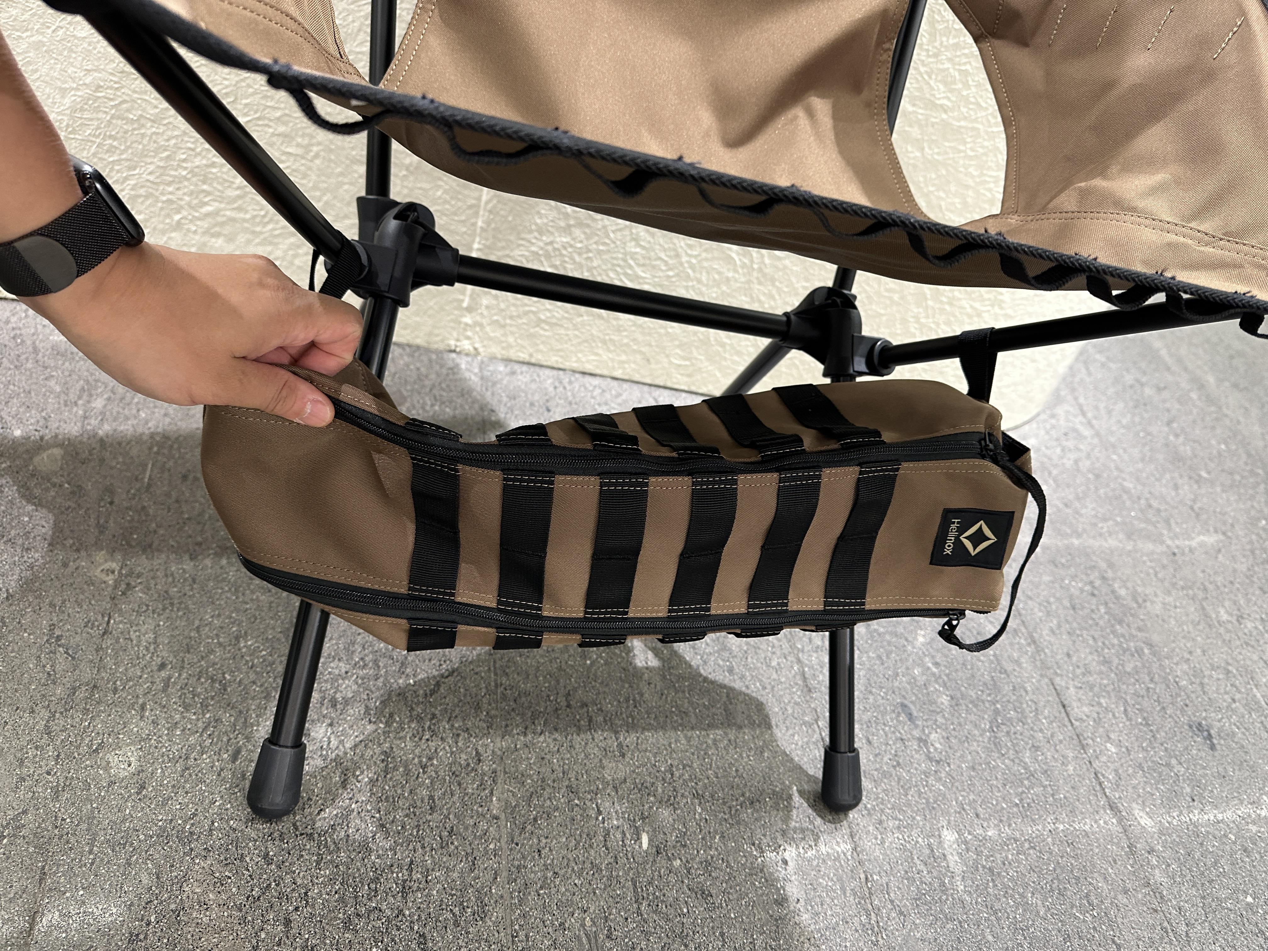 그리고 처음보는 체어가 하나 보였습니다. 기존의 아웃도어라인이나 택티컬 라인에서 사용되는 체어들과는 조금 차이가 있어 보였습니다. 엄청나게 많은 몰리 시스템과 엉덩이 옆쪽에 트인 것이 아주 독특했습니다.