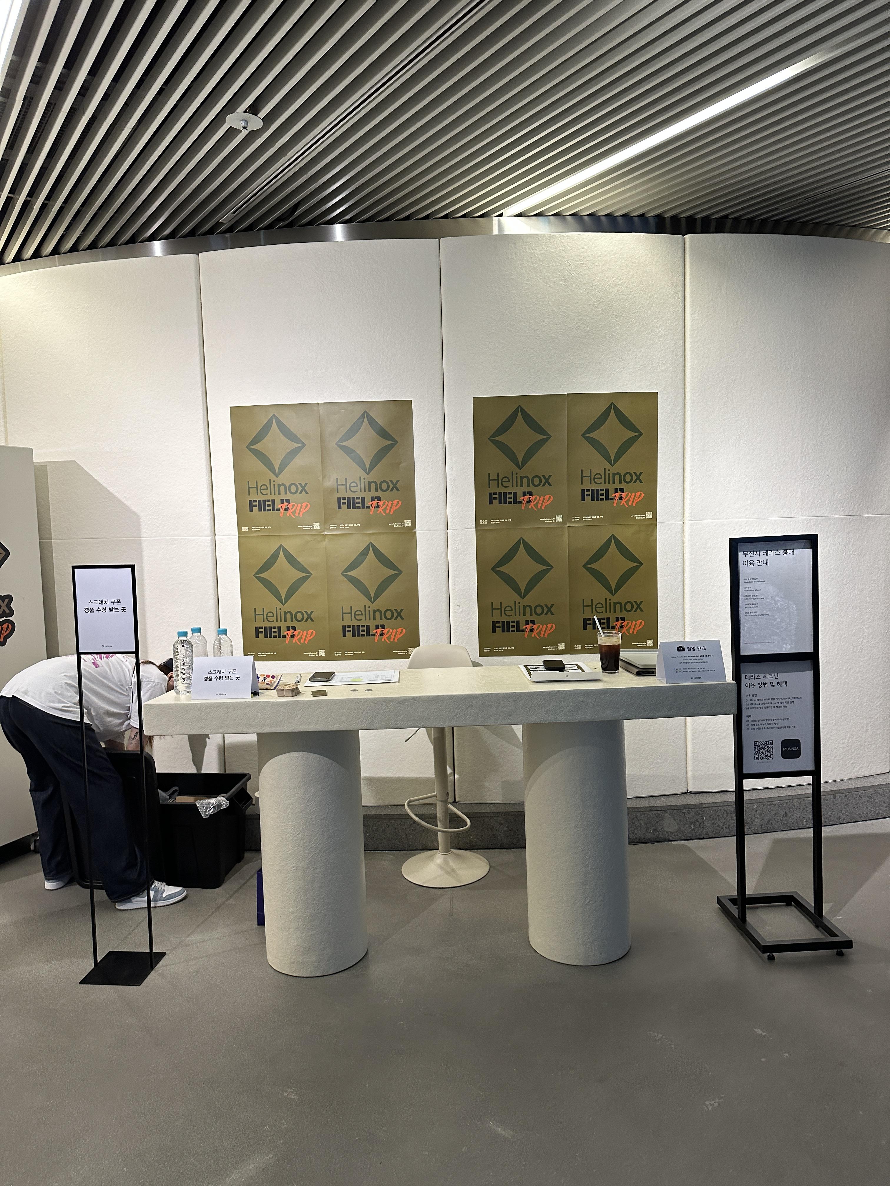 엘리베이터를 내리시면 이렇게 무신사 테라스 홍대 라고 적혀있는 입구가 나옵니다. 입구부터 이미 헬리녹스 필드트립 행사 부스가 마련되어 있어요. 정말 많은 인파들이 몰렸네요. 저처럼 캠퍼뿐 아니라 커피 마시러도 오시는 분들이 많아요.!!