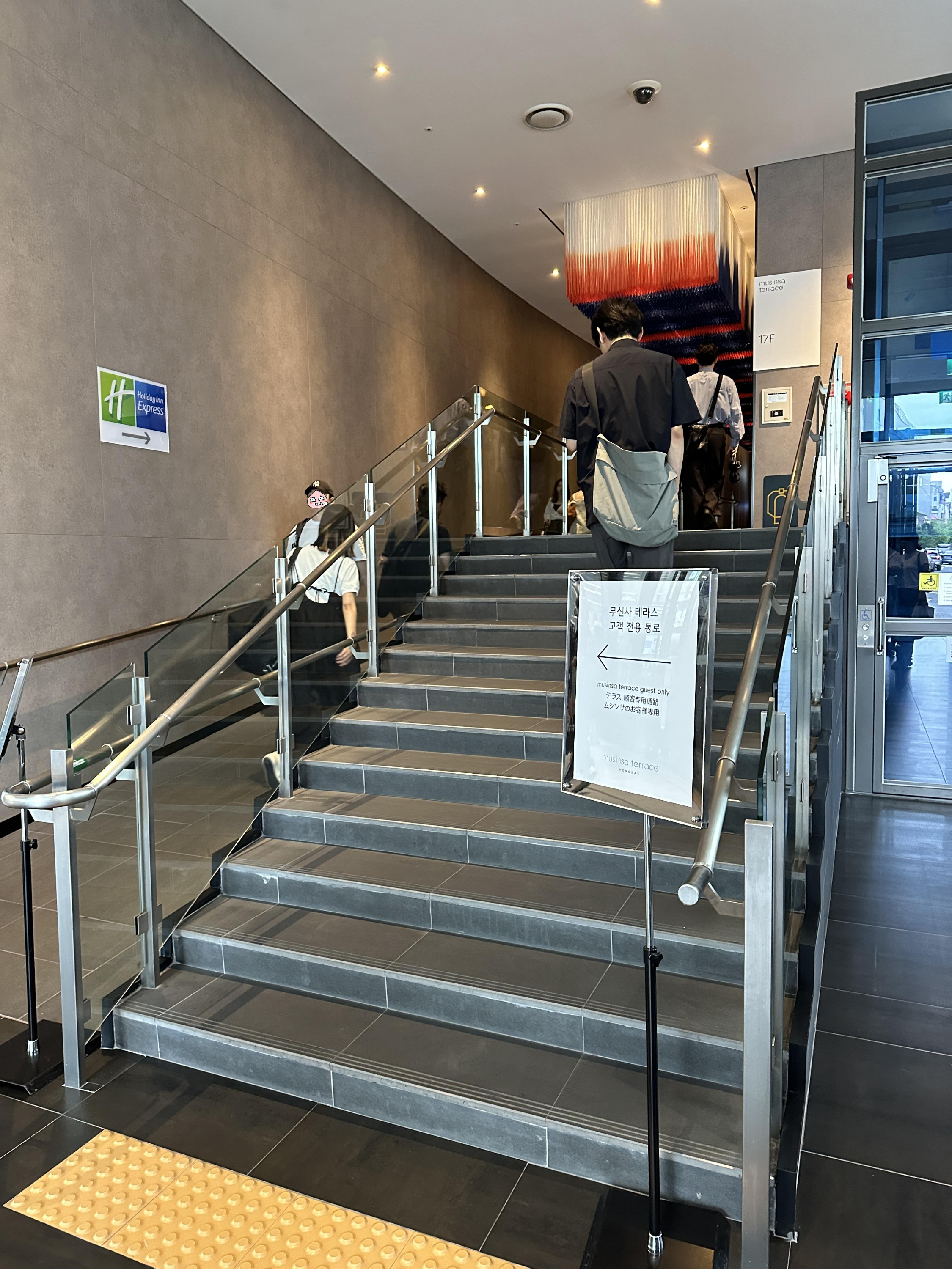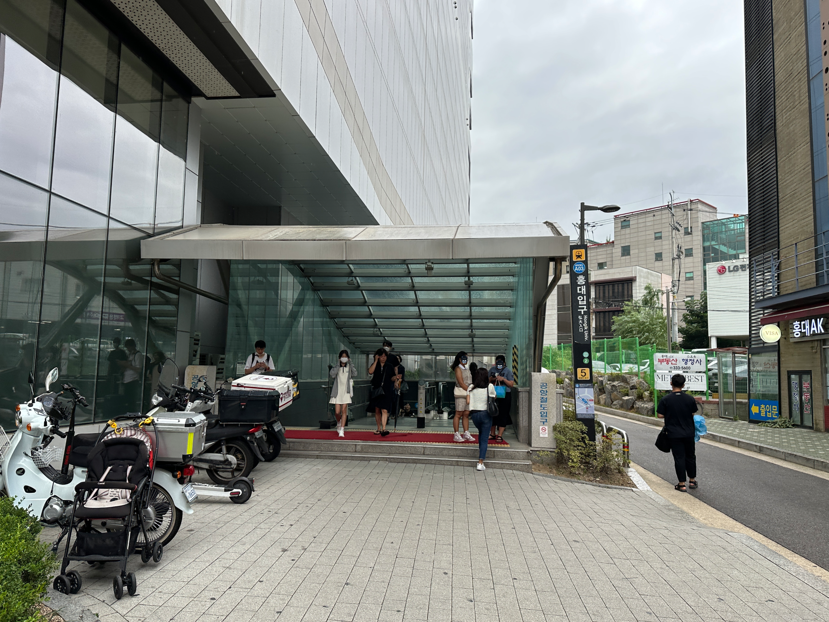 홍대입구역 5번출구 AK 플라자 17층으로 향합니다. 건물과 직접 연결이 되어 있지는 않았지만, 바로 옆에 가까운 위치여서 꽤 편하게 이동할 수 있었습니다. 또한 무신사 테라스는 전용 엘리베이터가 있어서 17층까지 다이렉트로 운행이 가능했어요.
