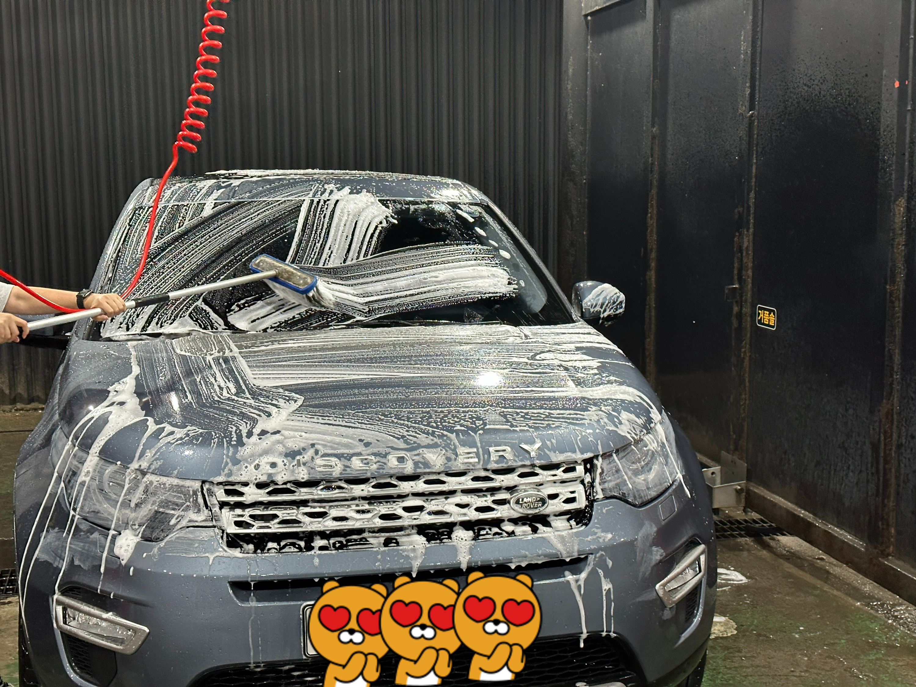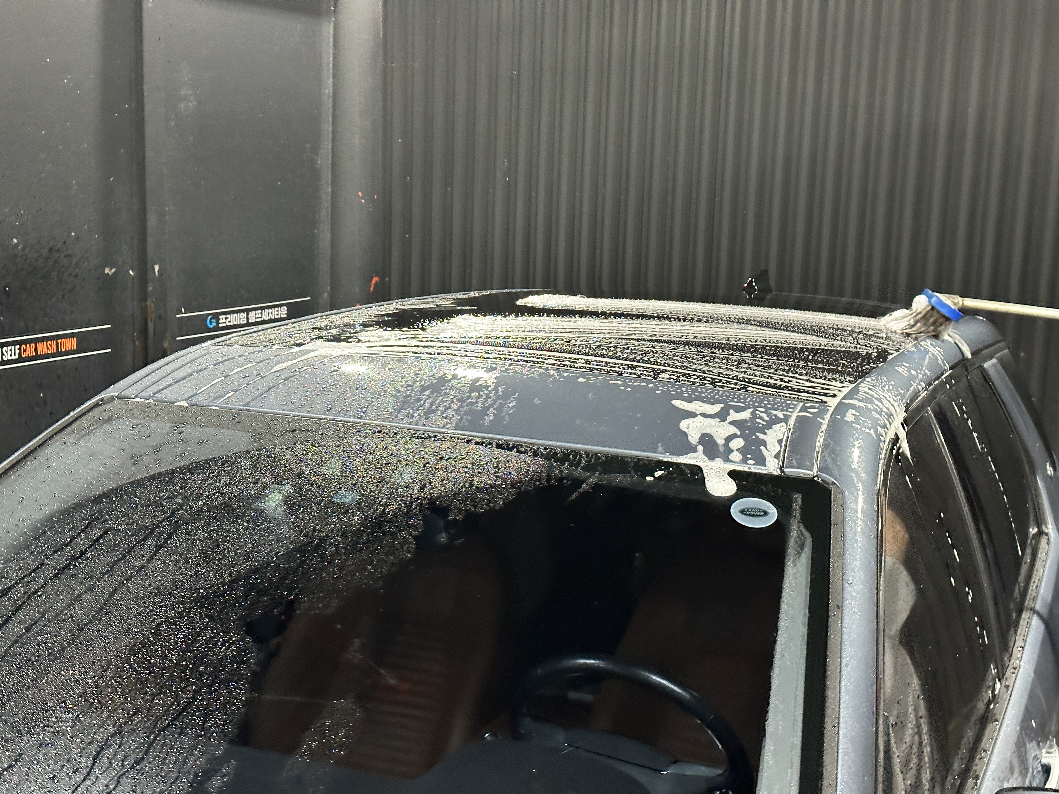 고압수를 뿌리고, 거품솔로 차 곳곳에 거품을 묻혀줍니다. 구석구석 빠짐없이 묻혀주는 모습입니다.