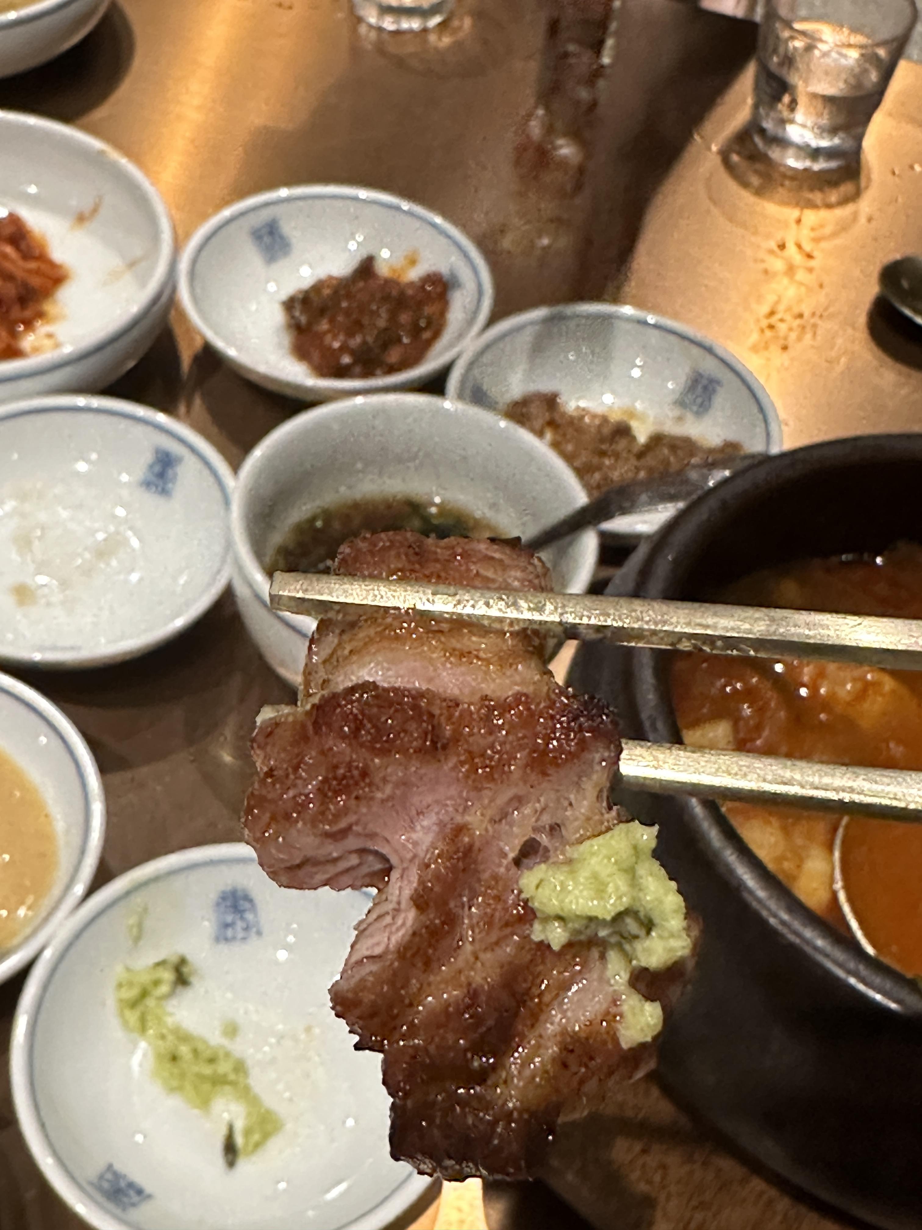 - 14일 숙성 삼겹살 역시 확실히 더 나은 맛이긴 합니다. 된장을 발라서 숙성시킨다고 했는데 그 느낌이 다르긴 확실히 다릅니다.