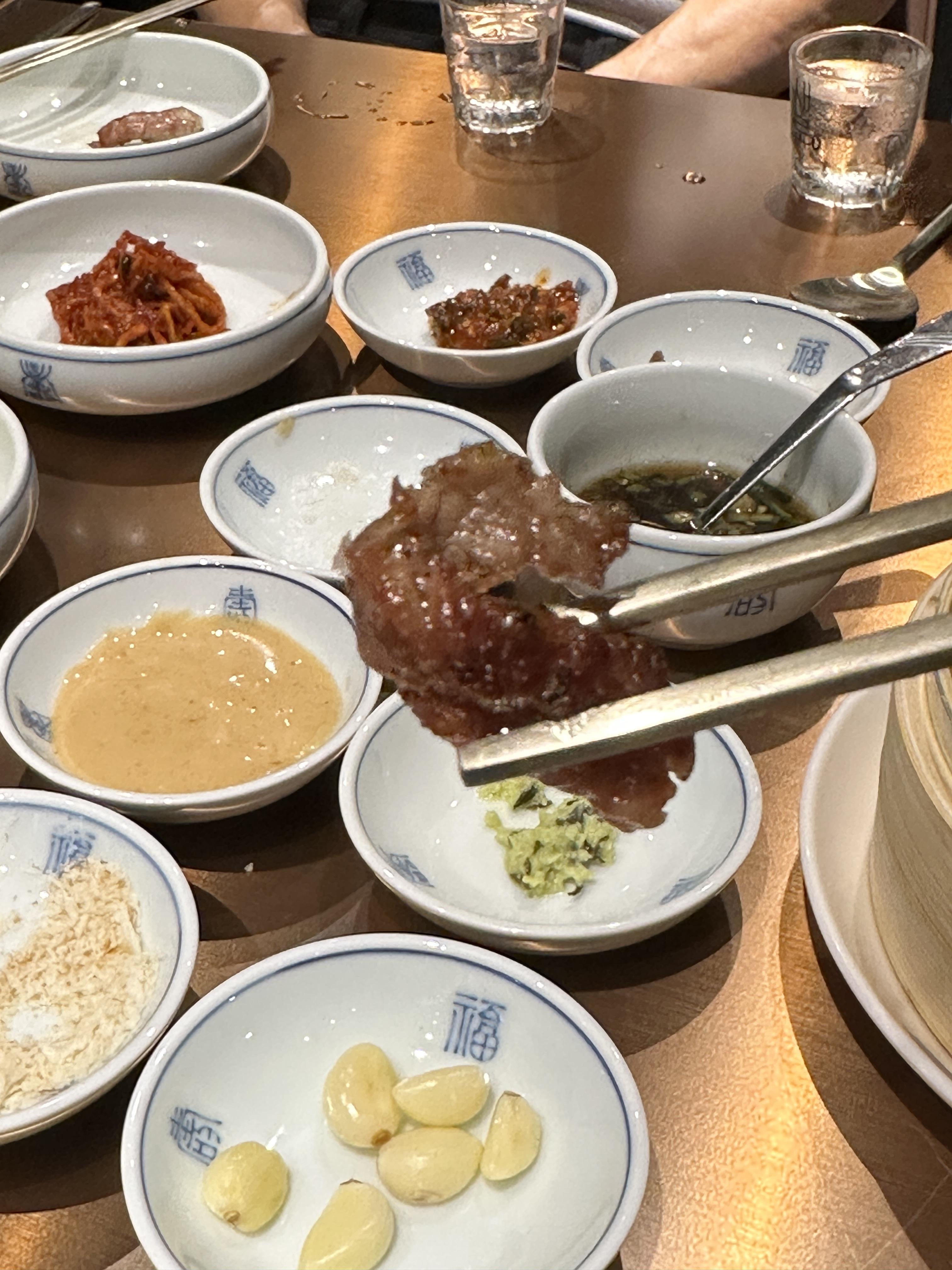 잘 구워진 고기는 직원분의 친절한 가이드로 다양하게 맛볼 수 있습니다.
