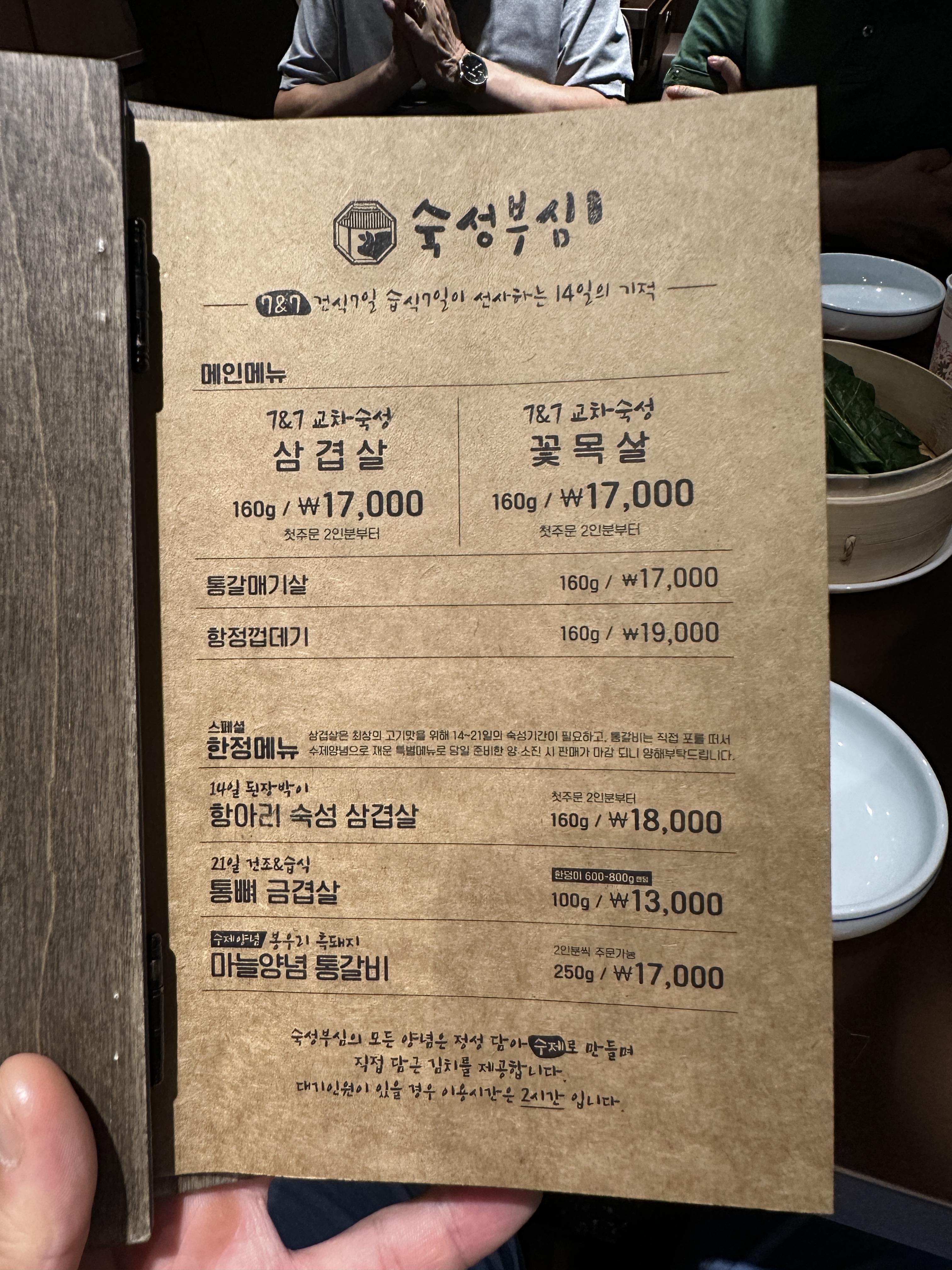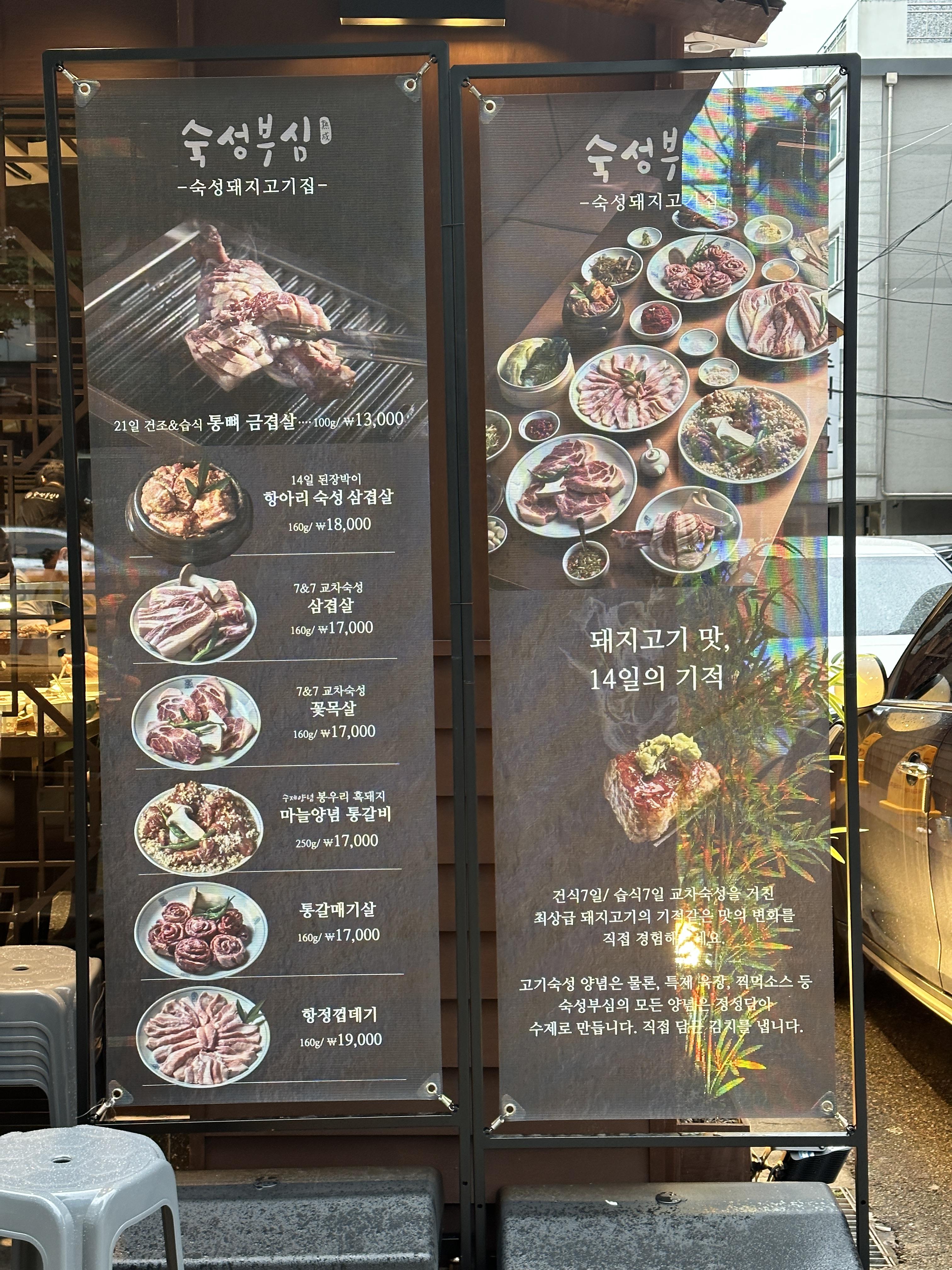 21일 숙성 통뼈 금겹살, 14일 숙성 삼겹살이 한정메뉴인데, 그날 준비한 수량이 다 떨어지면 먹어볼 수 없습니다. ㅋㅋㅋㅋ 하지만, 다시 도전했죠. 반드시 먹어야겠다는 일념하에 재방문!!!!