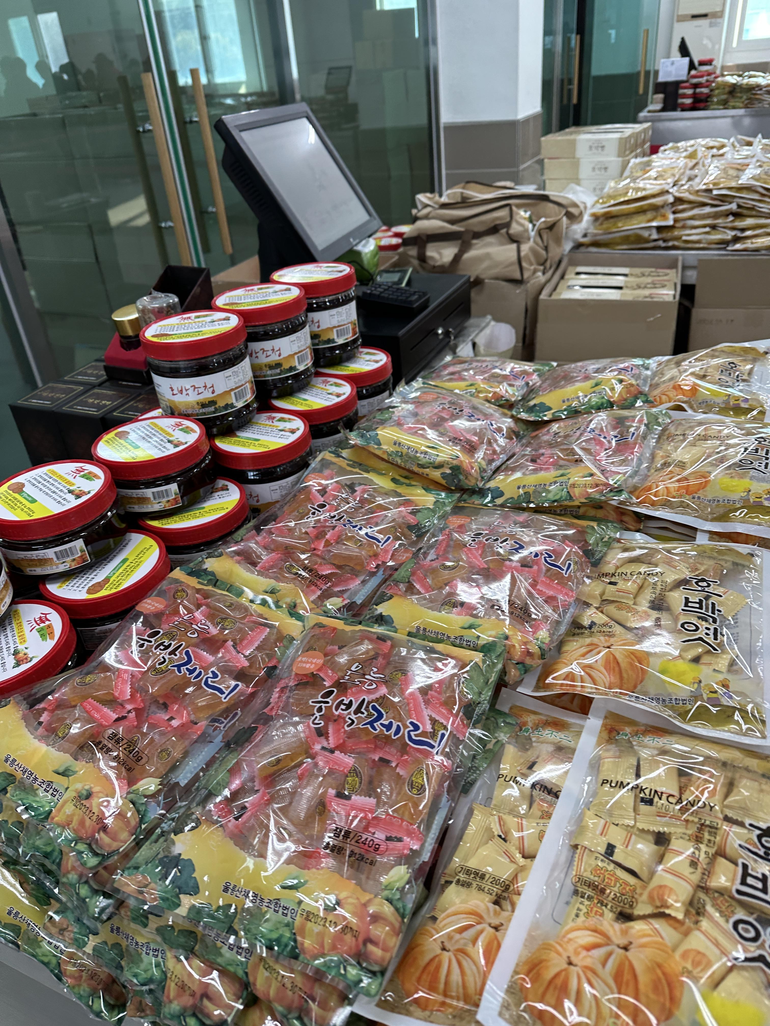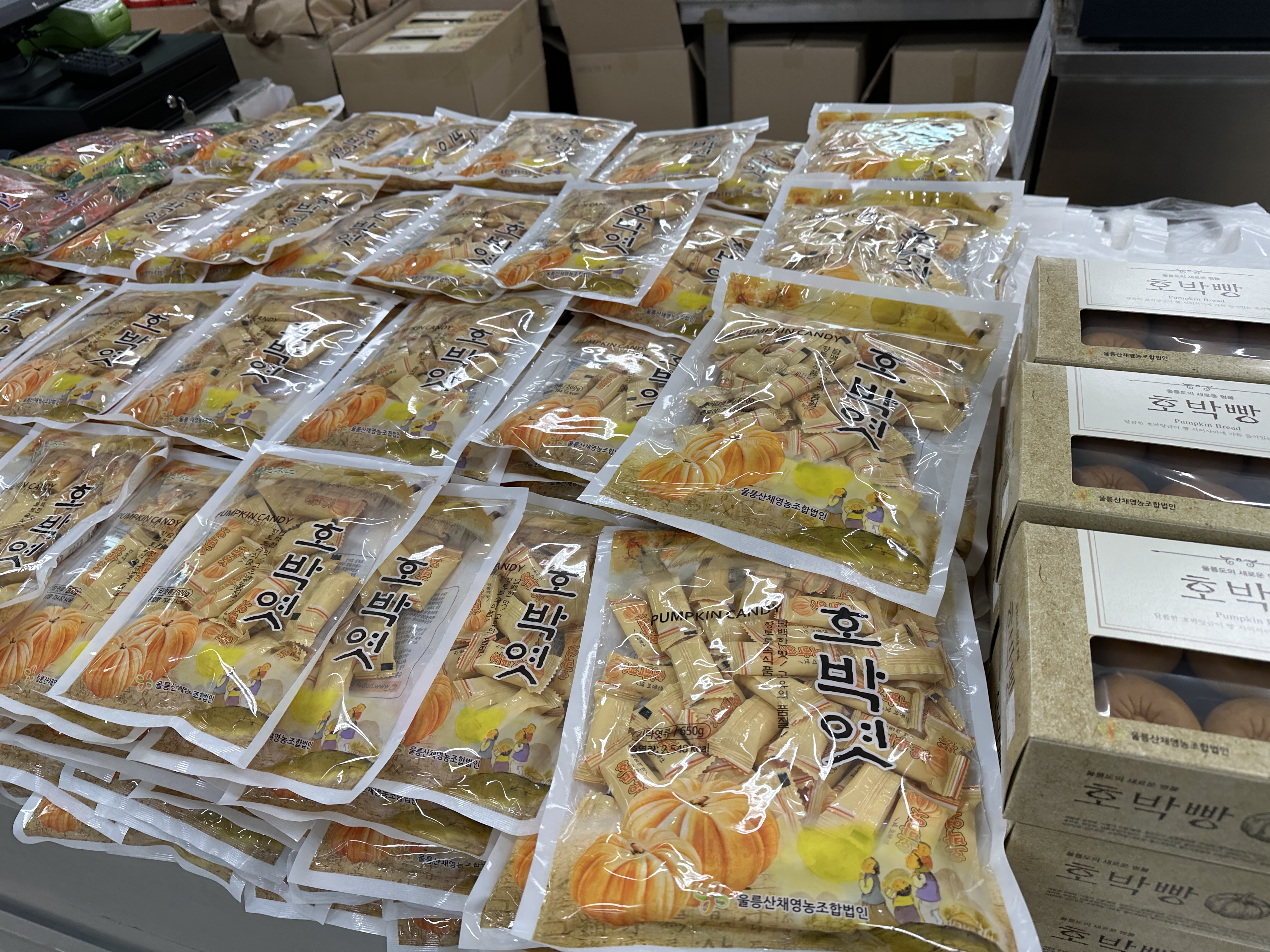 제품은 다양한 편입니다. 호박엿, 호박젤리, 호박빵, 호박조청 있었던 것 같습니다.