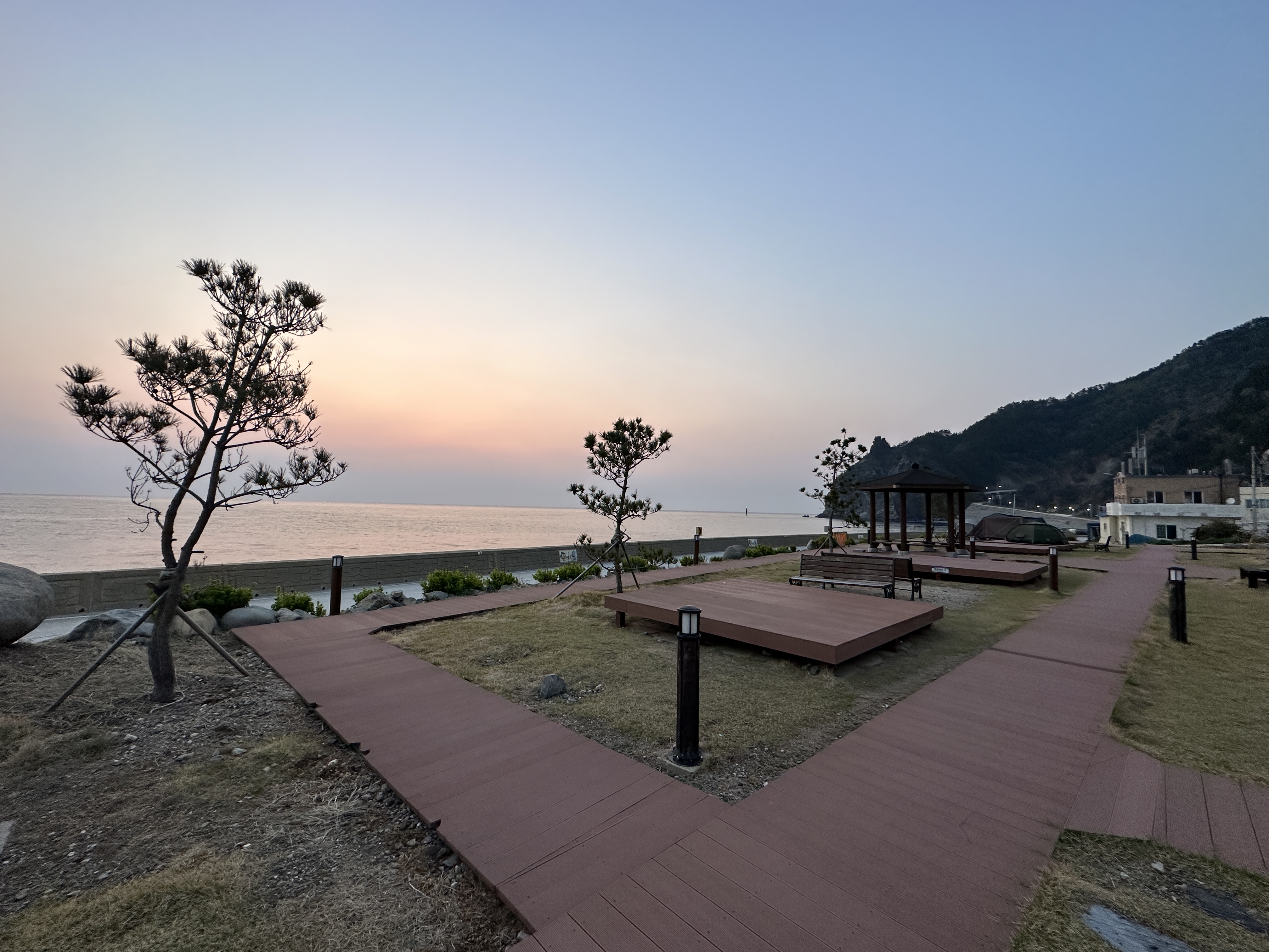 이 날에는 많은 사람들이 없었는데, 학포야영장과는 또 다른 매력이 있었습니다. 바다가 앞에 뻥 뚫려있다보니 그 뷰는 상당히 멋지게 느껴질 듯 했습니다. 대신 자동차 도로와 붙어있어 소음은 감안해야 할 것 같아요