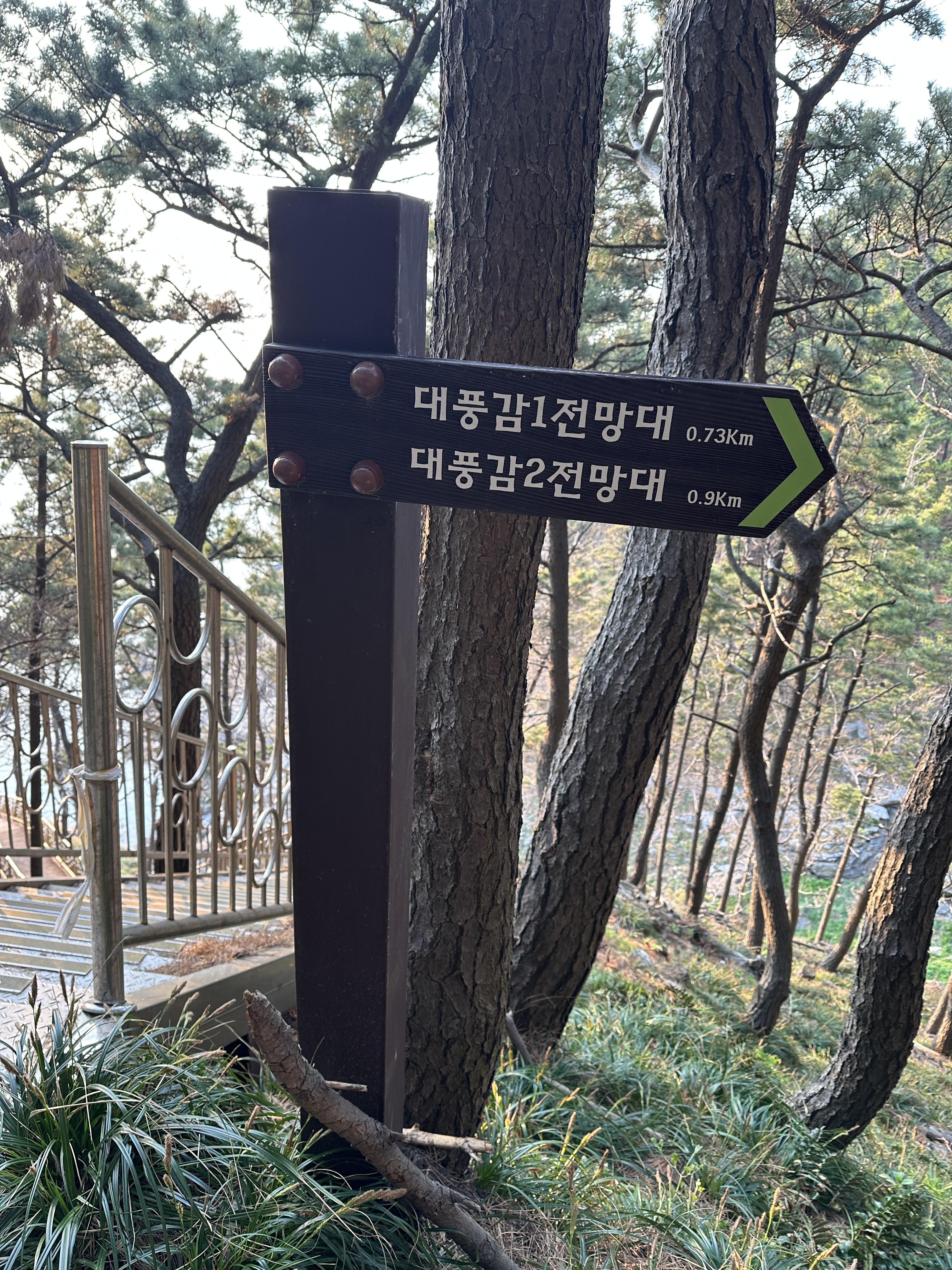 대풍감 제 1 전망대로 향하는 표지판이 매우 구수한 글씨체로 써있습니다.