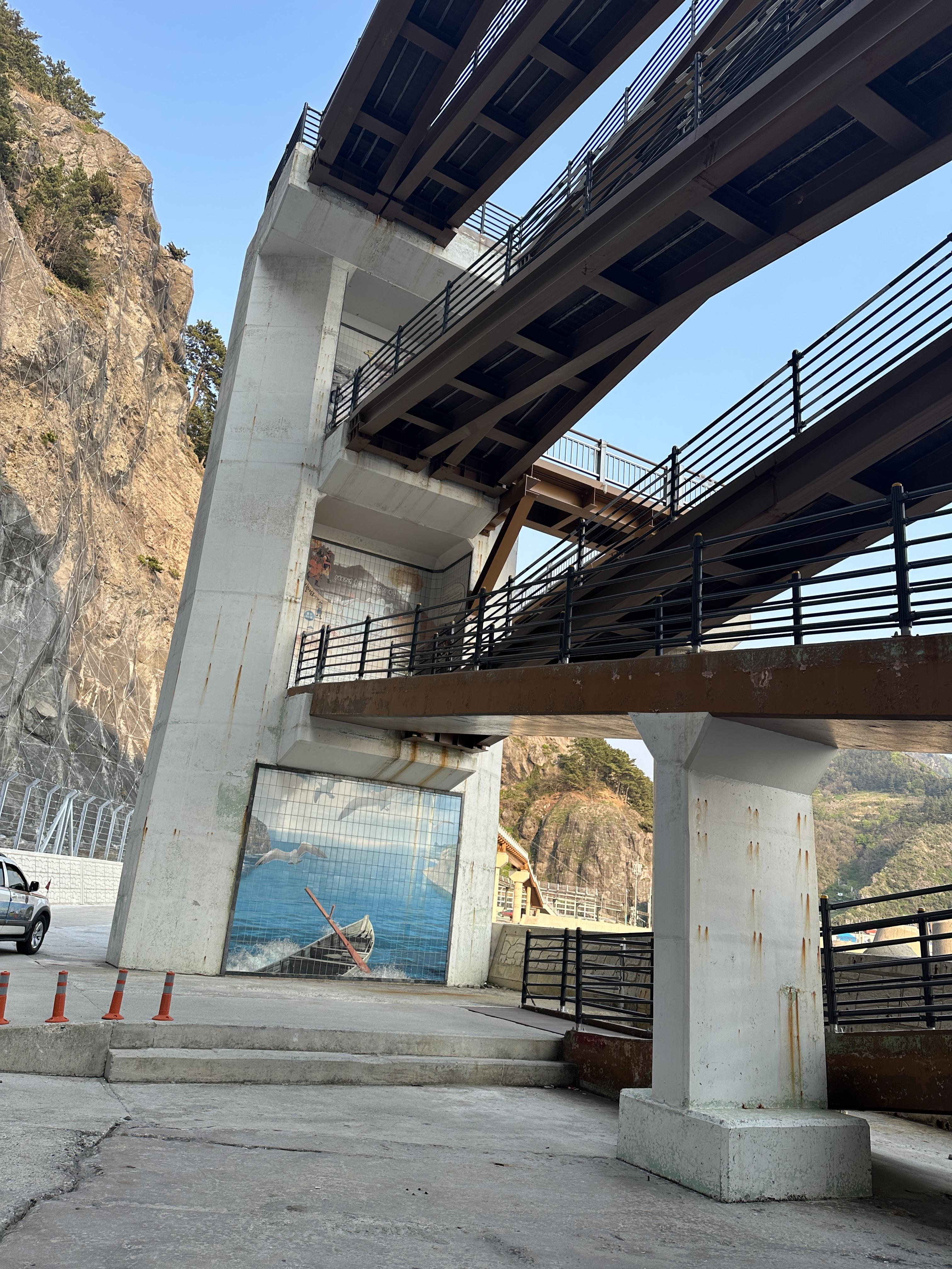 위에서 내려다보니, 아래에 또다른 계단이 있더라구요, 이 계단은 나중에 보니, 낚시하시는 분들이 이용하시는 길 같았어요. 길 끝에 낚시하시는 분들이 계셨거든요 ㅎㅎ