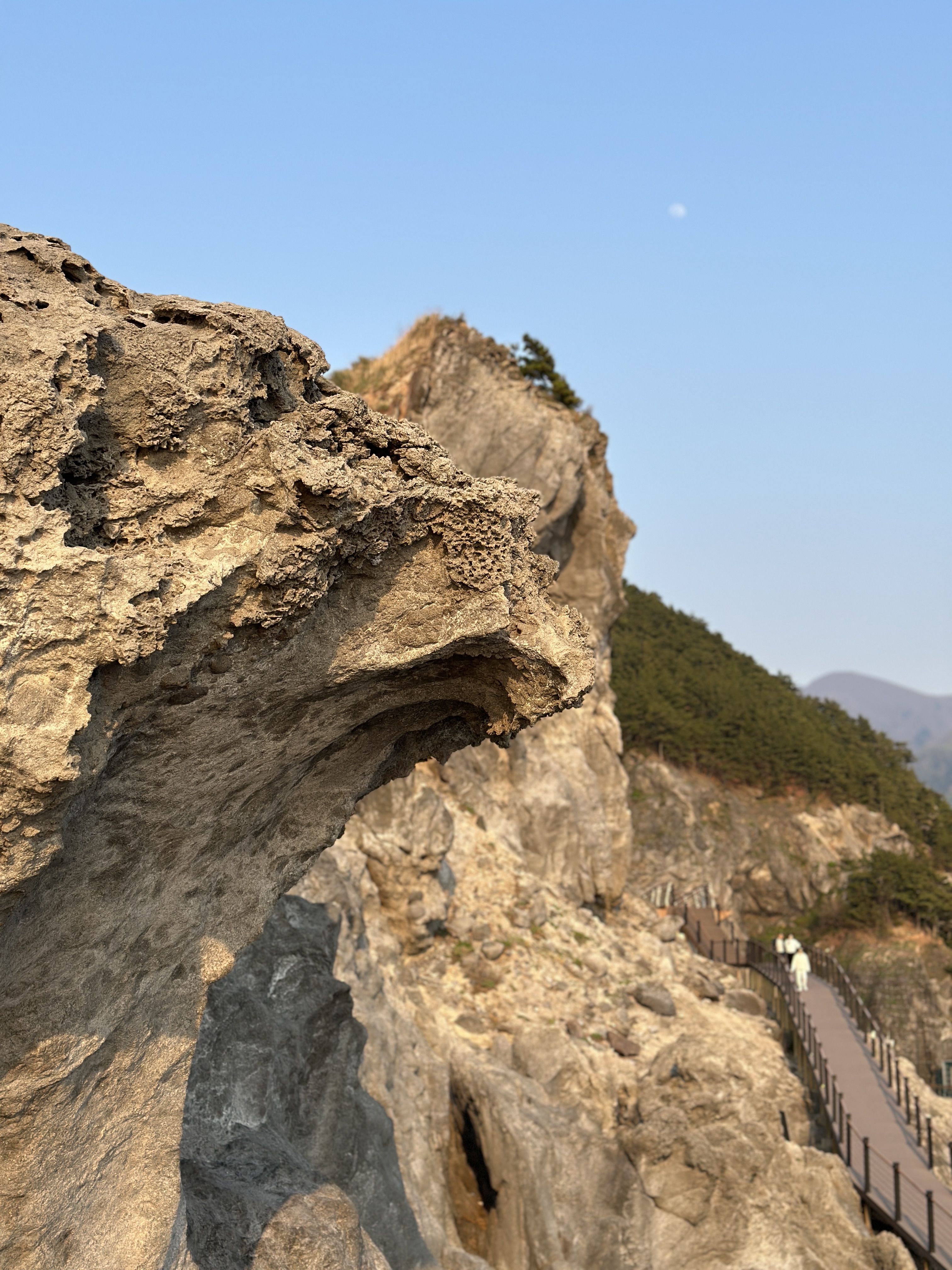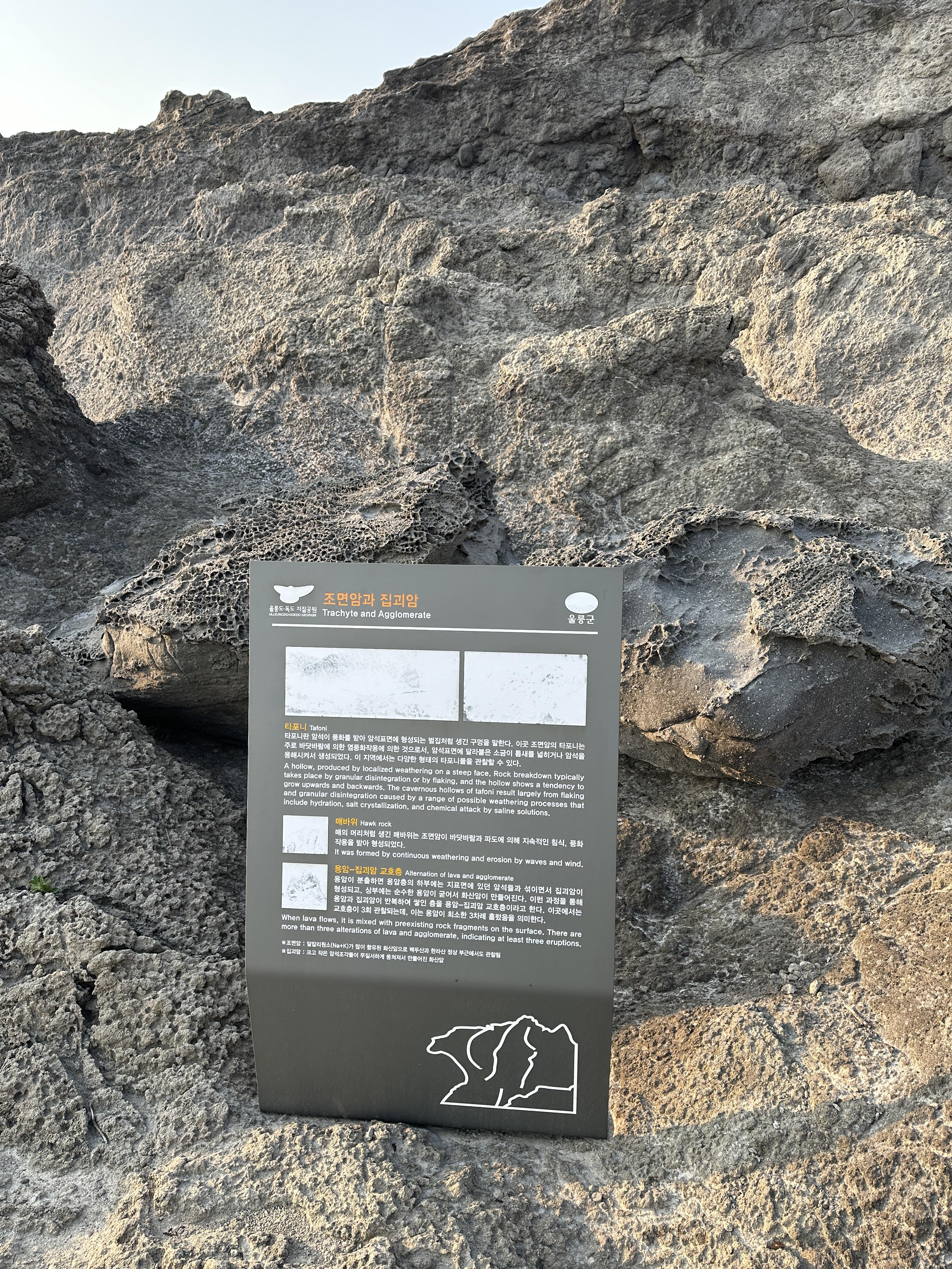 계단을 오르면 해안 데크길까지 이런 기암괴석들이 바로 옆에 펼쳐집니다. 너무 멋지면서도 무서운 느낌도 조금 듭니다. ㅋㅋ안내판을 보니 조면암과 집괴암 이라고 하네요 ㅎㅎ