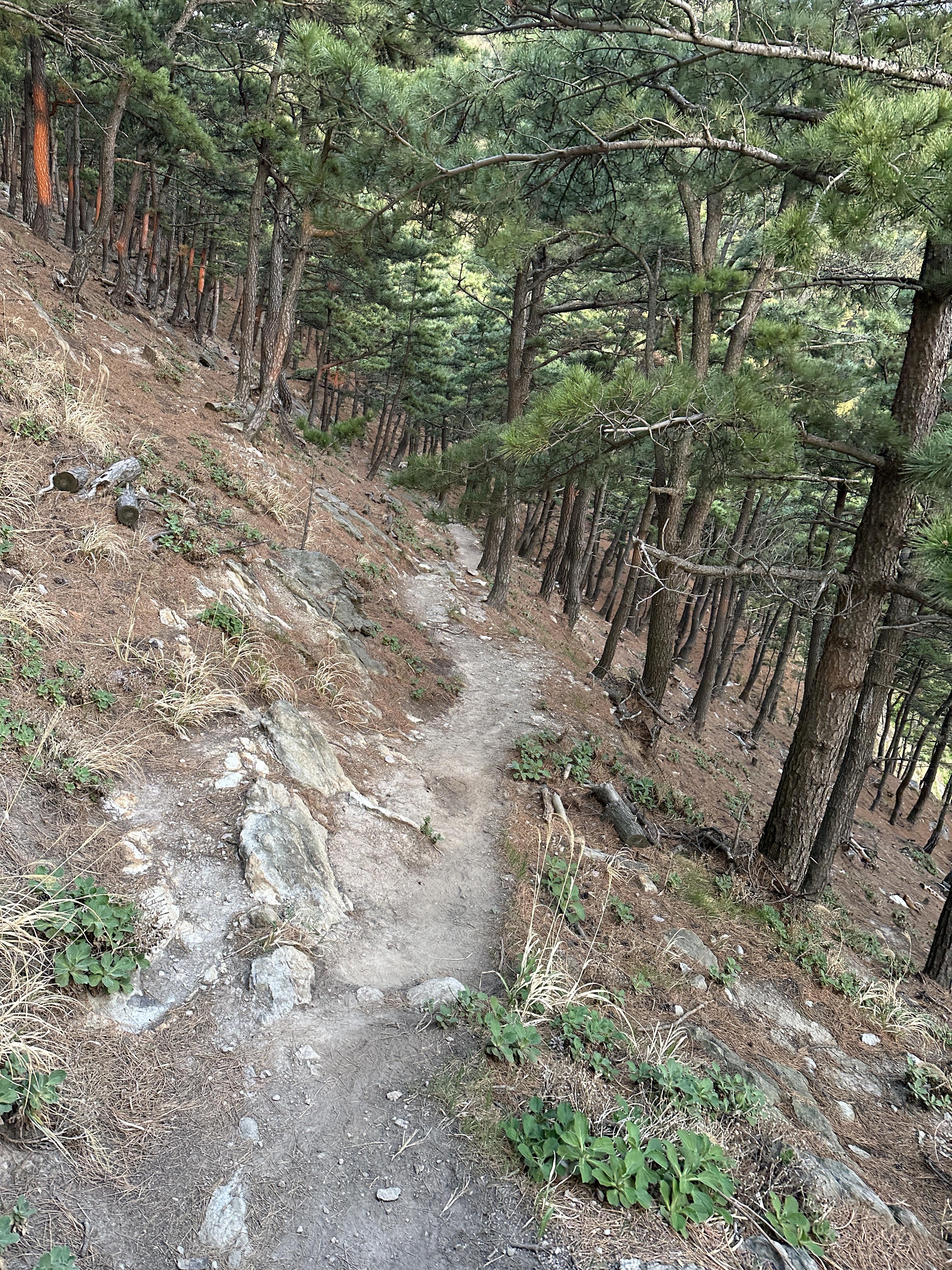 하지만, 불현듯 해 지고 난 다음에 내려가는 길이 걱정되더라구요. 아무래도 해 지고 나면 너무 금방 깜깜해지기도 하고, 올라오면서 봤던 길을 해 지고 가는 건 생각보다 위험할 것 같았습니다. (헤드랜턴은 안챙겨 나왔거든요 ... 여기 올 줄 몰랐으니 ㅋㅋㅋㅋ)