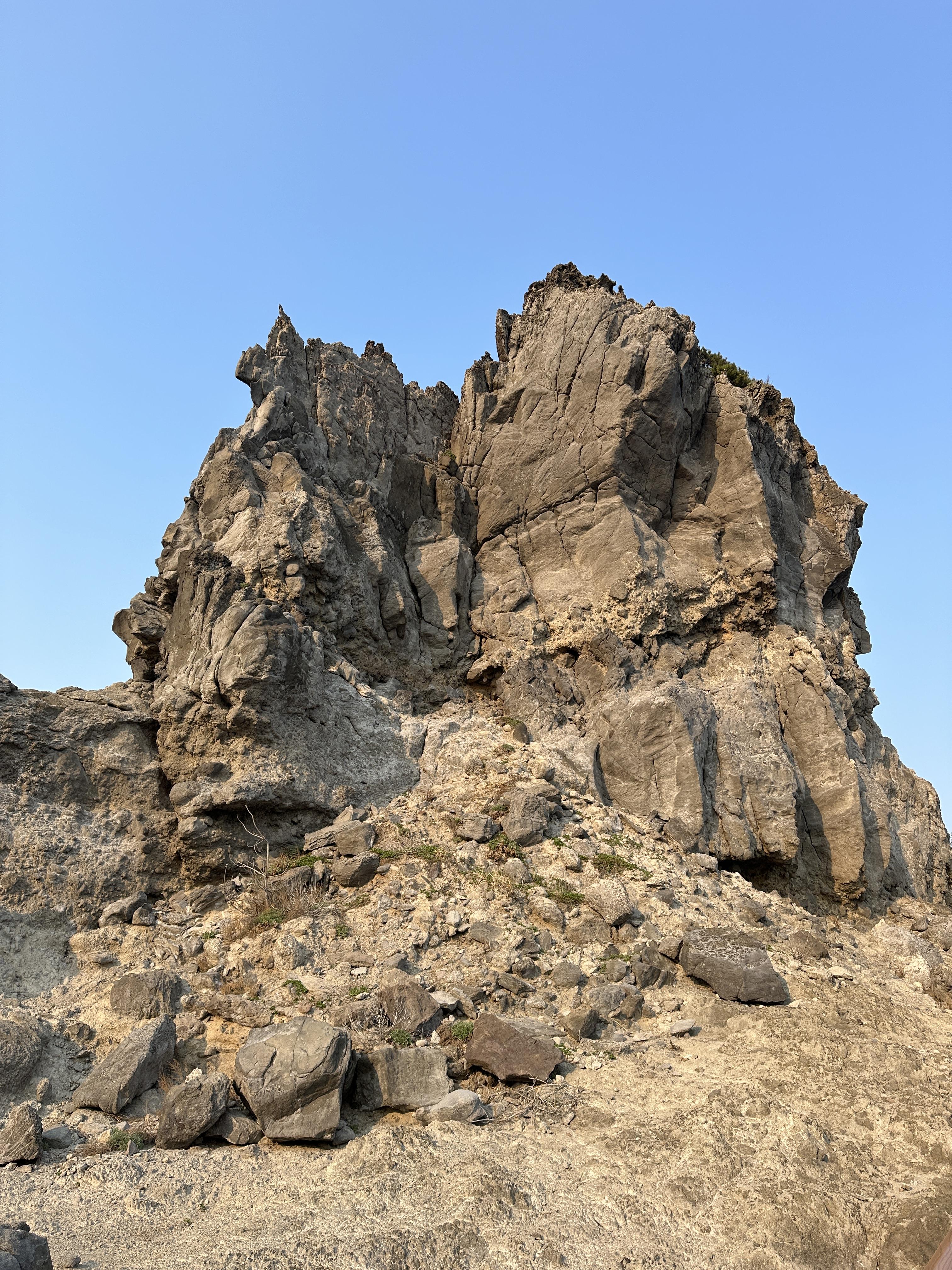 울릉도의 지형은 멀리서 봤을 때 정말 그 느낌이나 감정이 더 정확하게 전달되는 것 같습니다. 꼭 누가 깎아놓은 것 처럼 생긴 절벽부터 중간중간 우뚝솟은 산까지, 어느 곳 하나 웅장하지 않은 곳이 없네요.