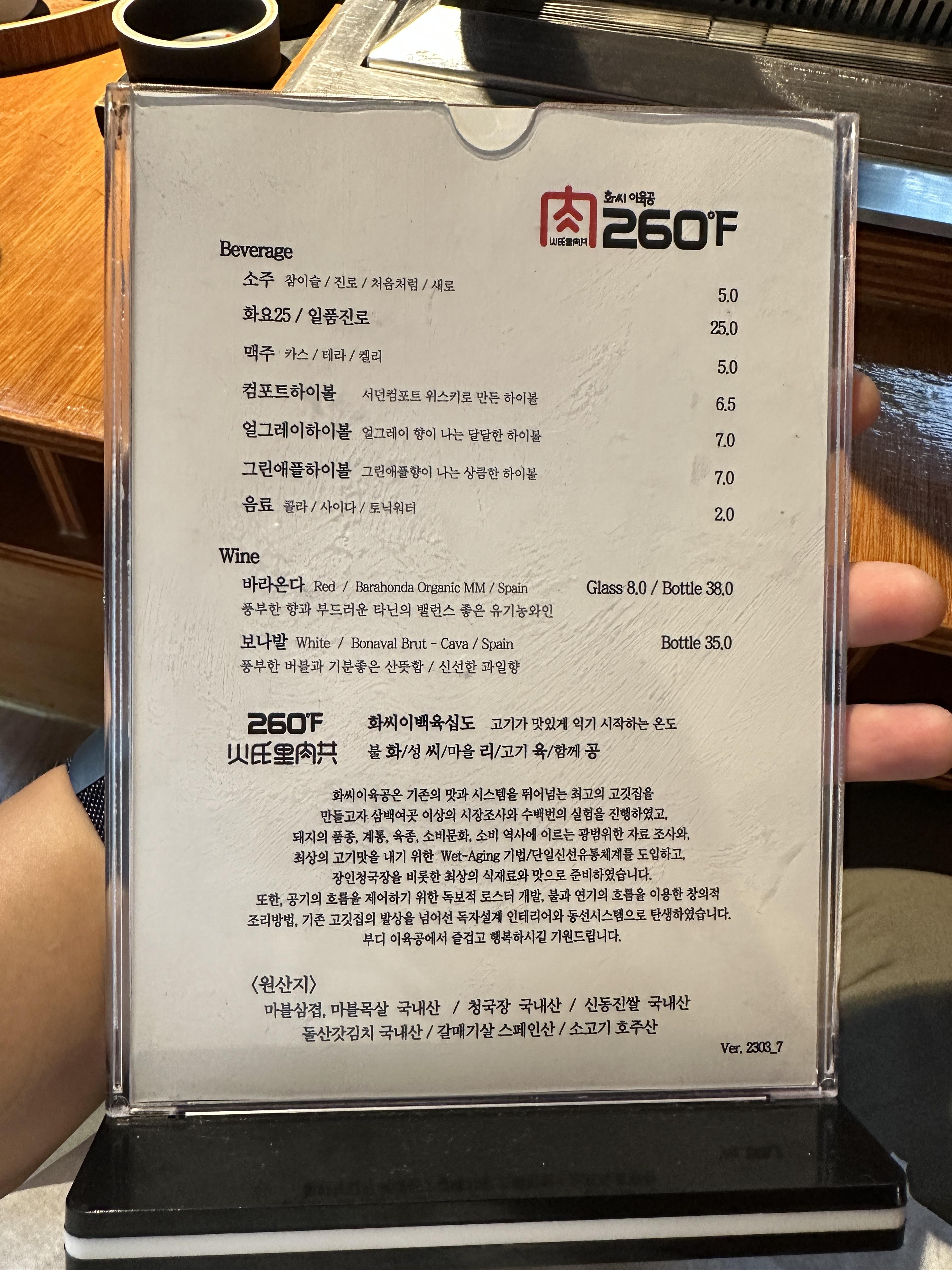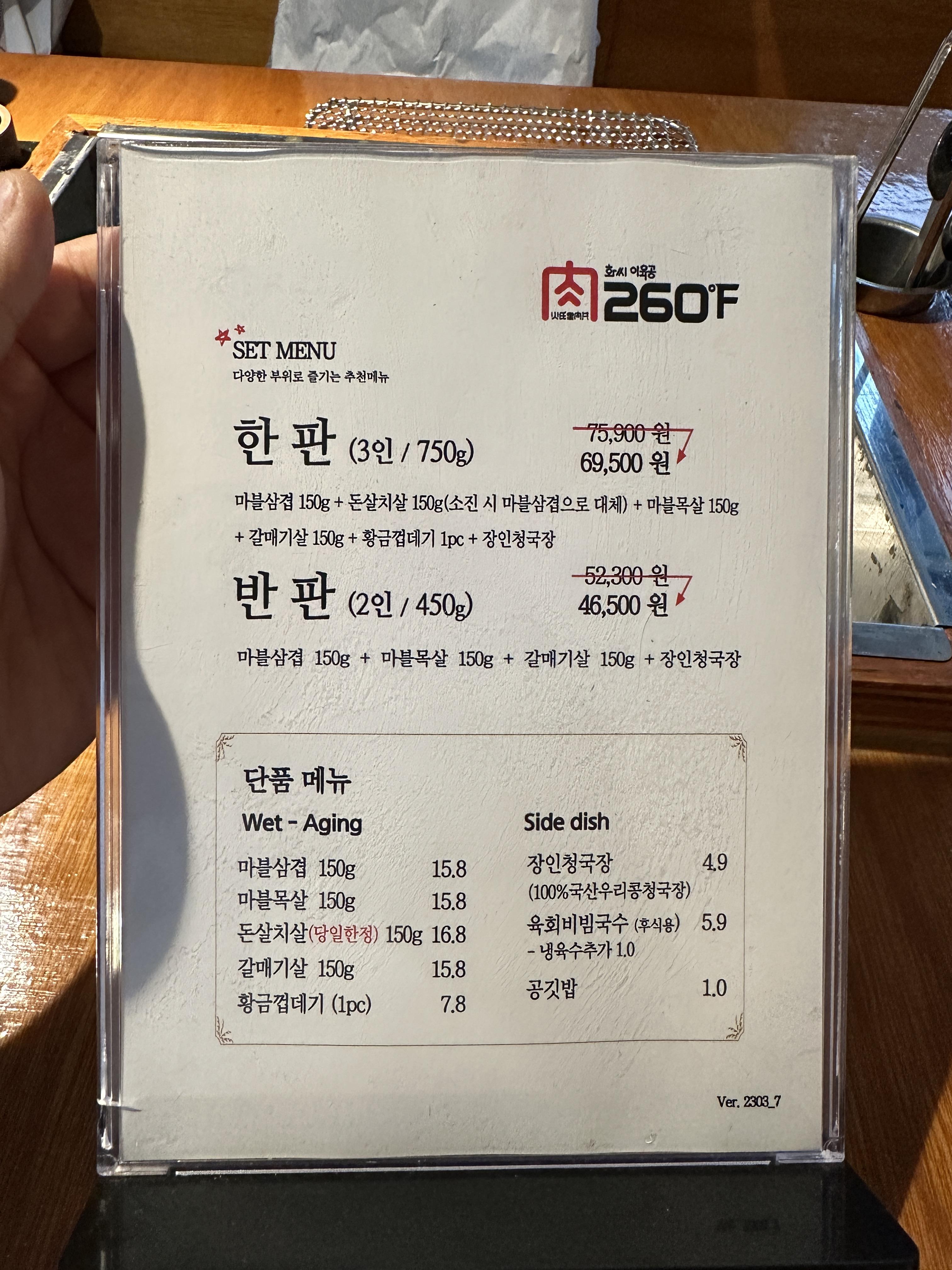 홍대입구역 경의선 숲길 옆 돼지고기 맛집 이육공 연남점 메뉴판은 간단한 편입니다. 고기는 wet-aging을 해서 판매하고 있었어요. 두명이서 왔기에 반판을 시켜야 하나 생각했지만, 언제나처럼 추가할 것이 뻔했기에 한판으로 과감하게 시작합니다. ㅋㅋㅋㅋ