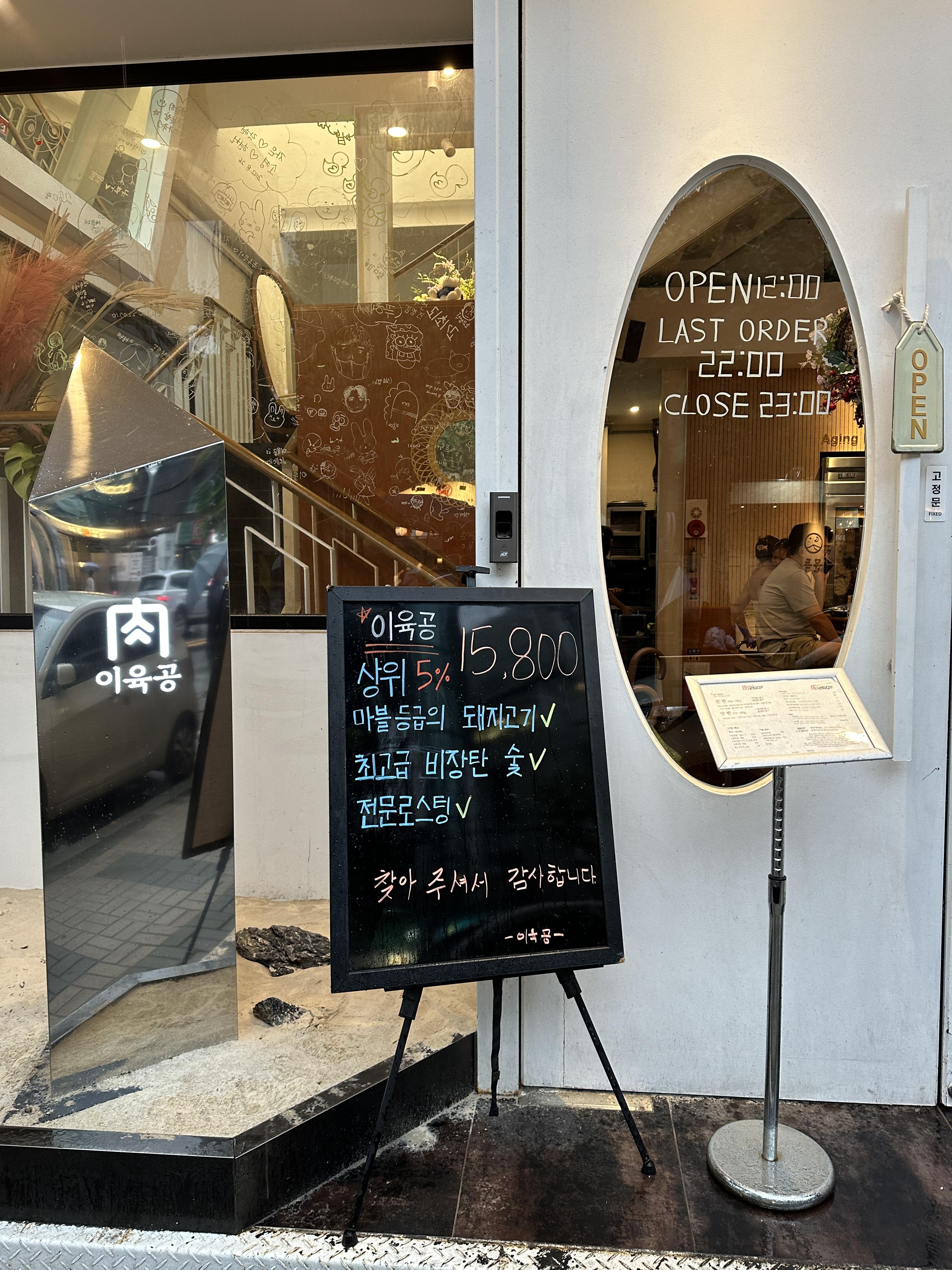 2. 홍대입구역 경의선 숲길 옆 돼지고기 맛집 이육공 연남점 외관 및 입구