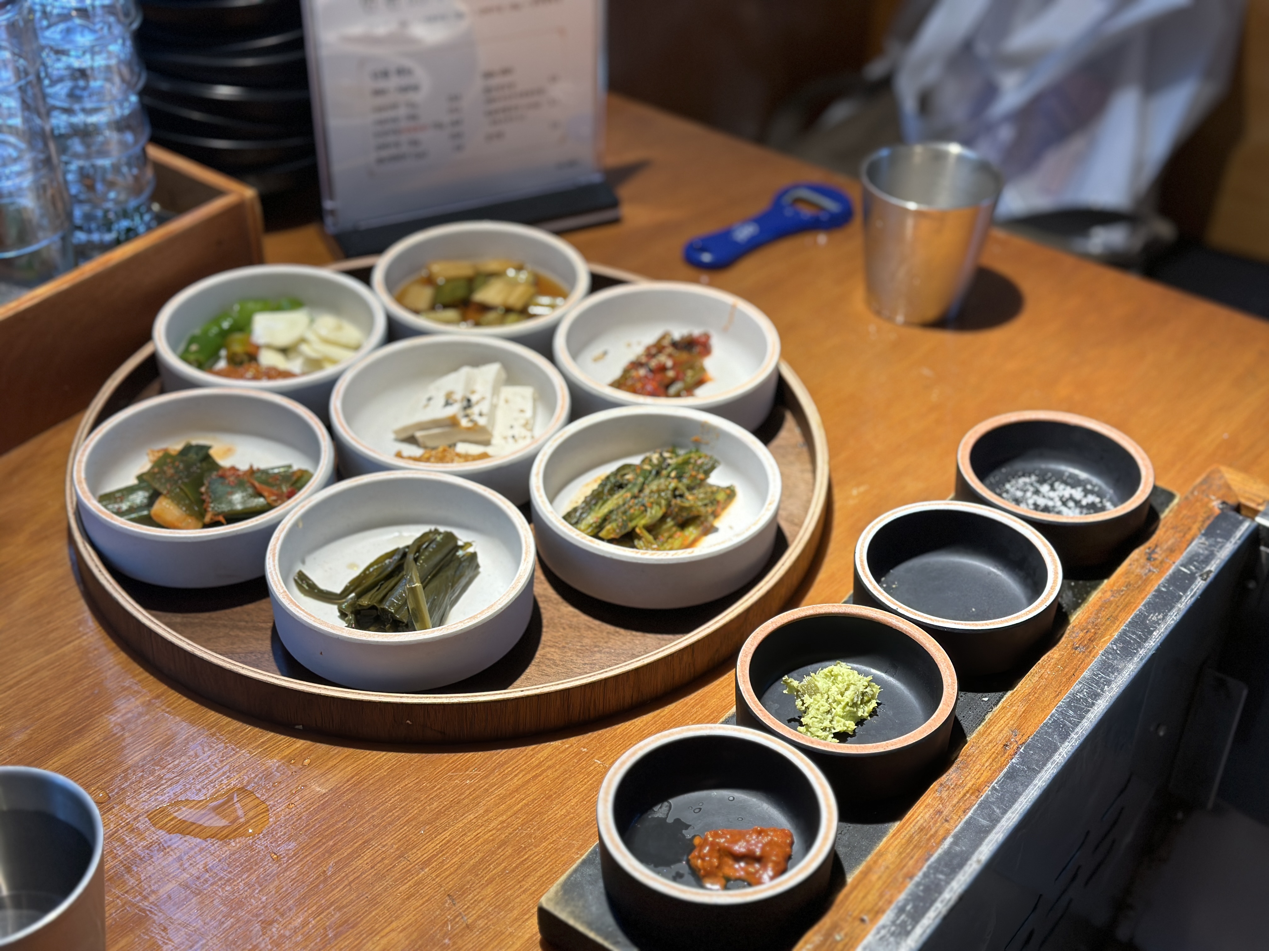 주문을 완료하고 나니 밑반찬 및 테이블 세팅이 시작됩니다. 깔끔하게 준비되는 반찬들이 이미 메인 메뉴에 대한 그것들도 충분히 맛있을 것이라는 느낌을 마구마구 주고 있습니다.