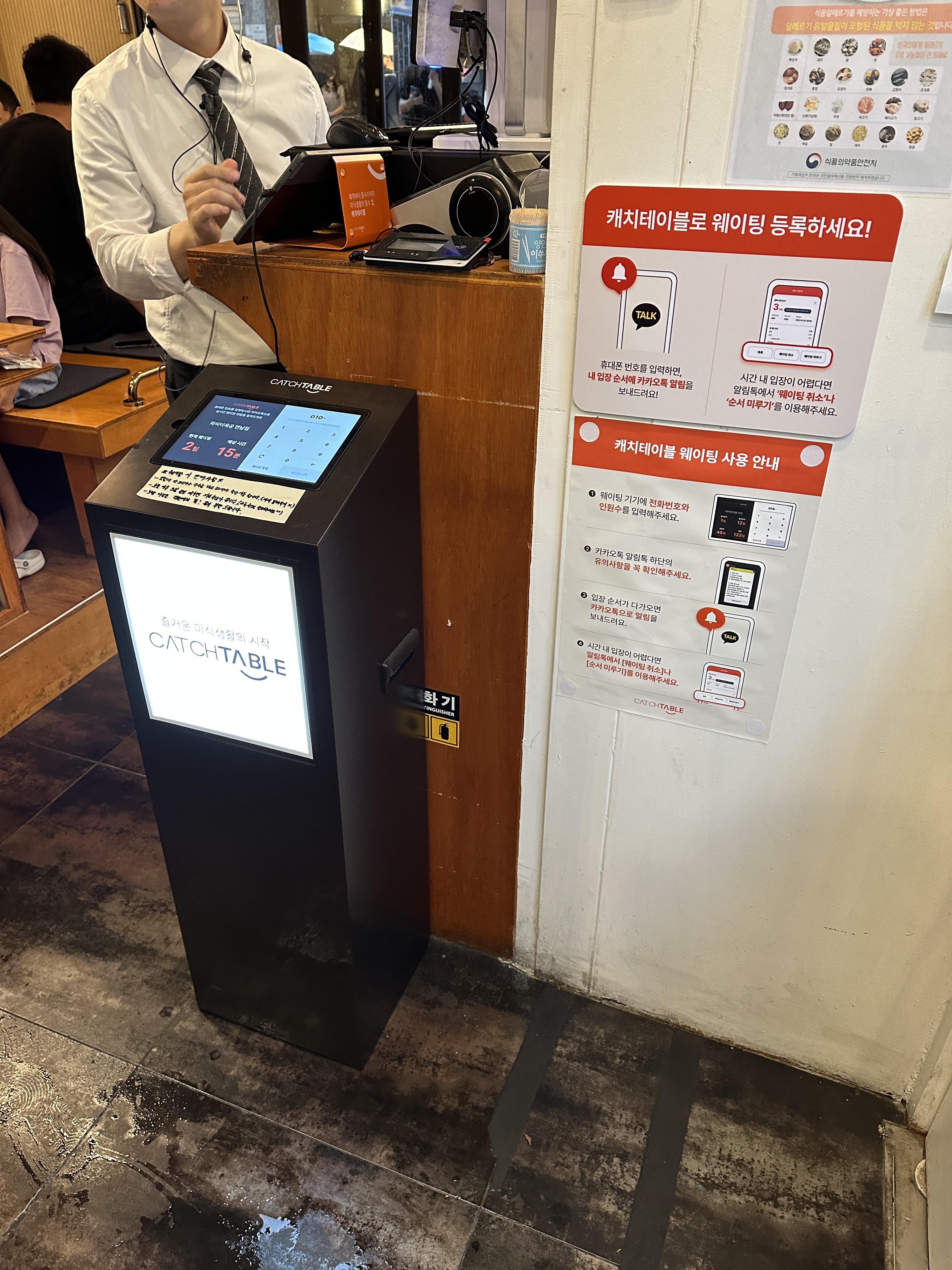익숙한 대기기계가 보입니다. ㅋㅋㅋ 요새 뭐 어느정도 번화가에서는 저 기계를 안 보기가 어렵죠? ㅋㅋㅋ 하지만 대기는 하지 않았습니다. 식사 때가 시작되어서였을까요?ㅋㅋㅋ 그래도 이미 1층은 가득 차 있었고, 많은 손님들 께서 식사를 즐기고 있었습니다. ^^