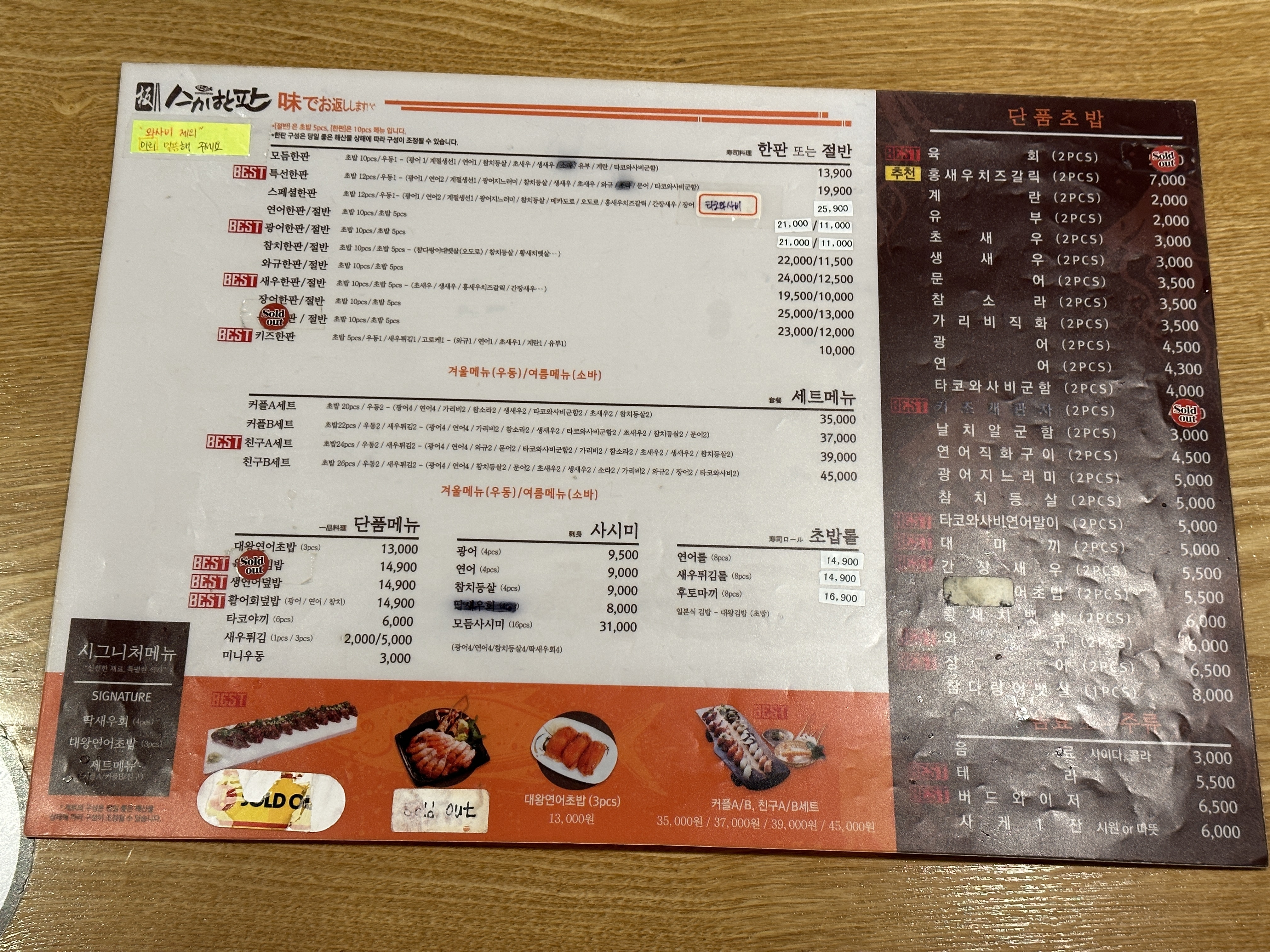 3. 초밥 맛집 삼성역/봉은사역 스시한판 코엑스점 메뉴 및 테이블 세팅