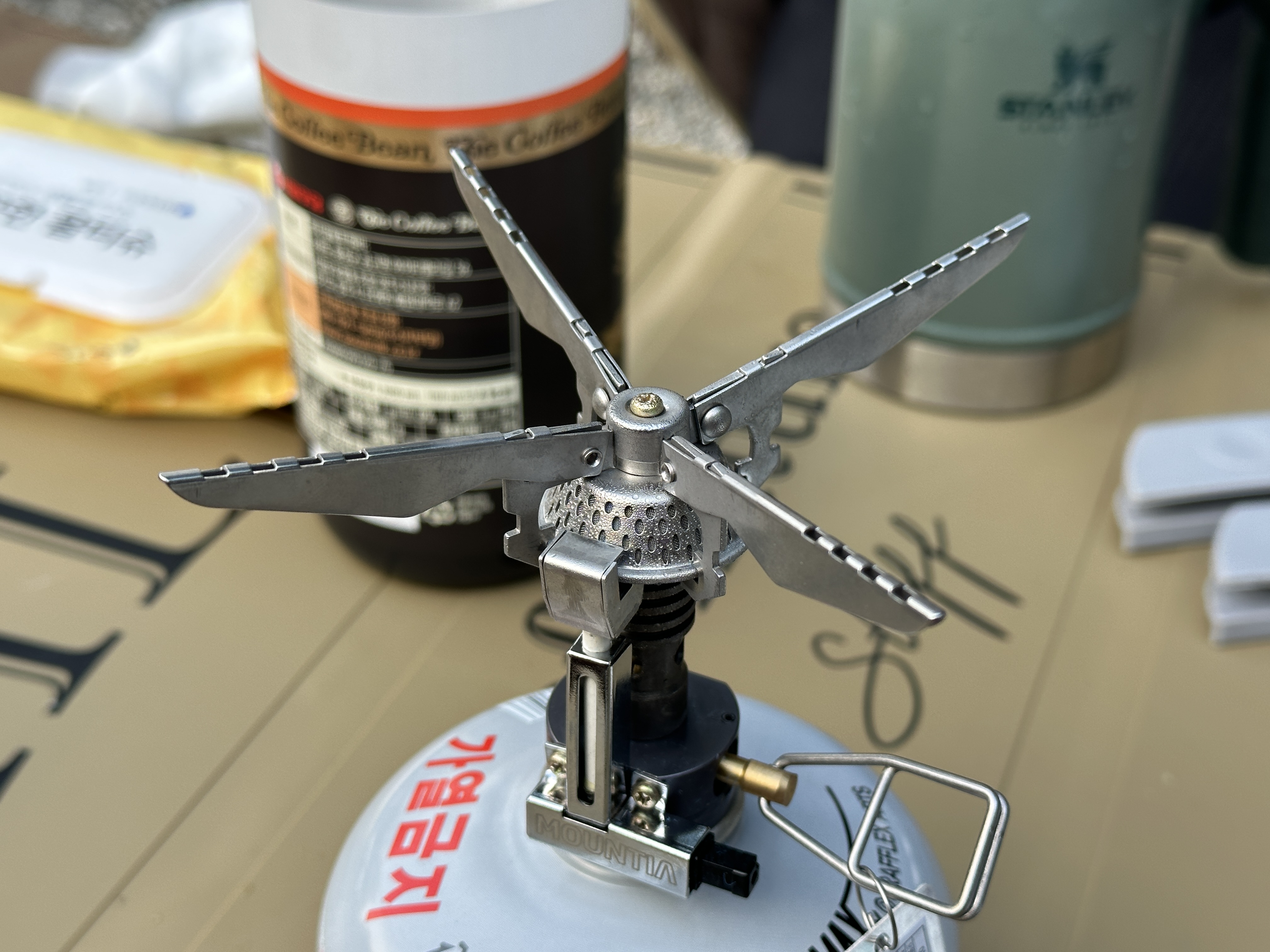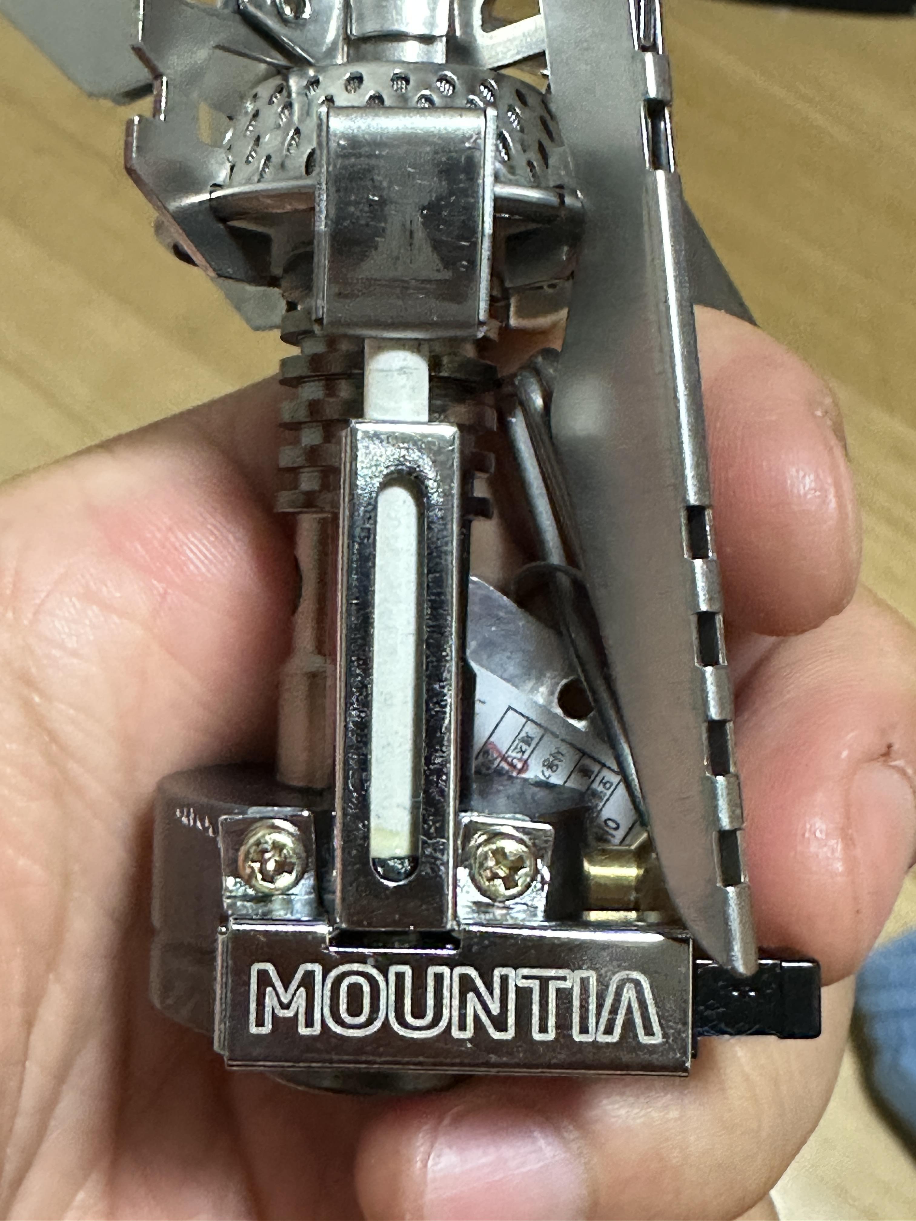 무엇보다 큰 장점은 저 마운티아 로고가 있는 원터치 버너 부분입니다. 저 부분을 딸깍 하고 눌러주기만 하면 바로 점화가 되거든요. ^^