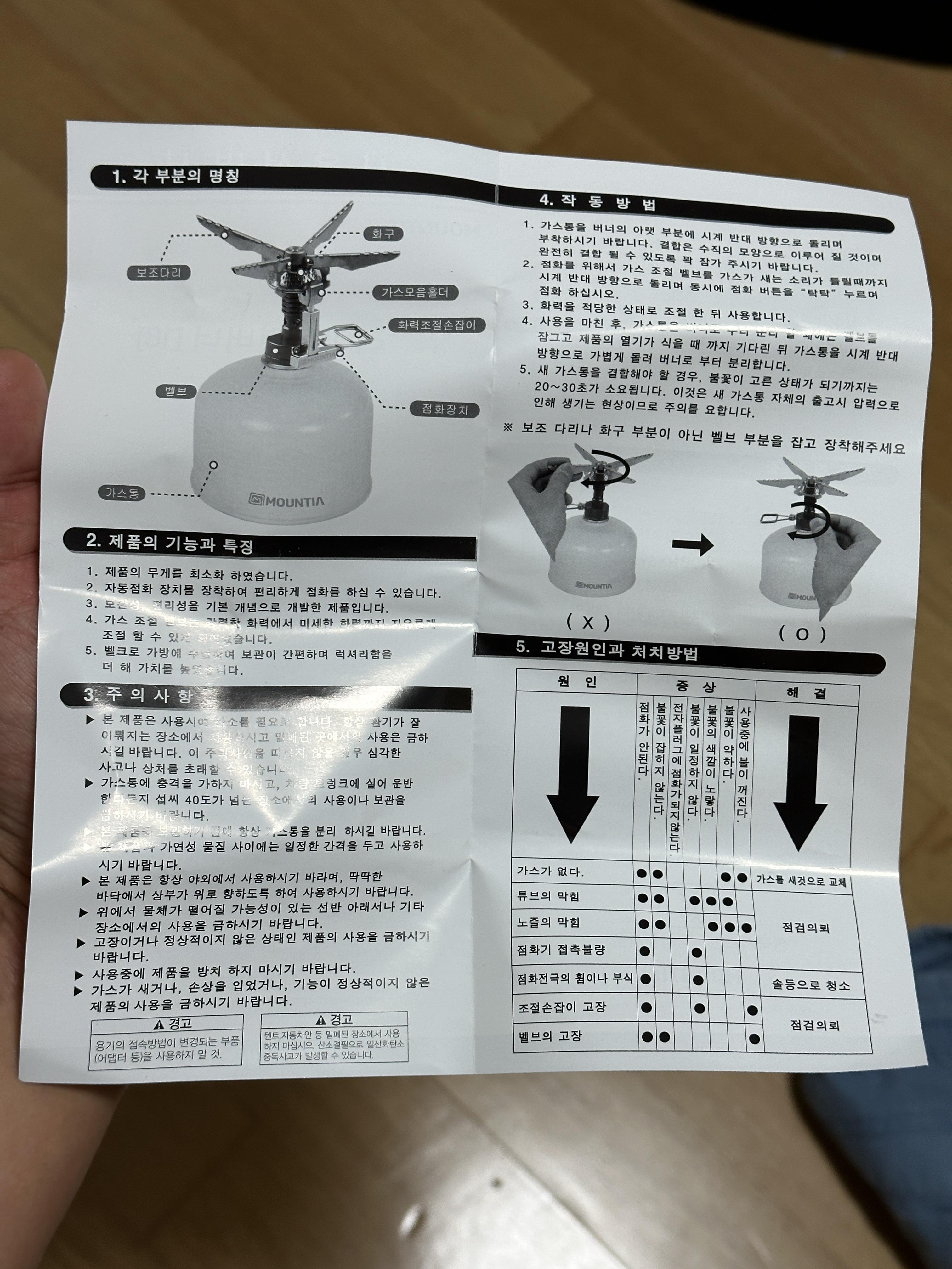 - 설명서에도 있듯, 결합 시에 버너 용기 받침부분 말고 결합부를 잡고 돌려주세요. 제품의 파손을 막아야죠.