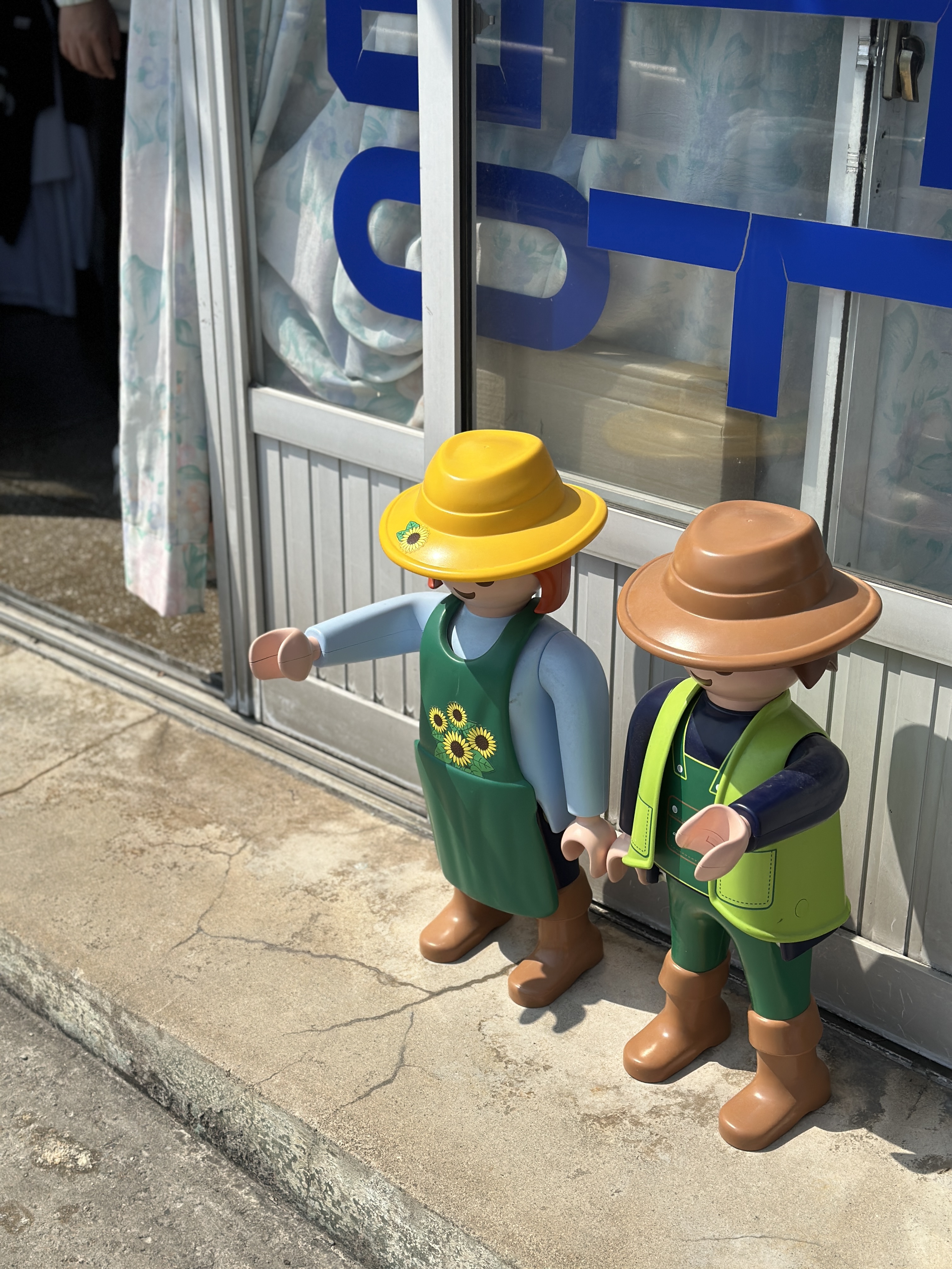 출입문의 시트지나 간판 등의 푸른 색과 하얀 문들이 잘 어우러져 있습니다. 문 앞의 플레이모빌 캐릭터도 참 귀엽습니다.