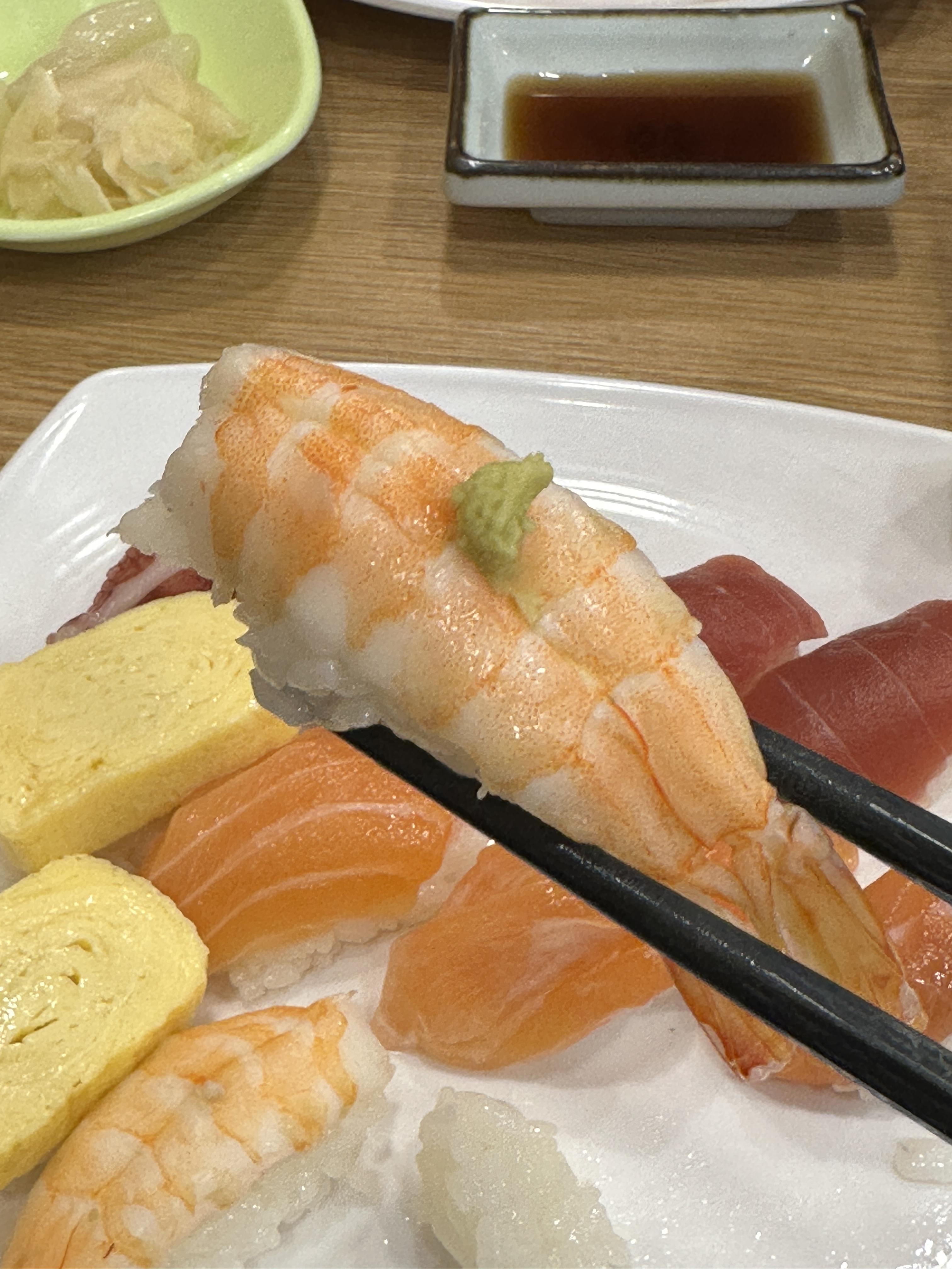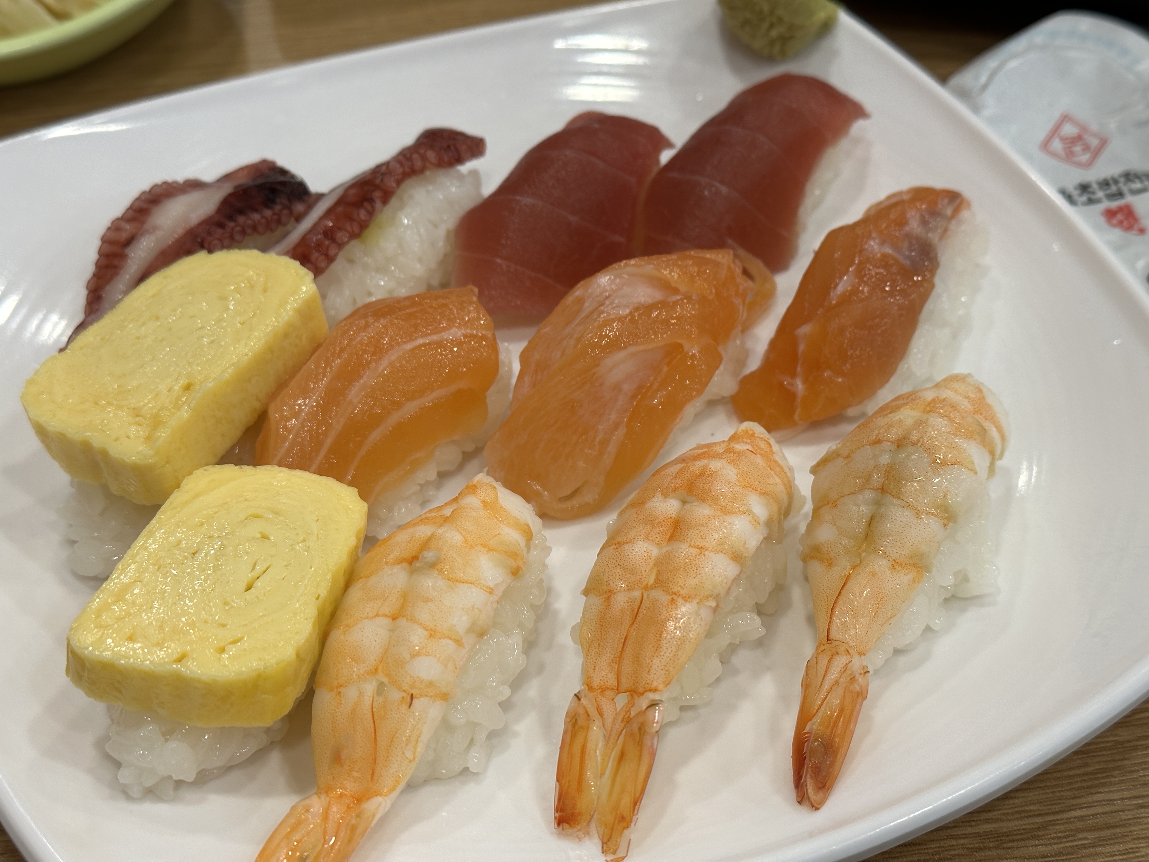 특미초밥 구성 : 계란 2pc, 찐새우3pc, 연어 2pc, 문어2pc, 아까미 2pc