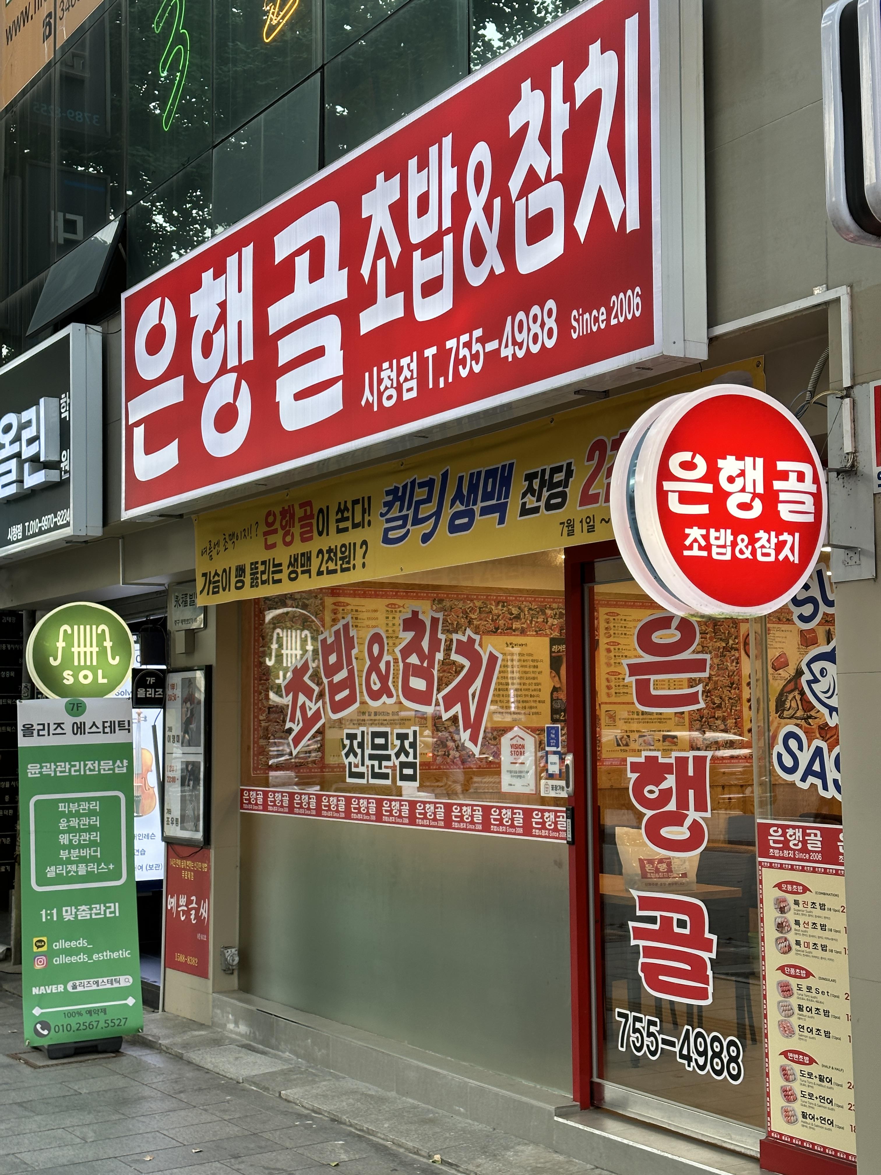 시청역에는 큰 상권이 있죠? 바로 북창동 식당가입니다. 그 골목을 끼고 양쪽 블럭은 이런저런 식당들이 매우 많은데요, 오늘은 메인 거리에 위치하지는 않지만, 초밥 좋아하시는 분이라면 아시는 그 브랜드죠? "은행골" 입니다.