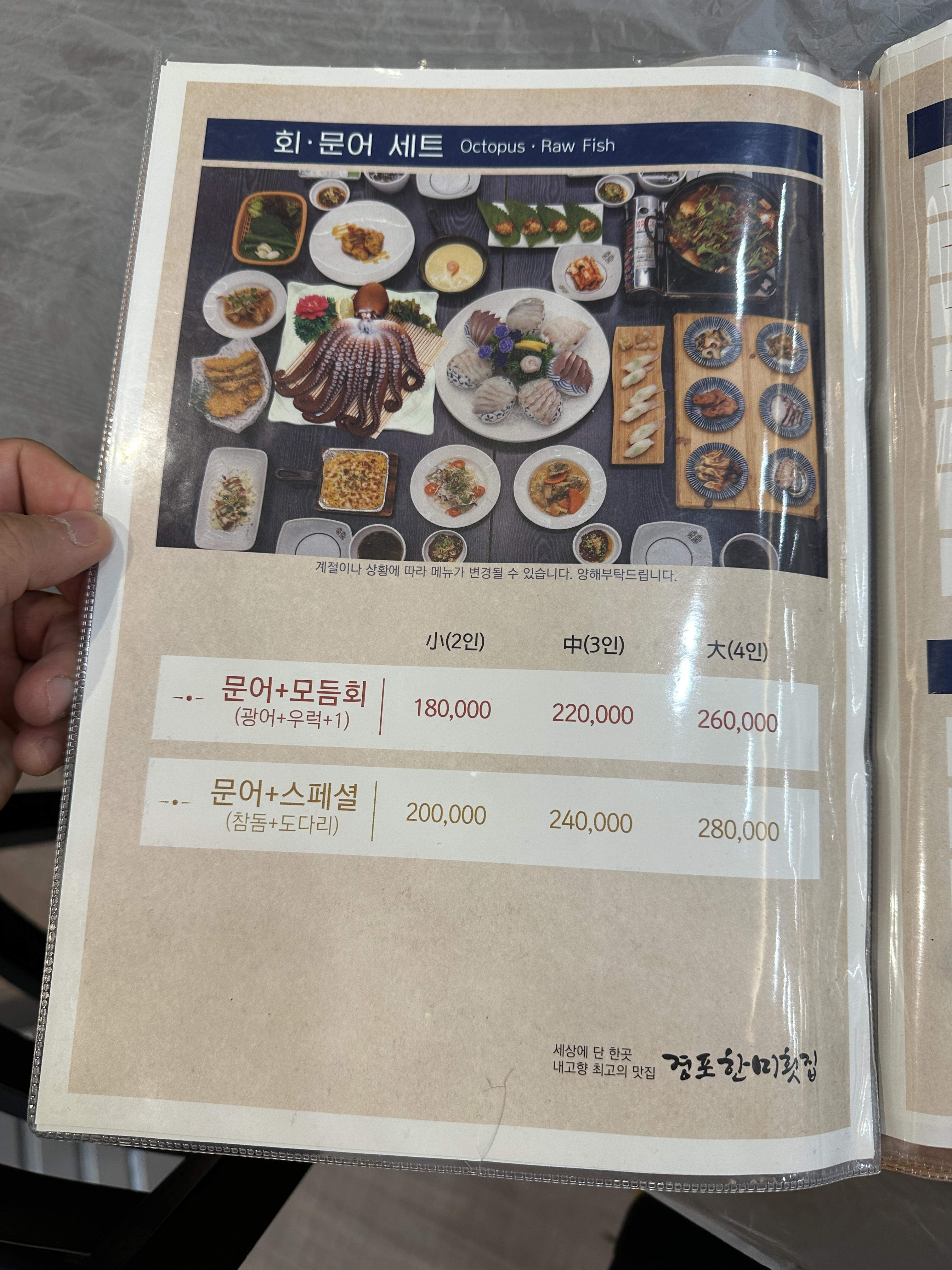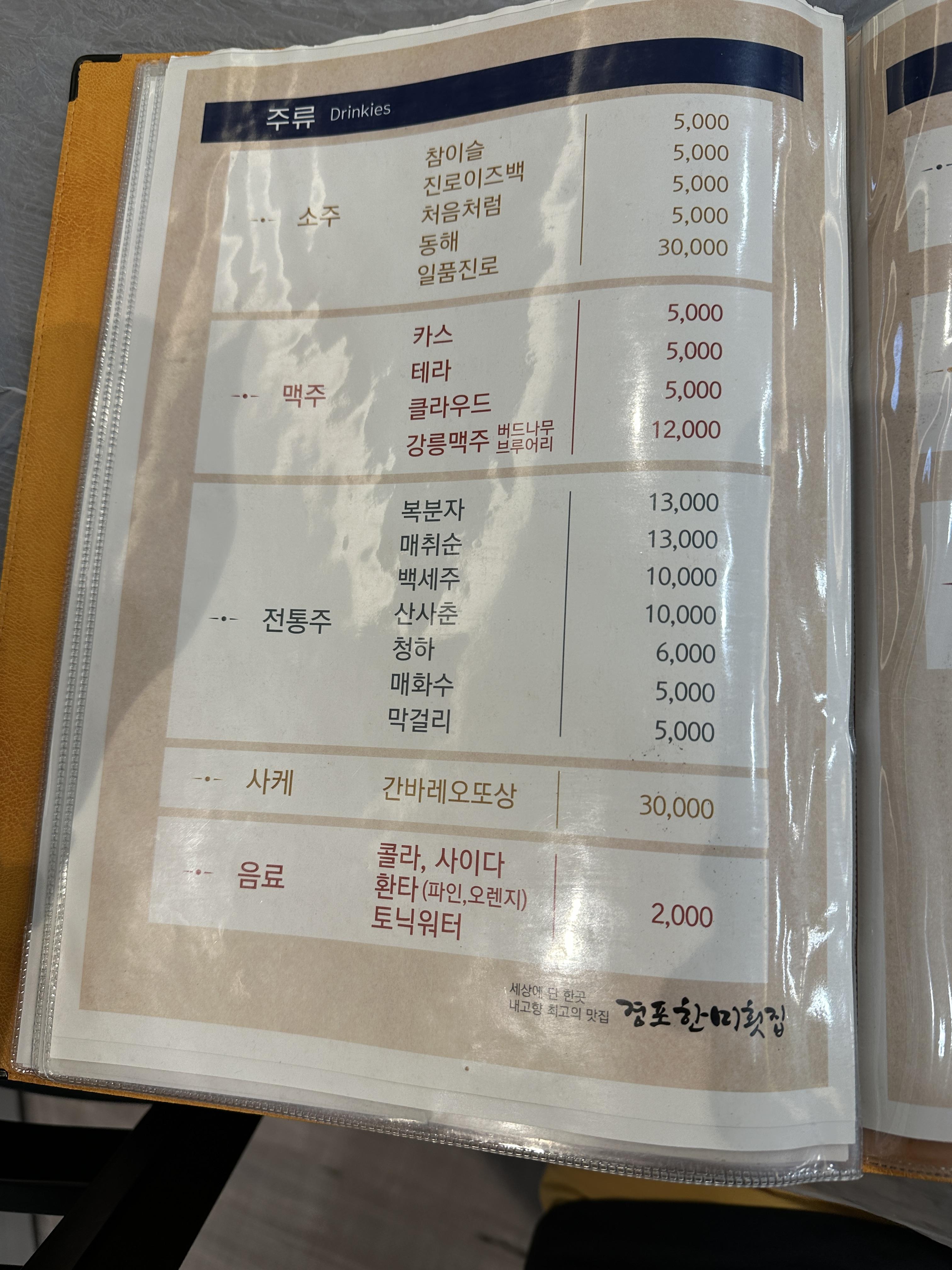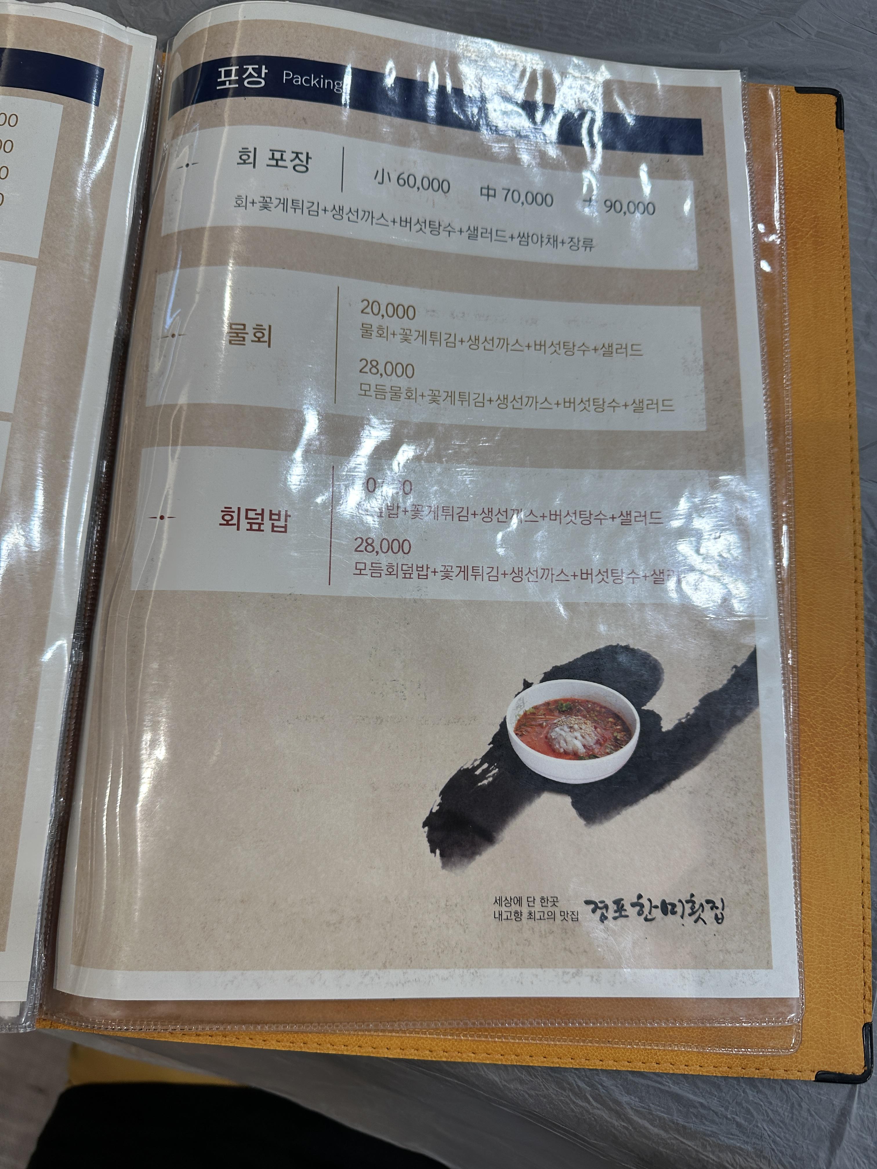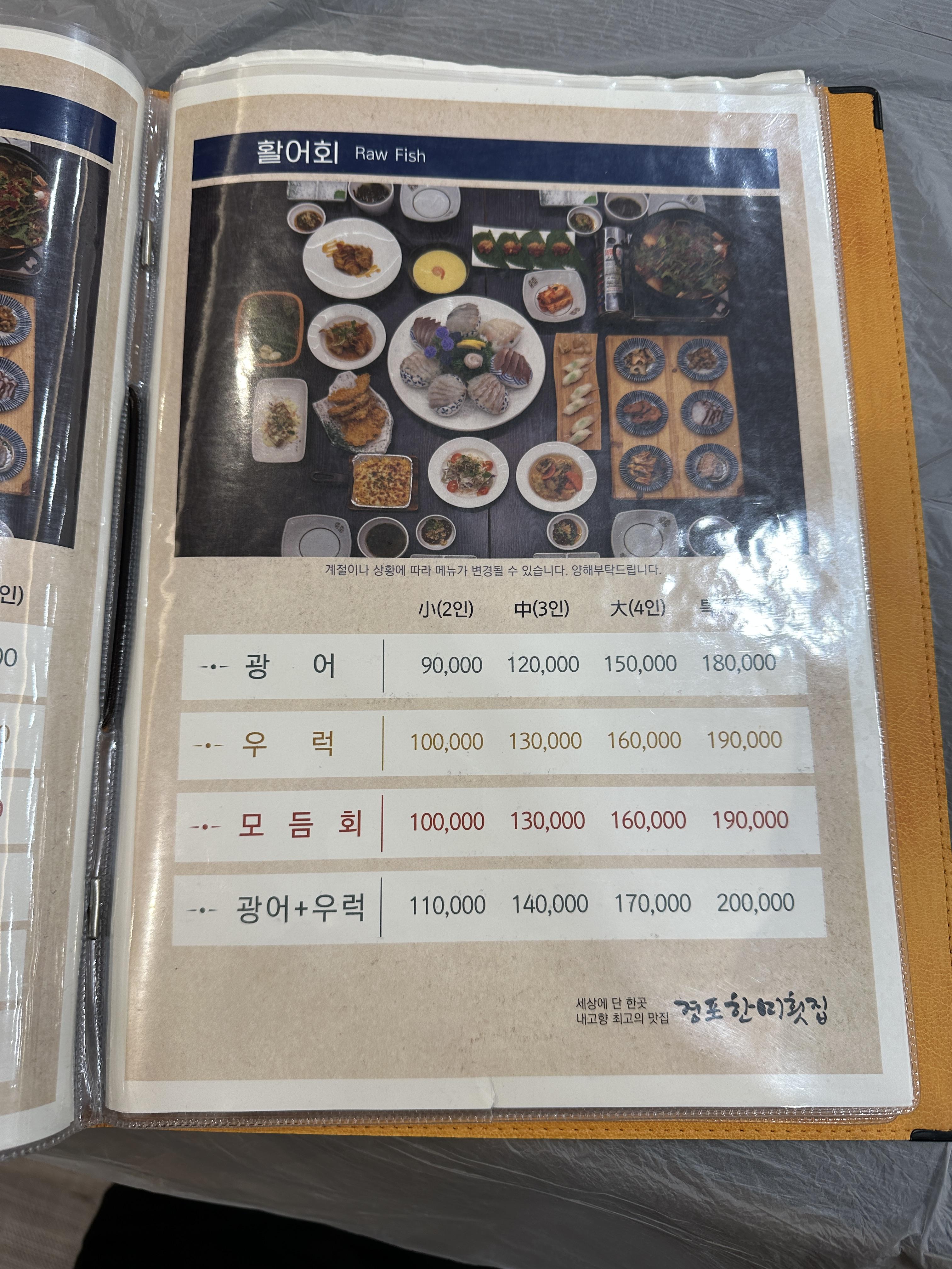 3. 경포해변 회, 대게 전문점 경포한미횟집 메뉴판 및 기본세팅