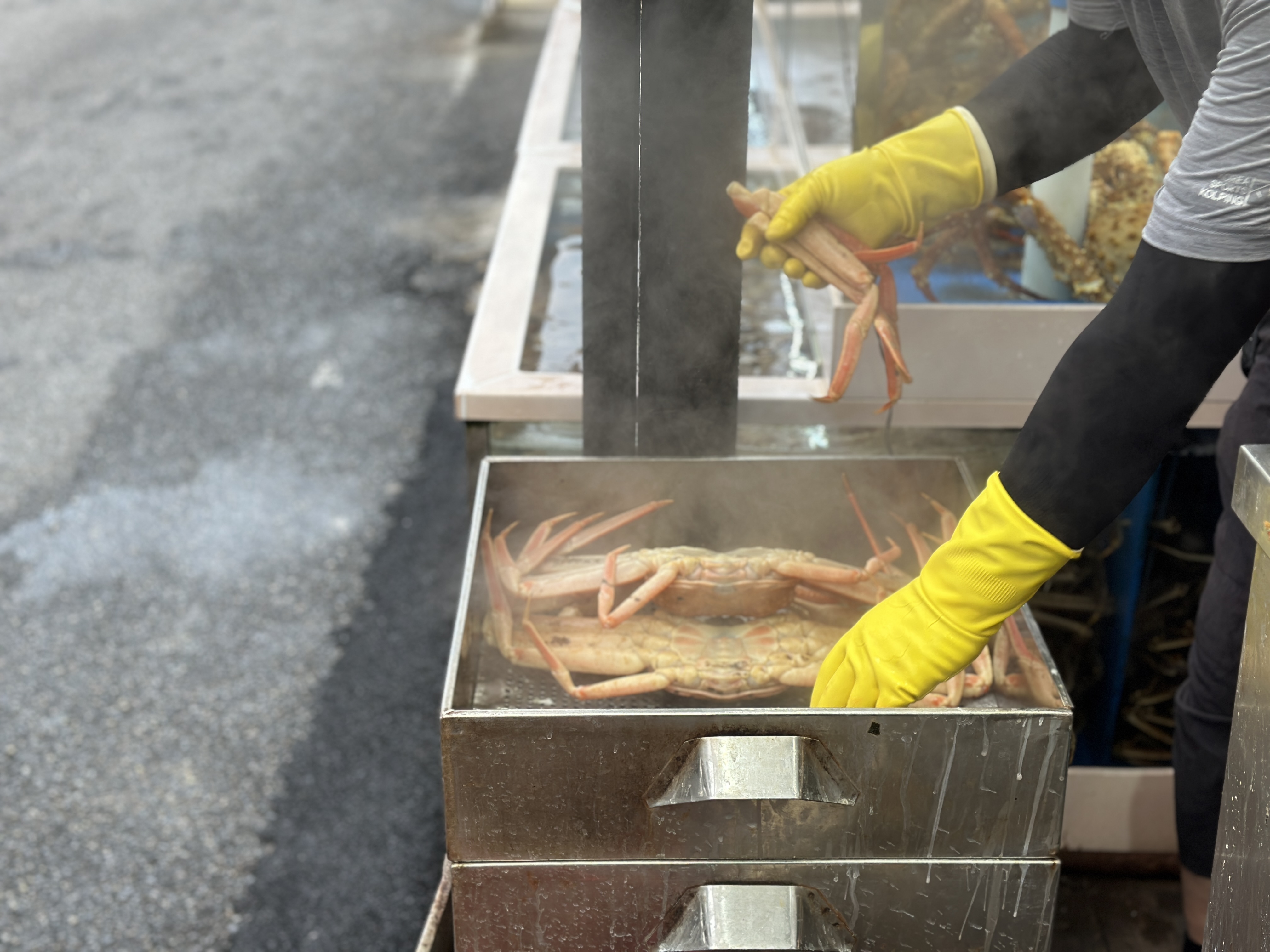 이 찌는듯한 8월 더위에도 열심히 대게를 해체하시는 모습에 감탄이... 홀린듯이 입장합니다.