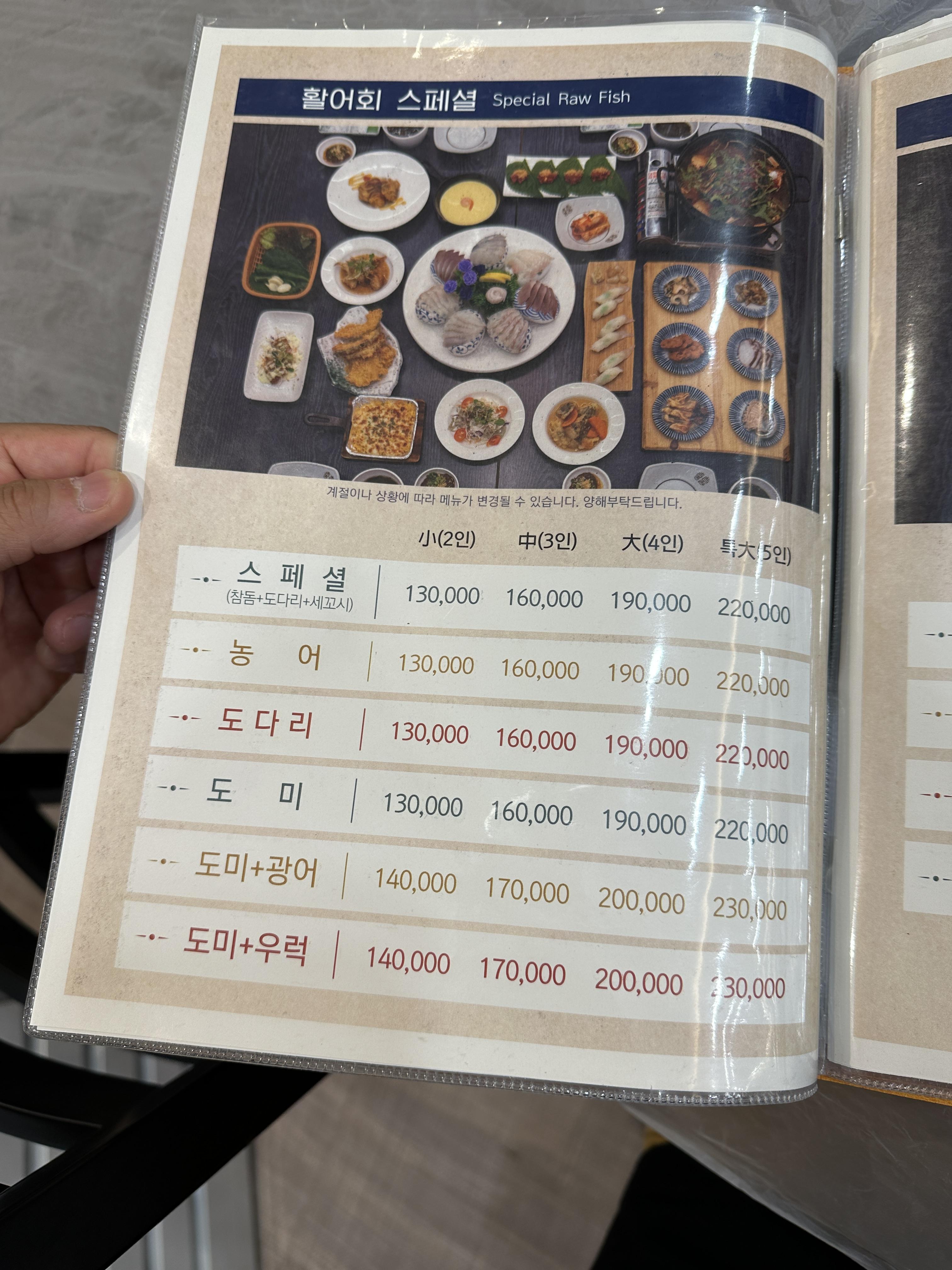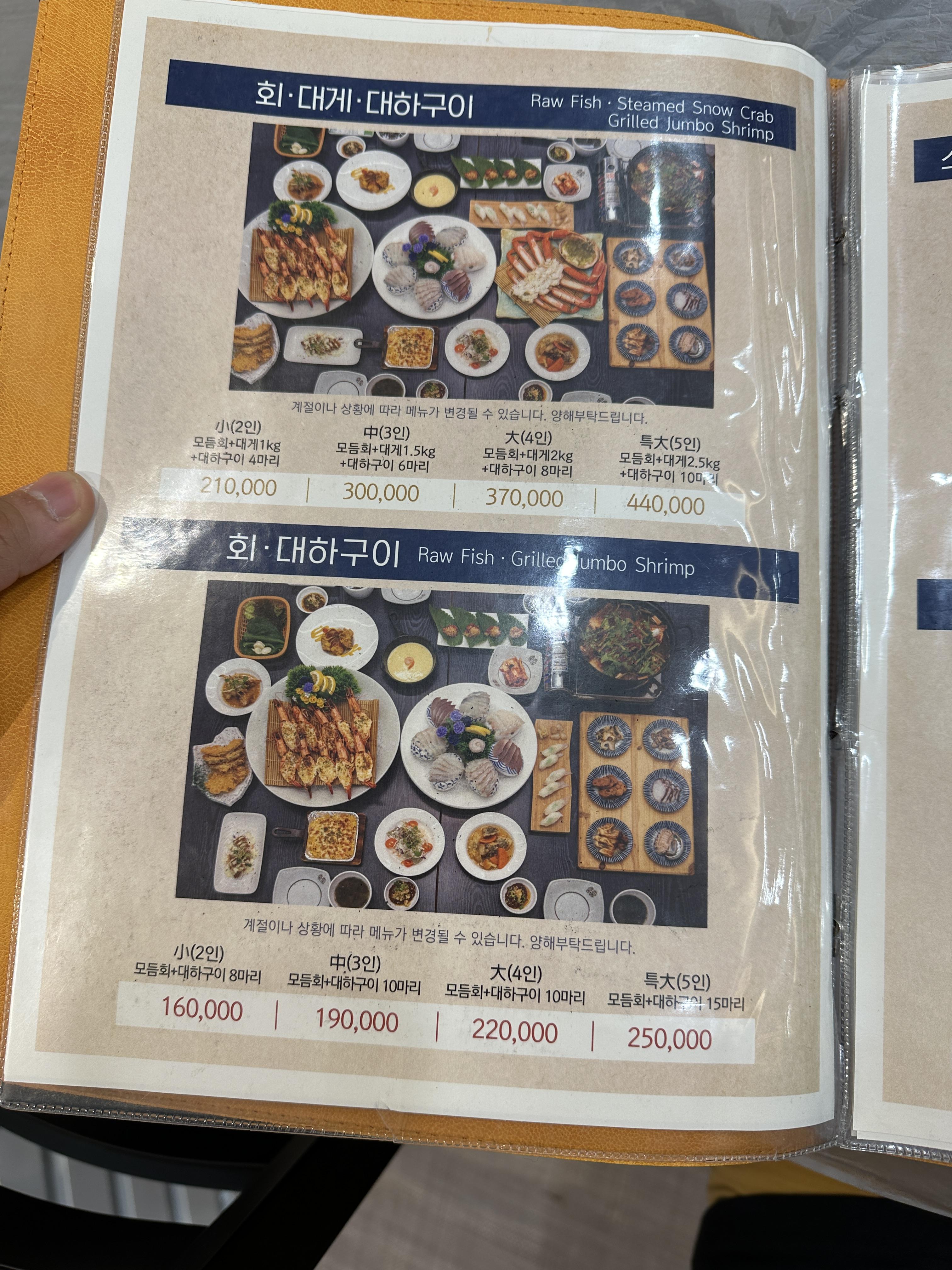 스페셜회, 대게, 대하구이 중 3인(스페셜회 + 대게 1.5kg + 대하구이 6마리)로 주문했습니다. 기왕에 왔으니 다양하게 즐겨보자는 마인드였죠.