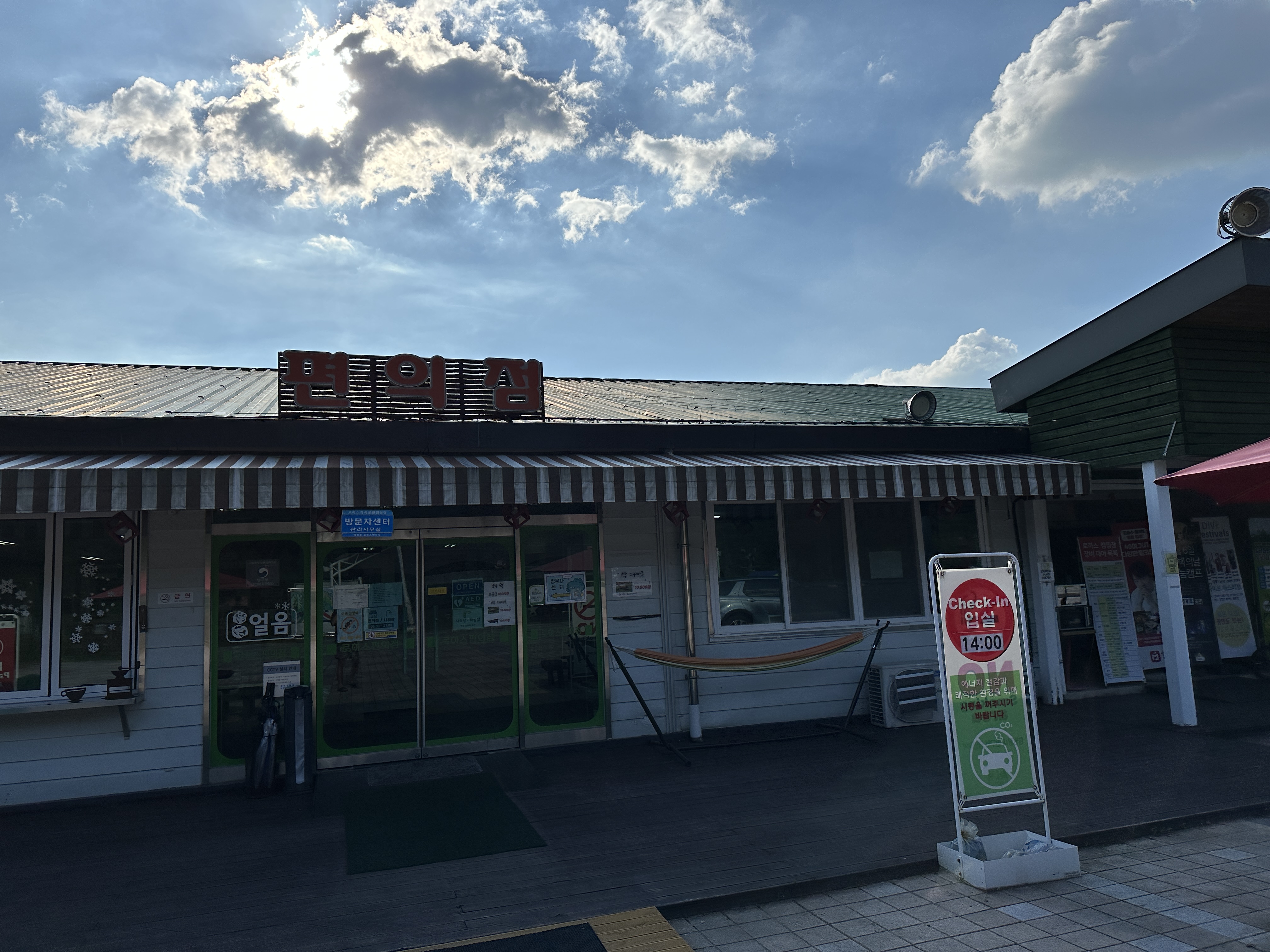 대전 대청호 로하스 캠핑장 체크인은 편의점 건물 바로 옆의 사무실에서 진행합니다. 차단기에서 전화를 하니 편의점쪽으로 오라고 하시더라구요 ㅋㅋㅋ