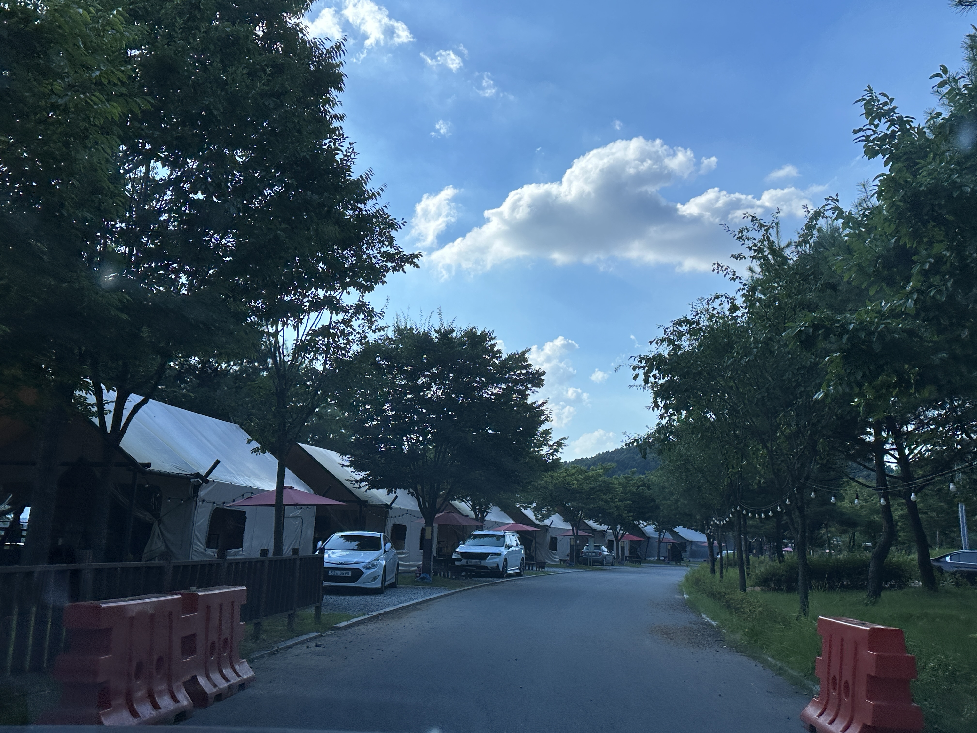너무 더운 날씨 때문에 캠핑장에는 4시 넘어서 도착했습니다. 뙤약볕이 사실 조금 무섭긴 했거든요.