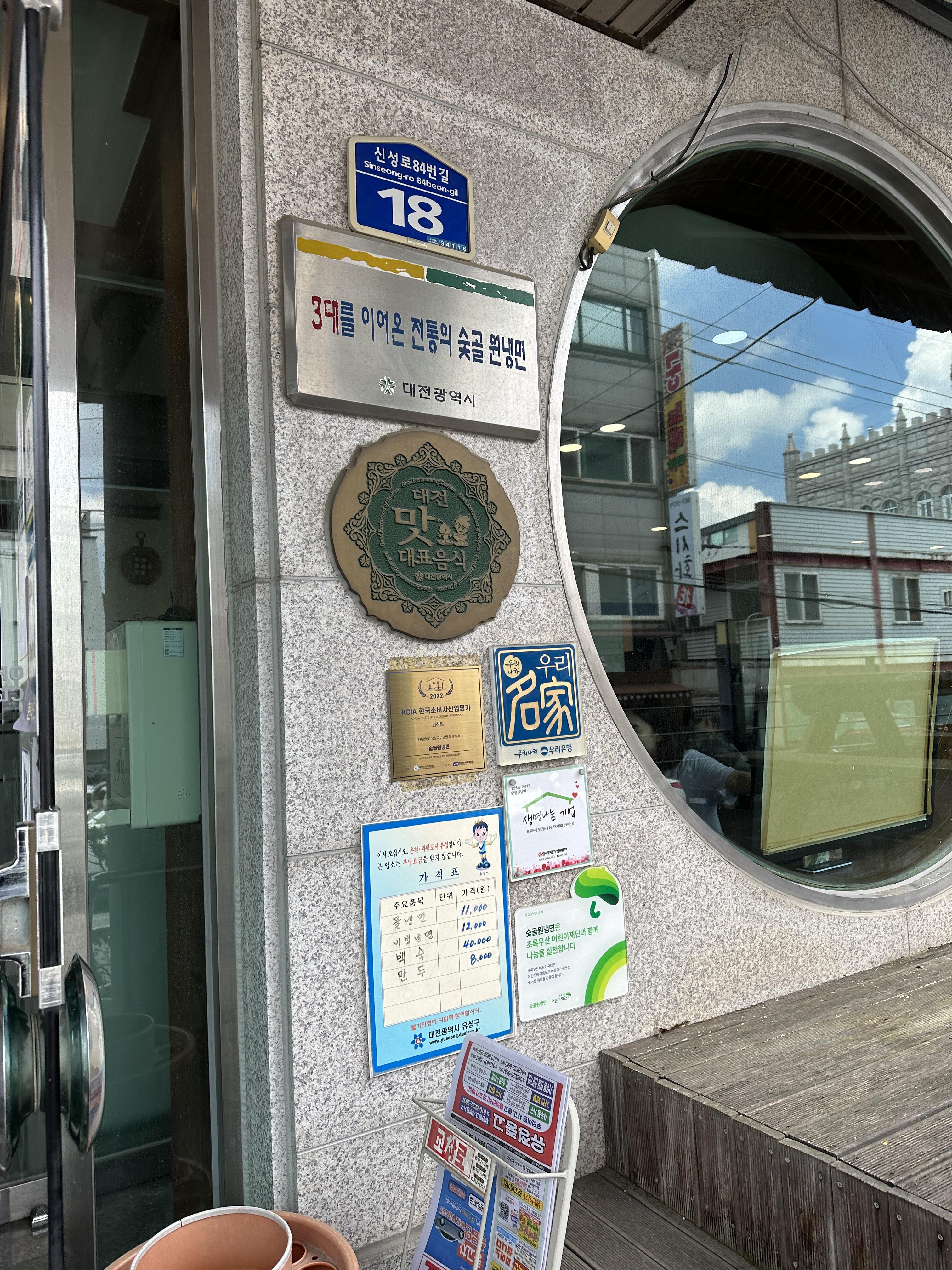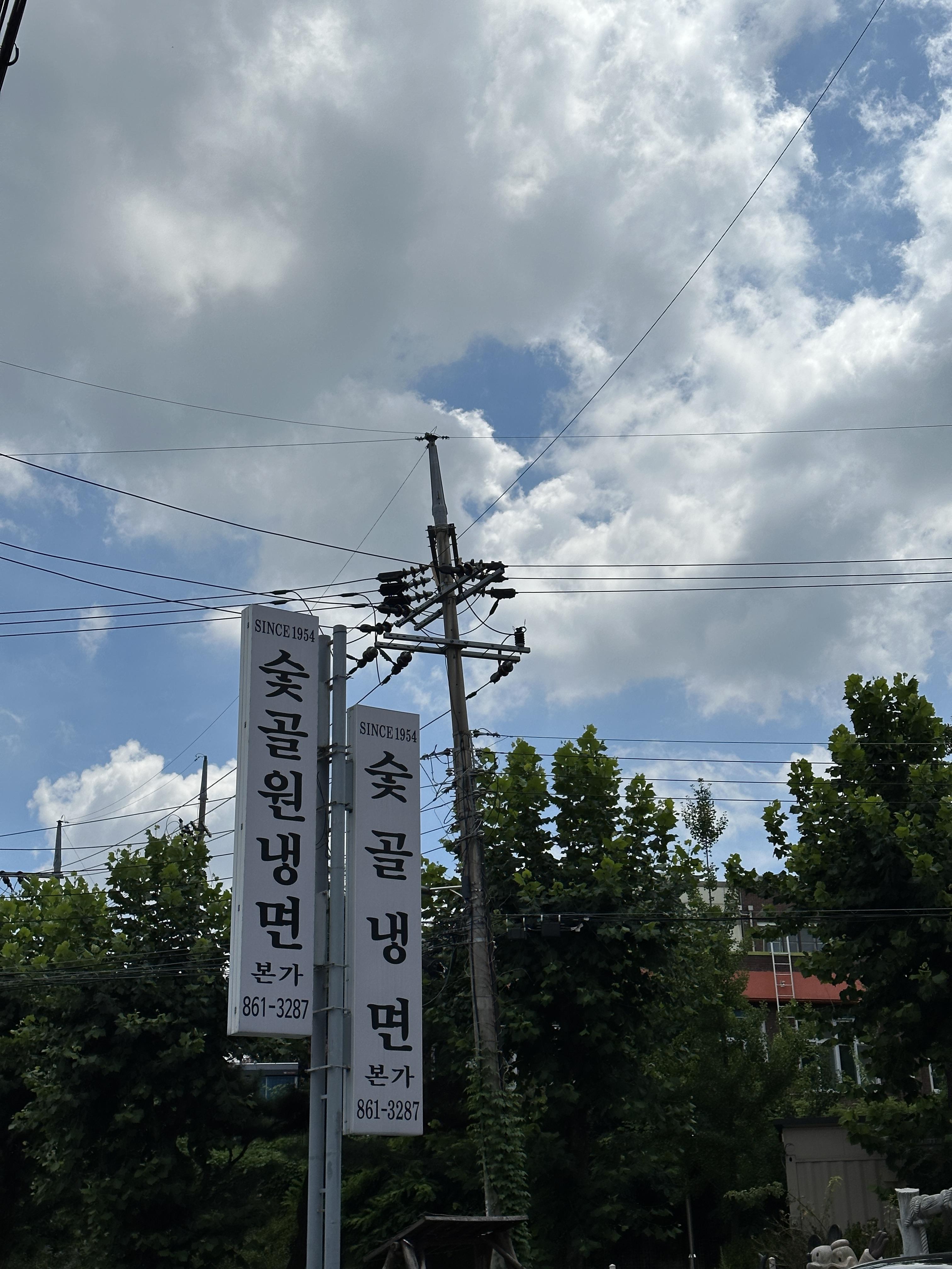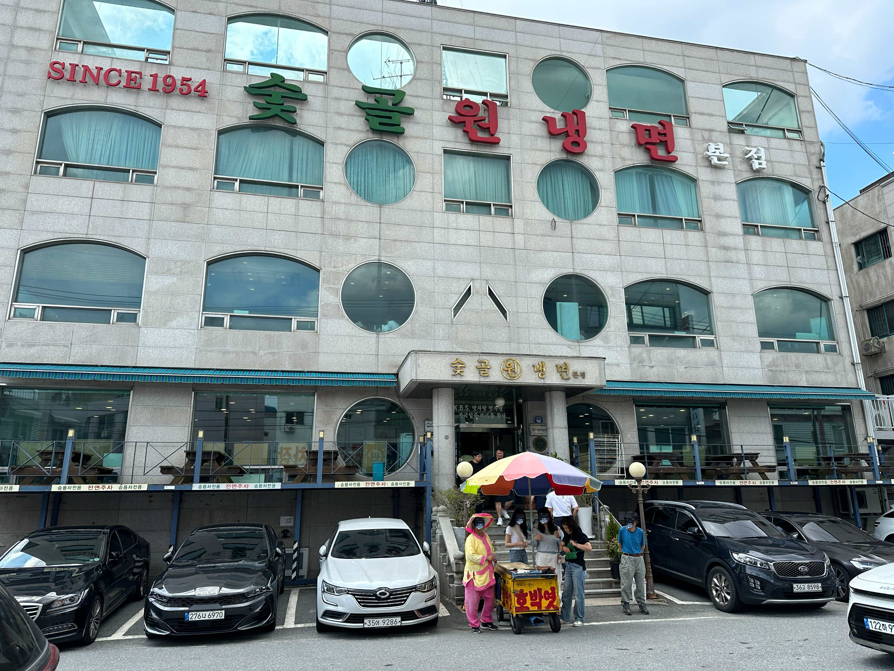 대전 신성동 숯골원냉면 건물 자체가 꽤 컸습니다. 3층 건물 위쪽에 당당하게 써있는 SINCE 1954!! 한국전쟁 이후부터 지금 몇년이지...? 곧 70주년이겠네요 와... 대단합니다.