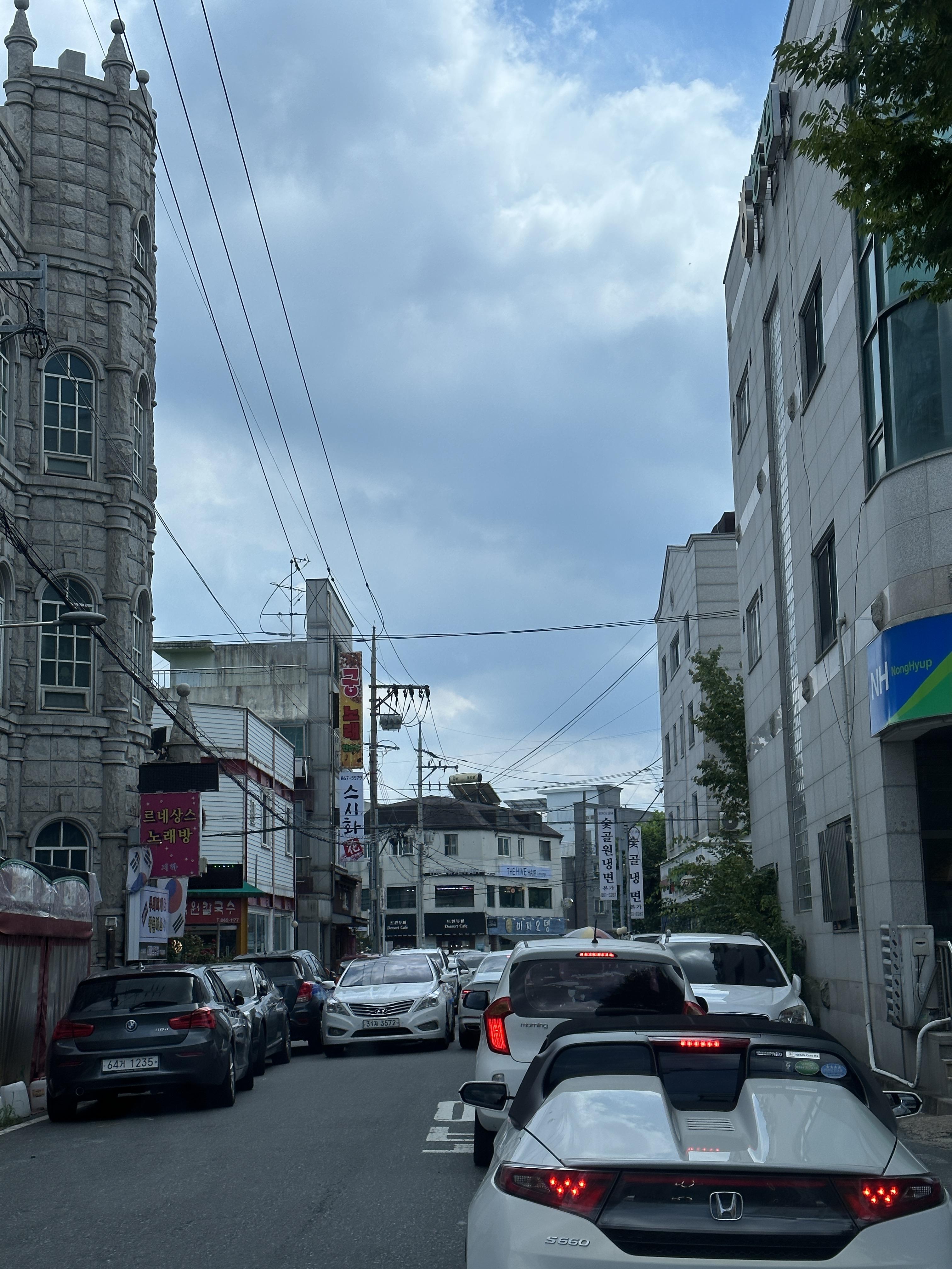 대전 신성동 숯골원냉면에 도착한 시간은 대략 1시정도였습니다. 이미 점심시간이었고, 농협길부터 이미 꽉 차있는 상태였어요. 인기가 대단했습니다.