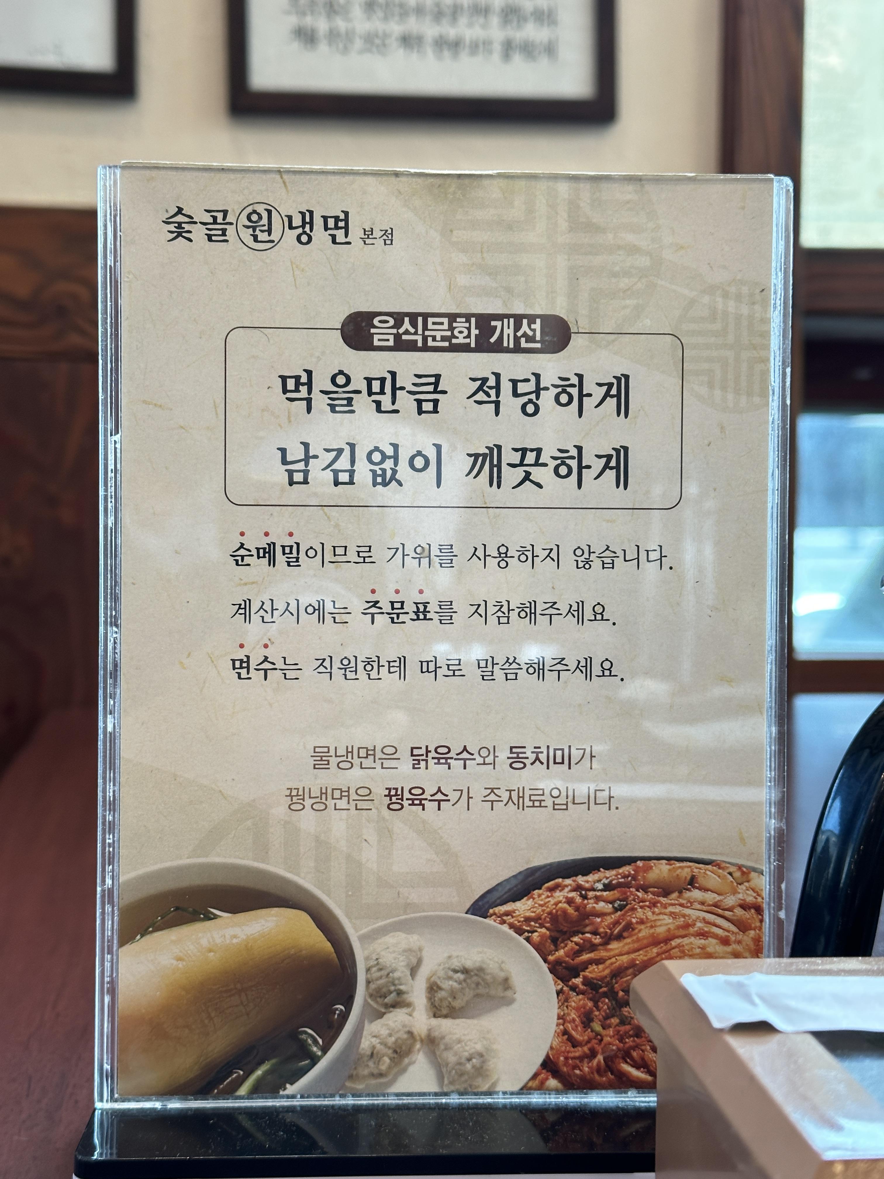 4. 대전 신성동 숯골원냉면 메뉴판 및 기본세팅