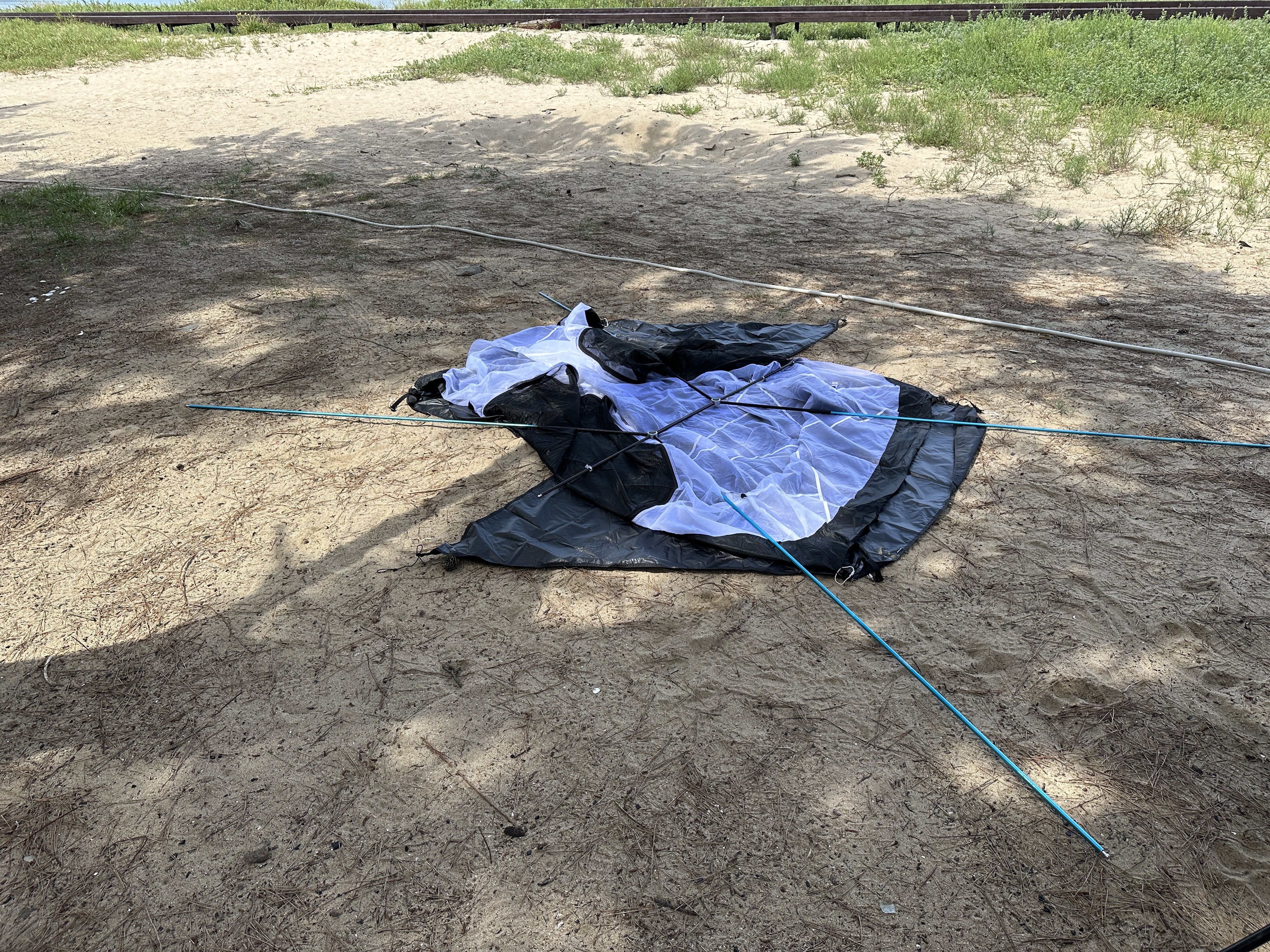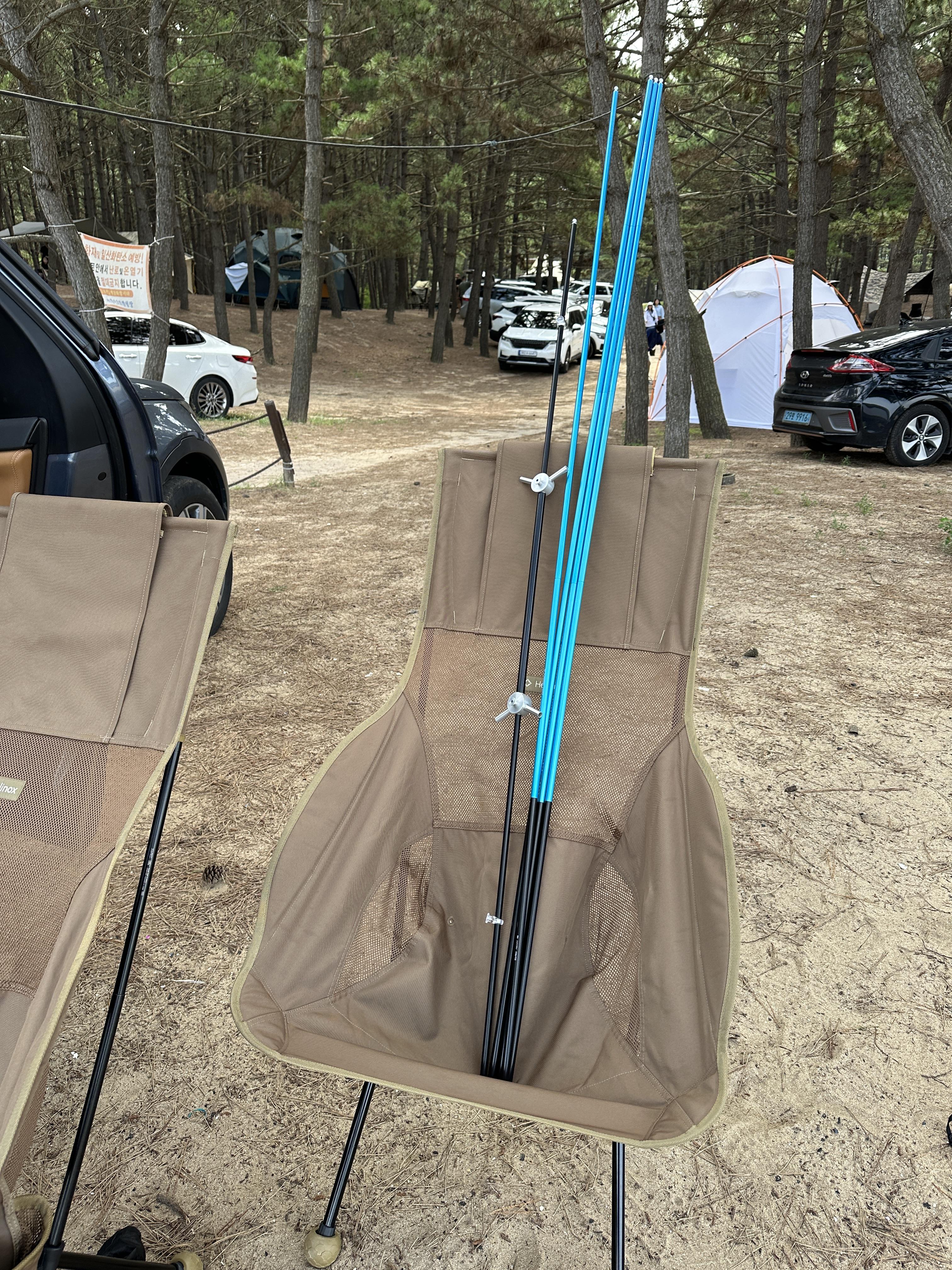풋프린트를 깔고 이너를 올려둔 뒤에 빠르게 폴대를 결합합니다. 지난 포스팅에서 겪은 시행착오 덕분에 크게 헤매지 않고 바로 결합을 완료합니다. 영롱한 헬리녹스의 근본 파랑색이 눈에 띕니다. ㅋㅋㅋ