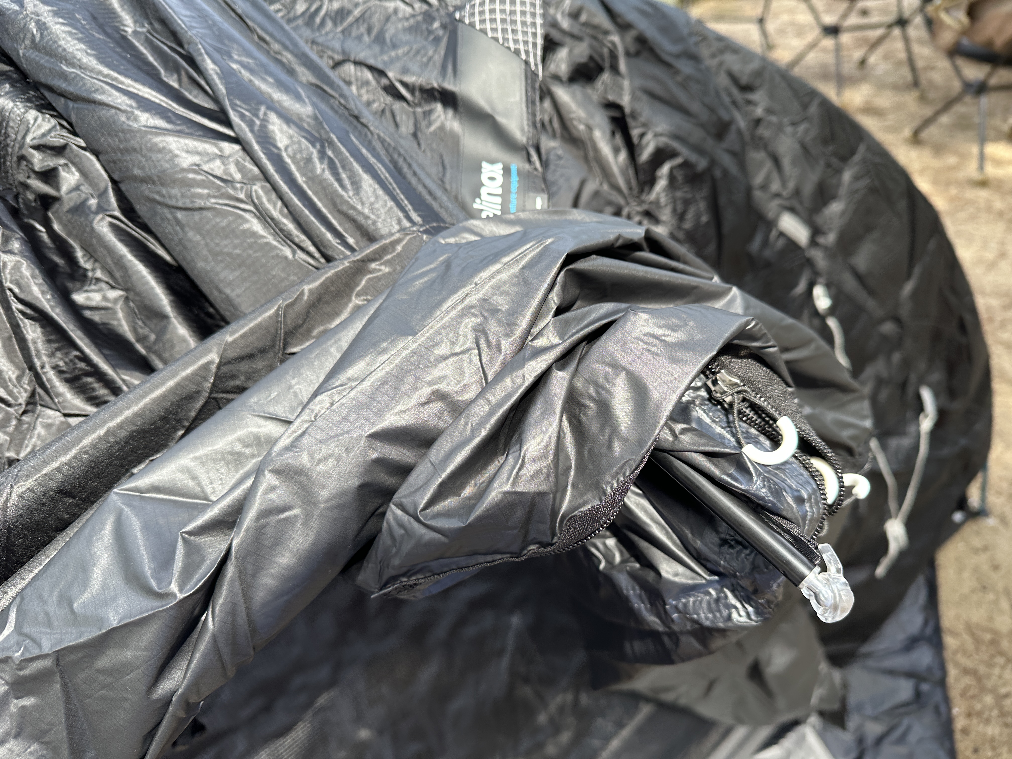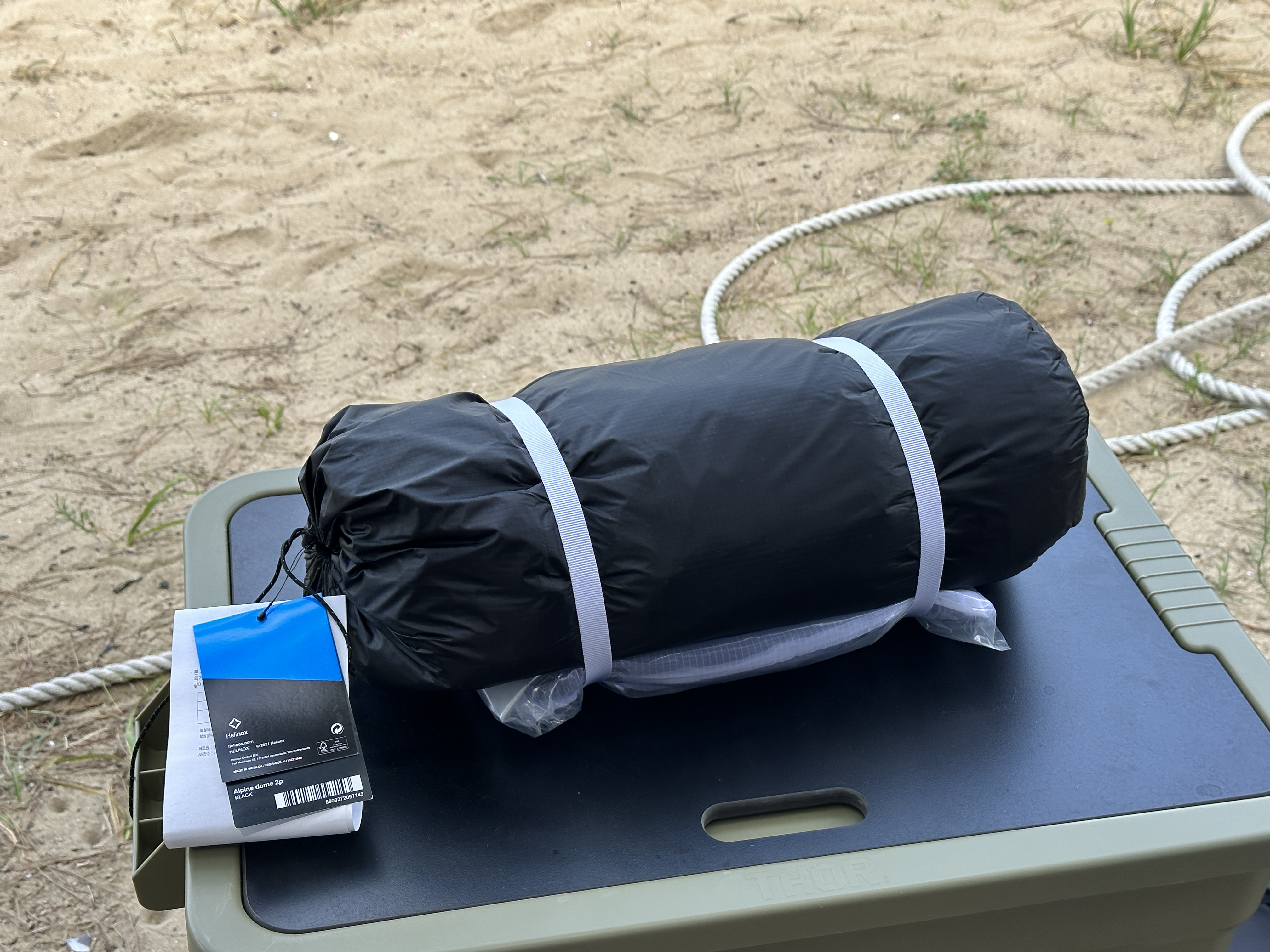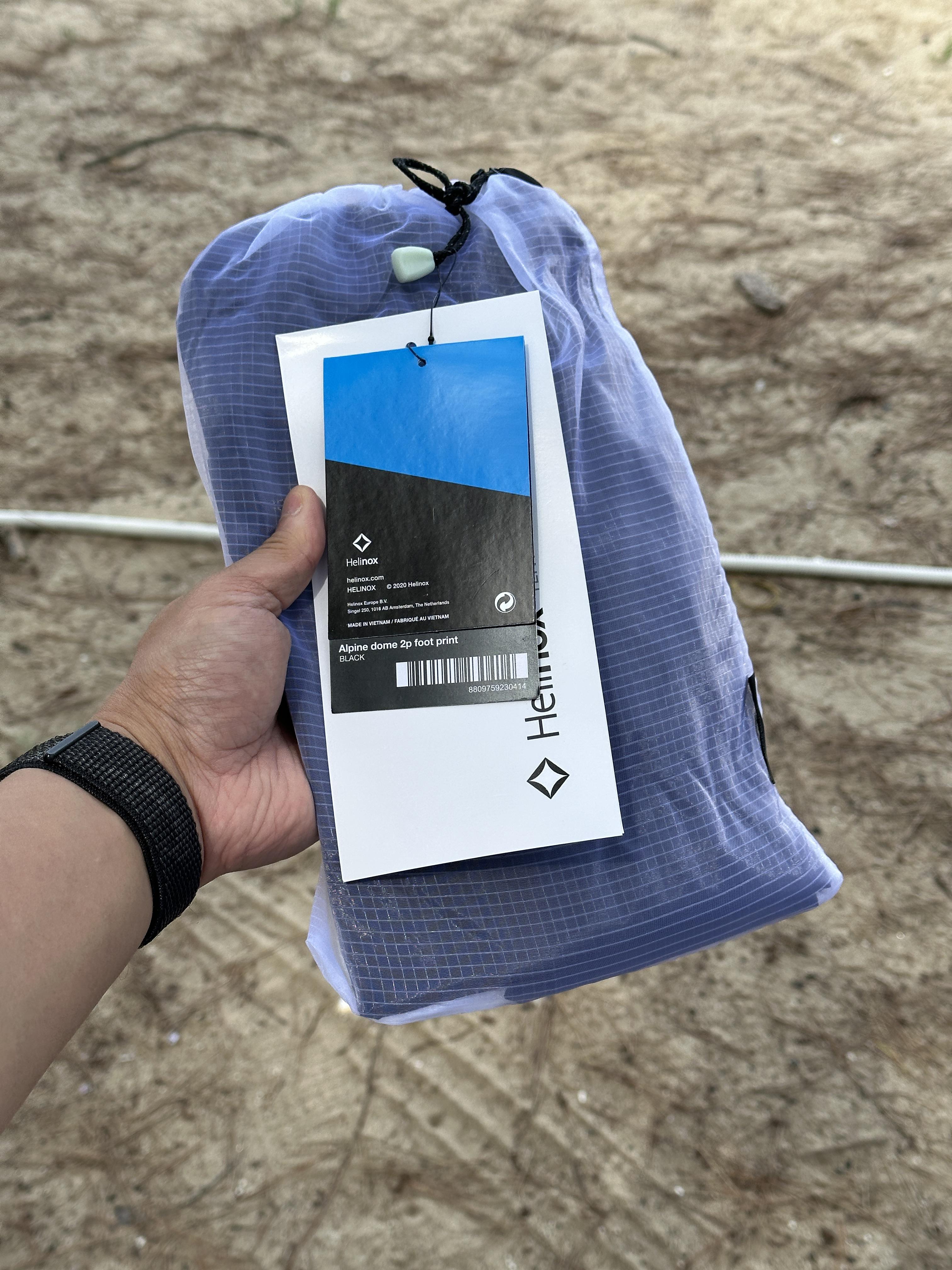헬리녹스 알파인돔 2P (Helinox Alpine Dome 2P) 본품과 풋프린트를 연결하여 패킹 해 두었습니다. 파우치에 잘 들어있는 모습이죠.