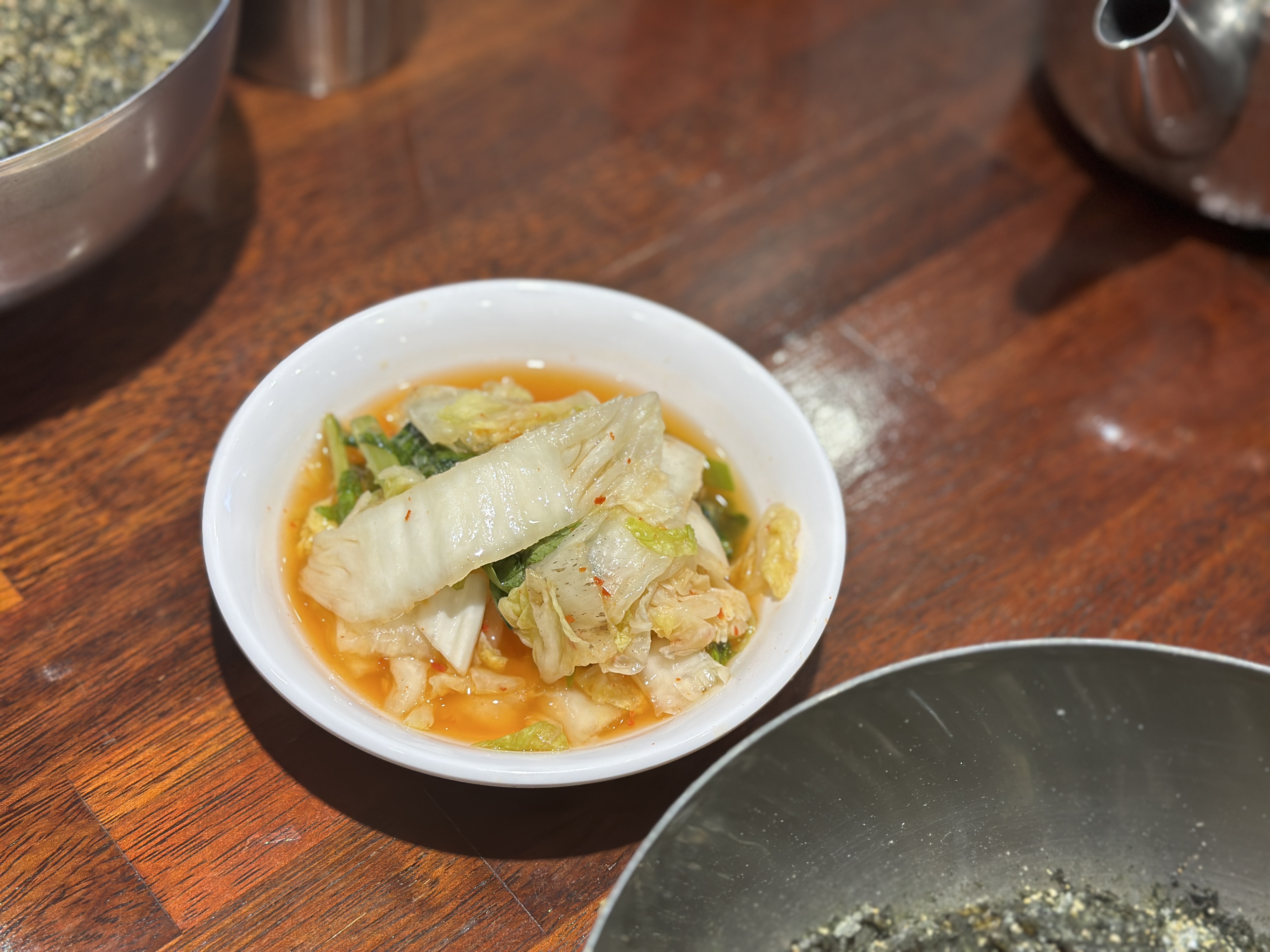 일단, 온육수와 냉수를 주십니다. 수육을 시키면, 쌈장도 함께 나오지만, 막국수만 시키면 이렇게 김치만 나옵니다. 이 김치가 또 생각보다 너무 맛있어서 매우 추천합니다.