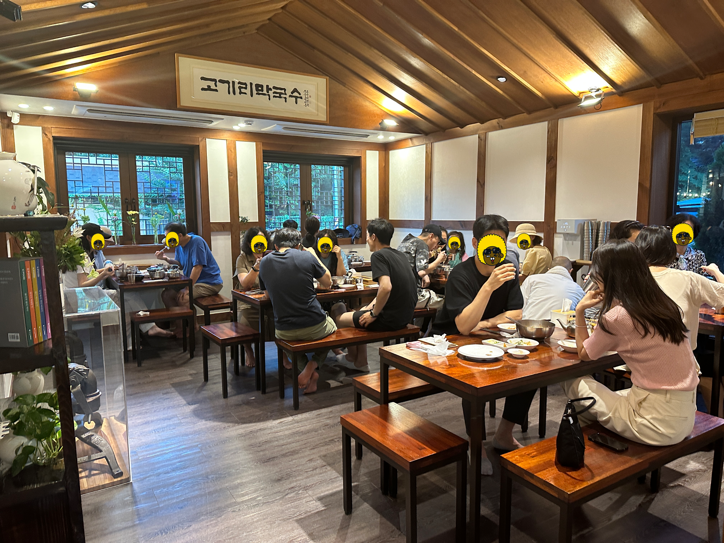 용인 들기름막국수 최고맛집 고기리 막국수의 좌석은 사진과 같습니다. 그리 좁지는 않지만, 마냥 넓고 쾌적하지만도 않습니다. ㅋㅋㅋ 꽉 찬 실내를 찍어서 그럴 수도 있지만, 먹는 데 불편하거나 하지는 않습니다. 손님이 많은 것 뿐이에요 ㅋㅋ