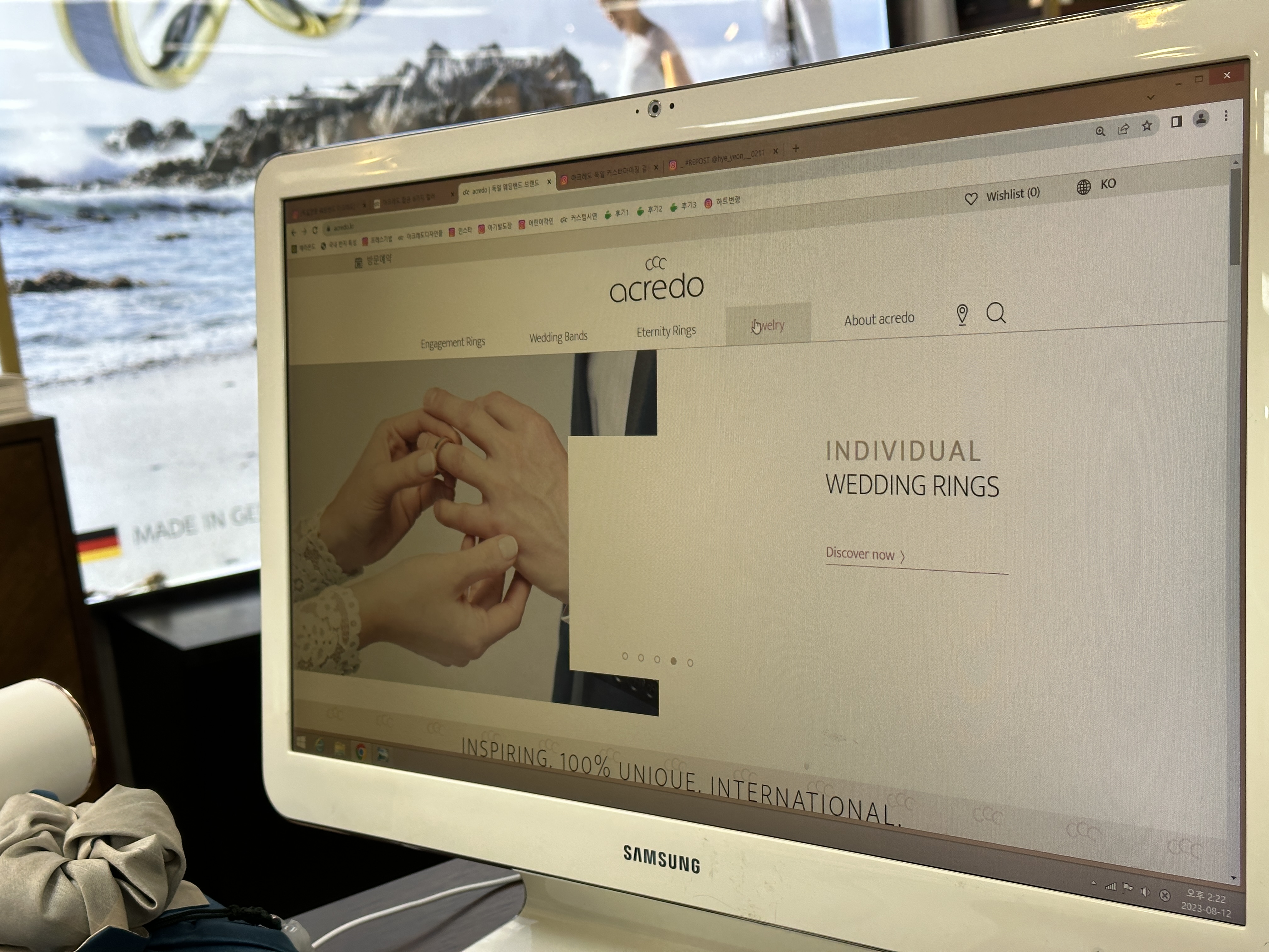 아크레도 웨딩링으로 향했습니다. 브랜드도 모르고 그저 스티커를 위해 방문했지만 이런저런 상담에 흥미가 생겼고, 디자인을 커스텀 할 수 있다는 점이 특이했습니다. ㅎㅎ 물론 혜택도 적지않게 받을 수 있었구요. ㅋㅋㅋ
