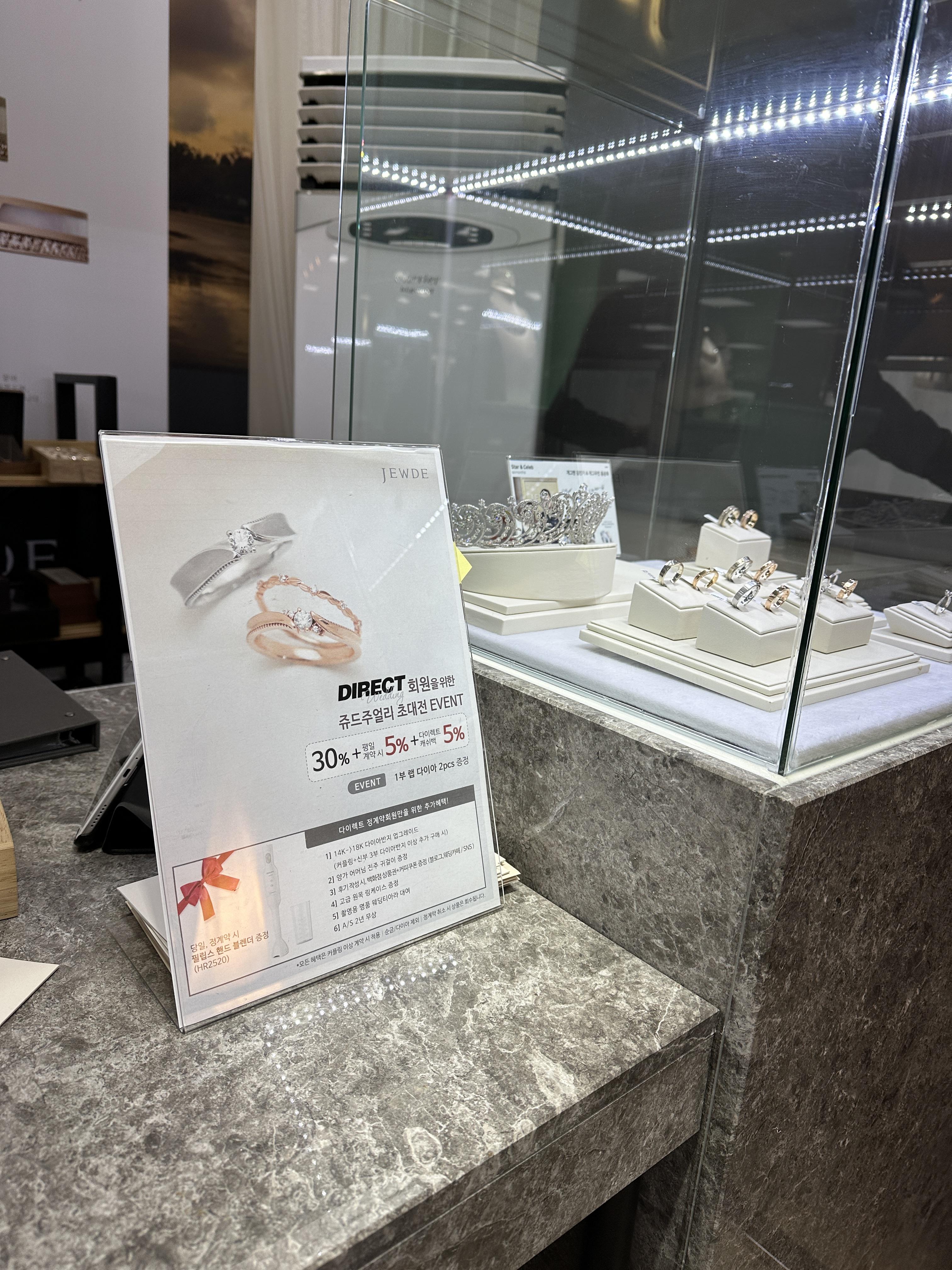 다양한 반지들을 만나볼 수 있었습니다. 사실 예물같은 것들에 대해 간소화하고 집에 몰빵하기로 어느정도 합의를 한 상태여서 그런지 약간은 반지에 욕심이 있는 듯 했었지만, 스티커를 핑계로 방문했죠.ㅋㅋㅋ 금액적인 메리트도 있었기 때문이죠 ㅋㅋㅋ