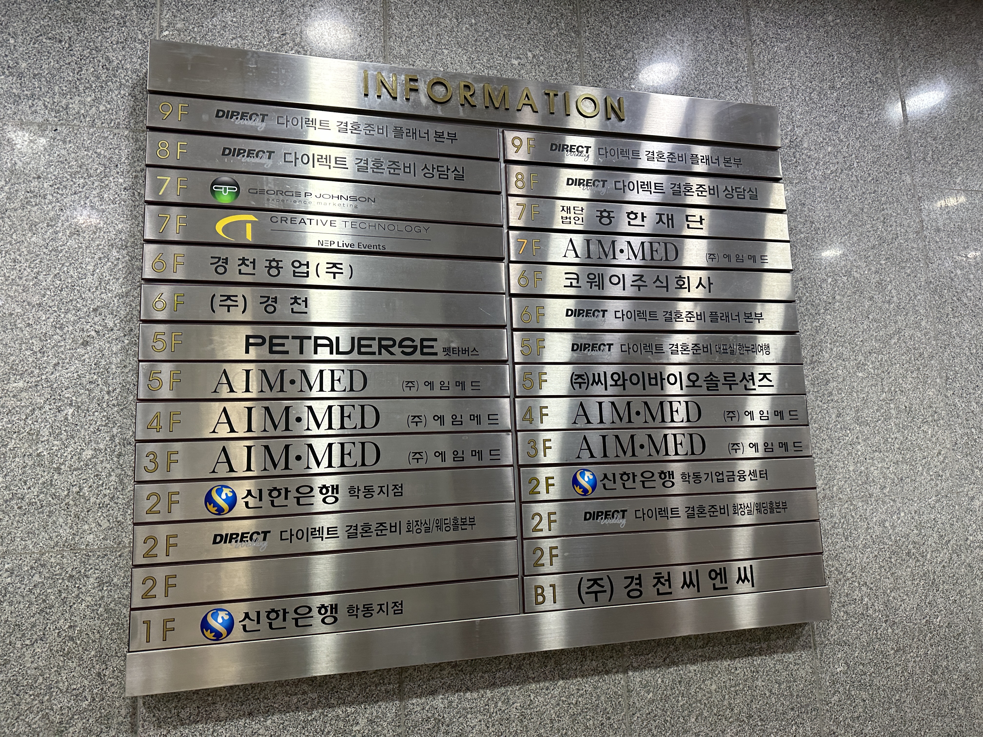 다이렉트 결혼준비 박람회장 건물은 8층에 위치하고 있어요. 엘리베이터 2대로 이동하며, 주차는 발렛으로 해주시는 듯 합니다. 지난 번에도 그렇고 이번에도 저희는 도보로 이동했어요^^ 마음편히 박람회에 참여하기 위해서죠 ㅋㅋㅋ