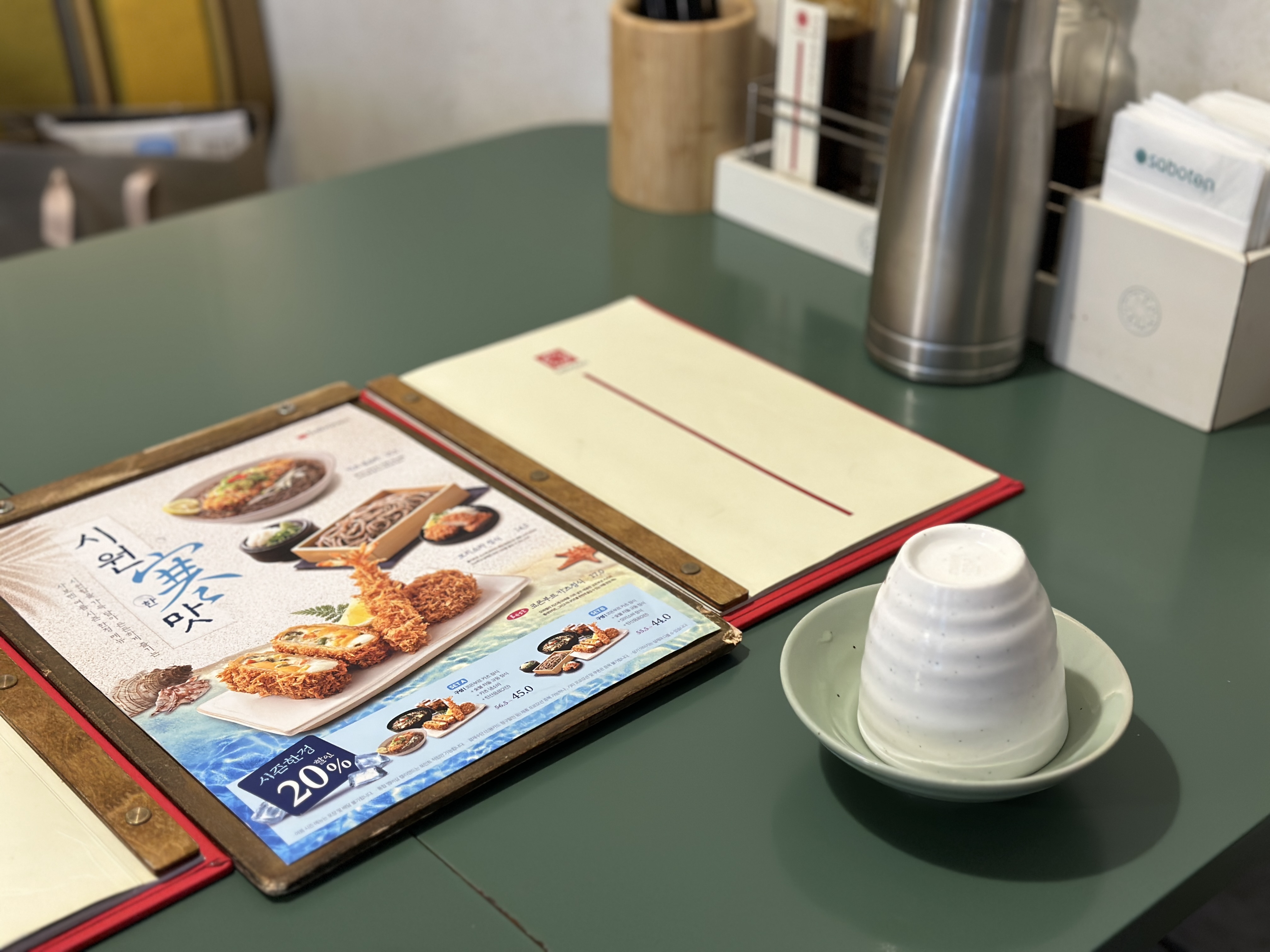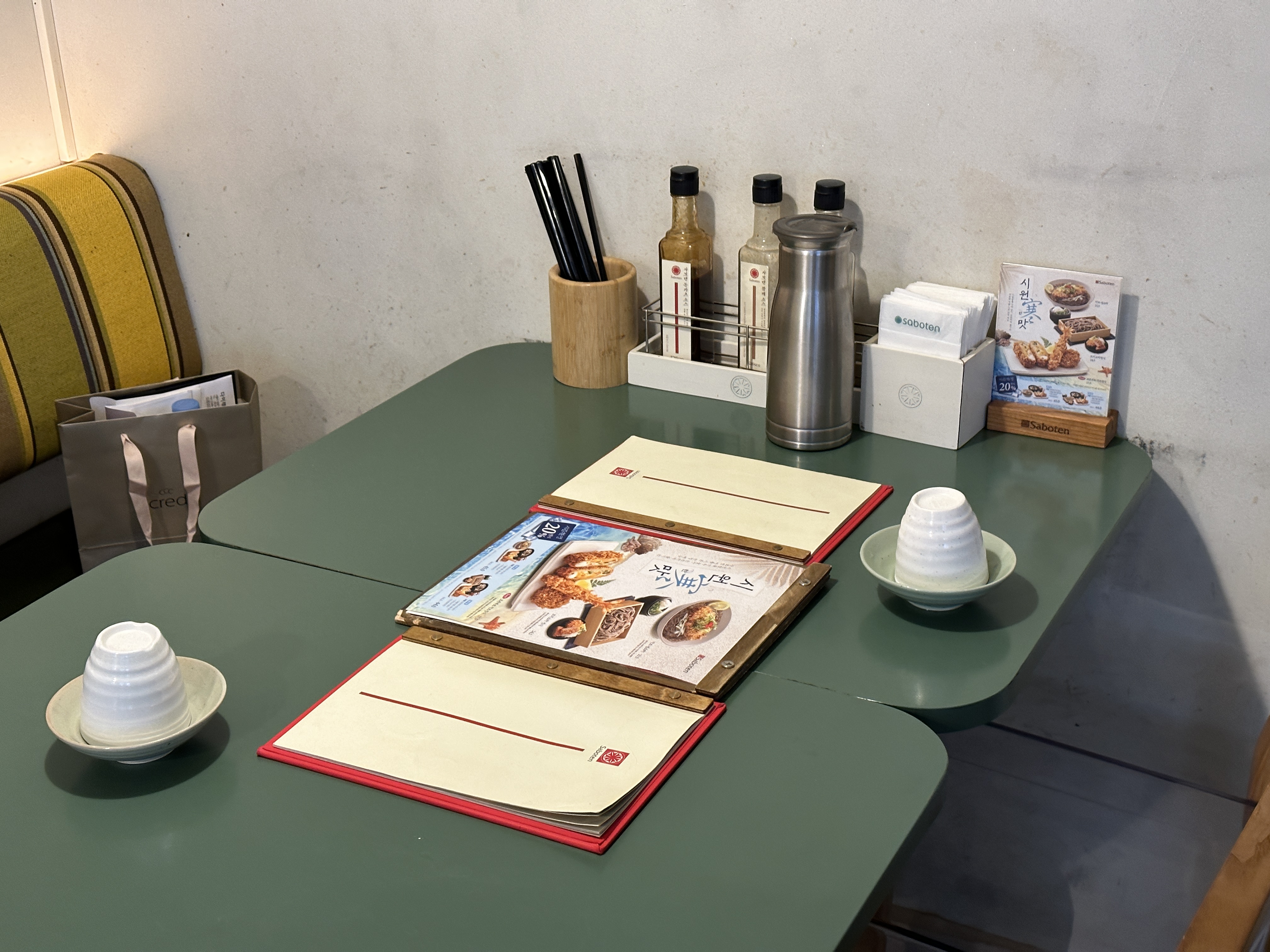3. 일식 돈까스 전문점 사보텐 압구정역점 테이블 세팅 및 메뉴판