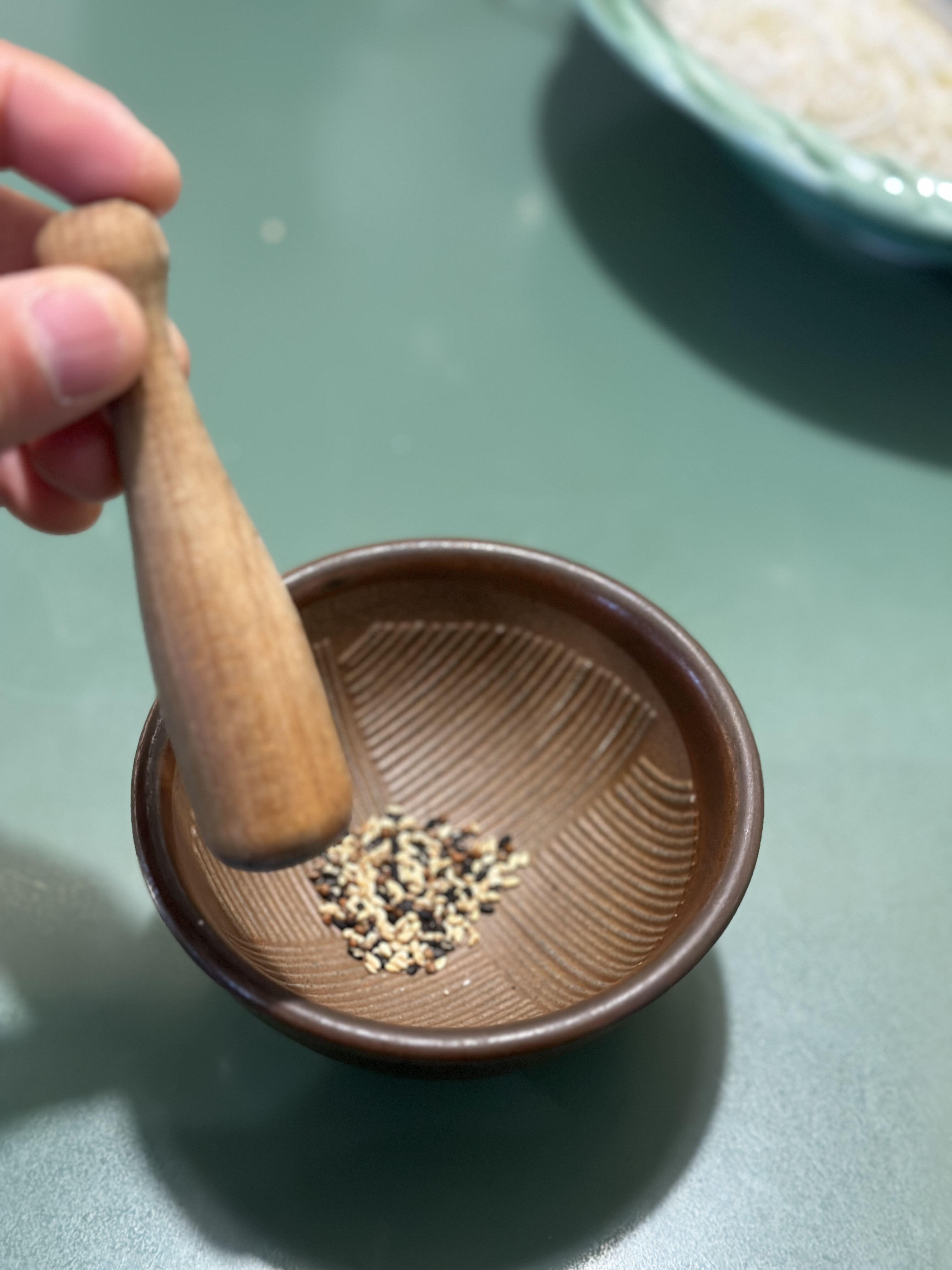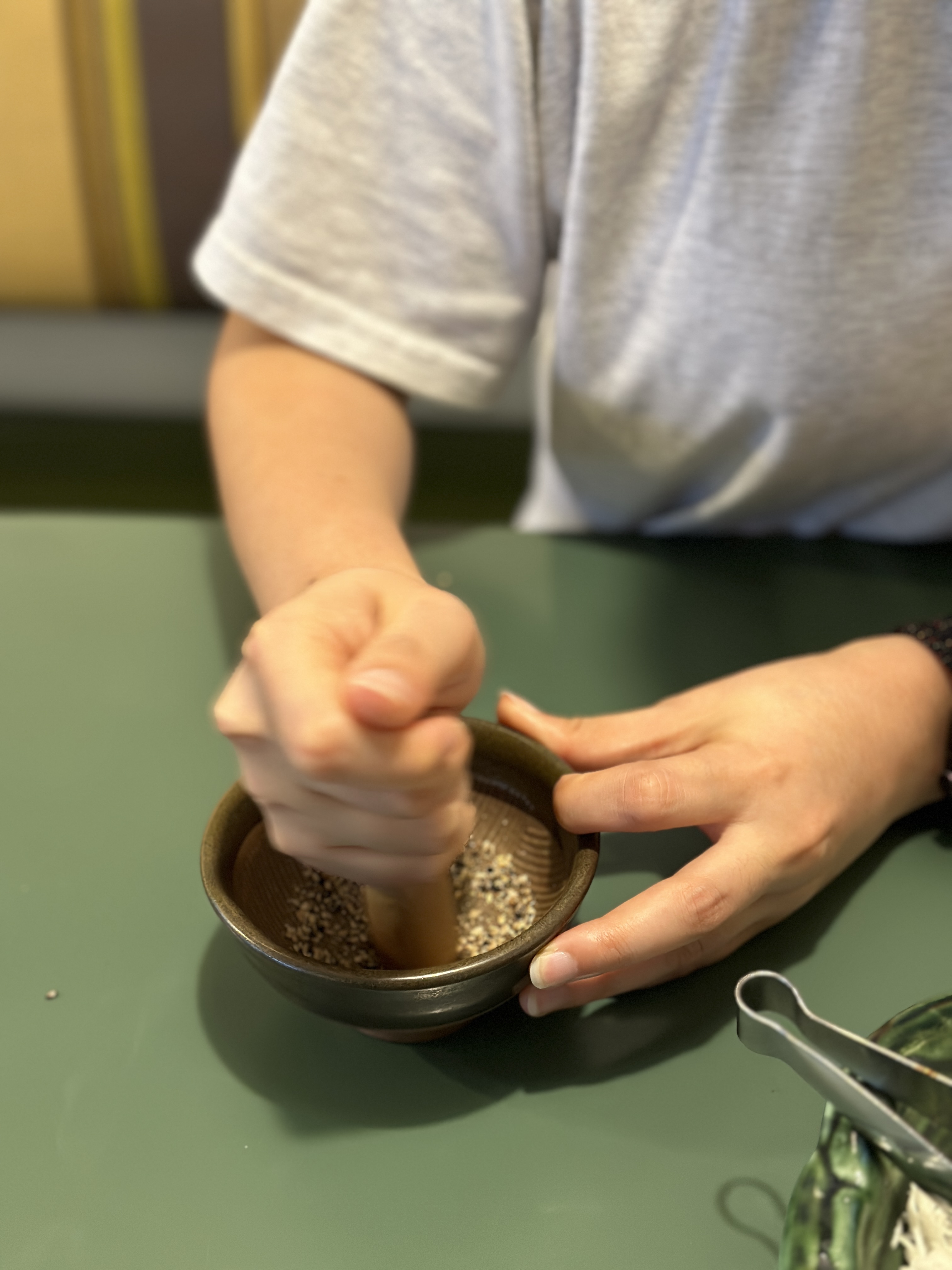주문을 마치자 바로 참깨, 샐러드가 등장합니다. 이 참깨는 사진처럼 갈아서 돈까스 소스를 넣어 먹습니다. 직접 갈기에 재미도 있구요.