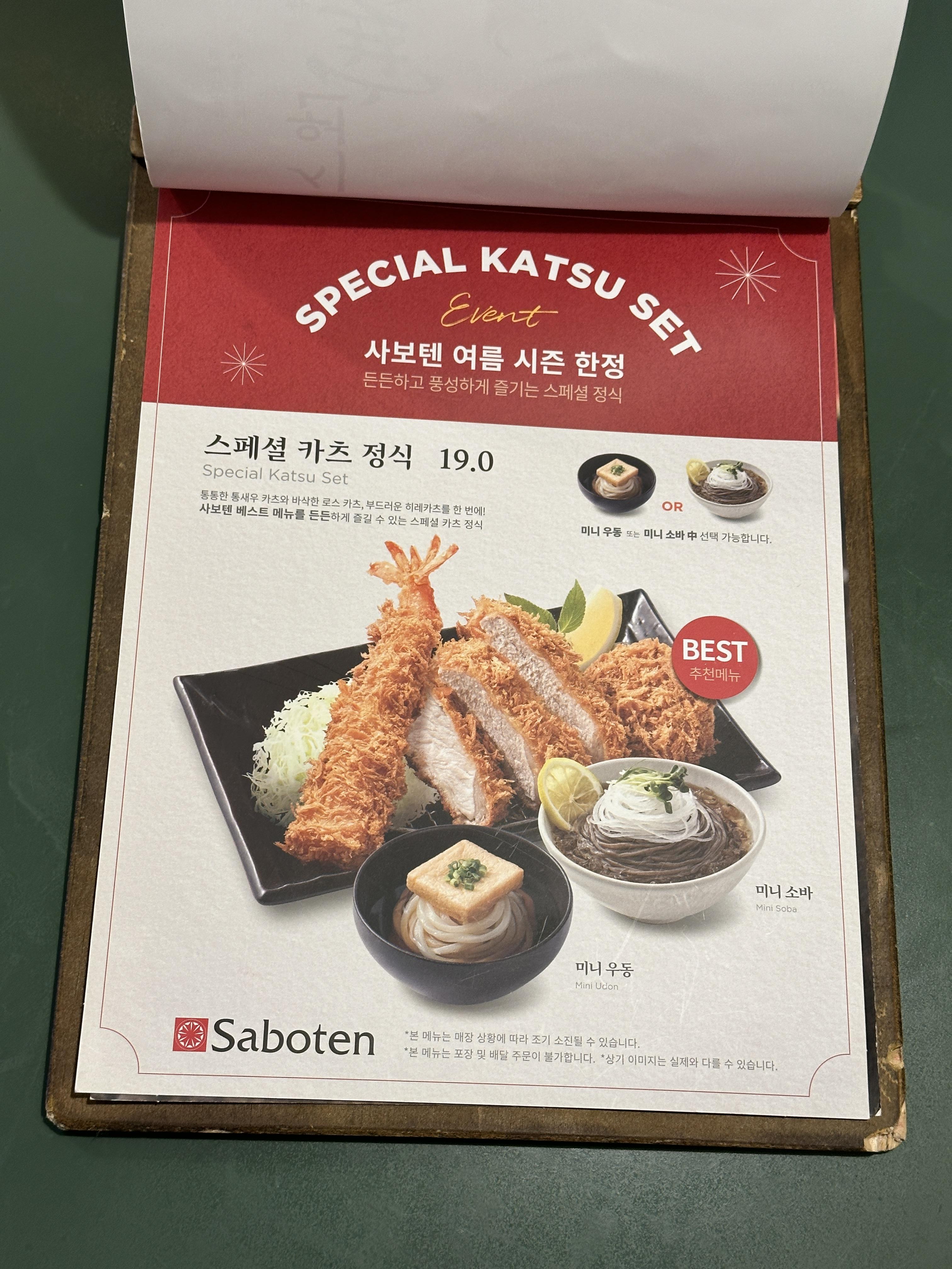 - 우리가 프랜차이즈 식당을 찾는 이유는 검증된 식사 메뉴들과 맛, 그리고 서비스 때문이겠죠? 바로 그런 일식 돈까스 전문점이 사보텐 압구정역점입니다.