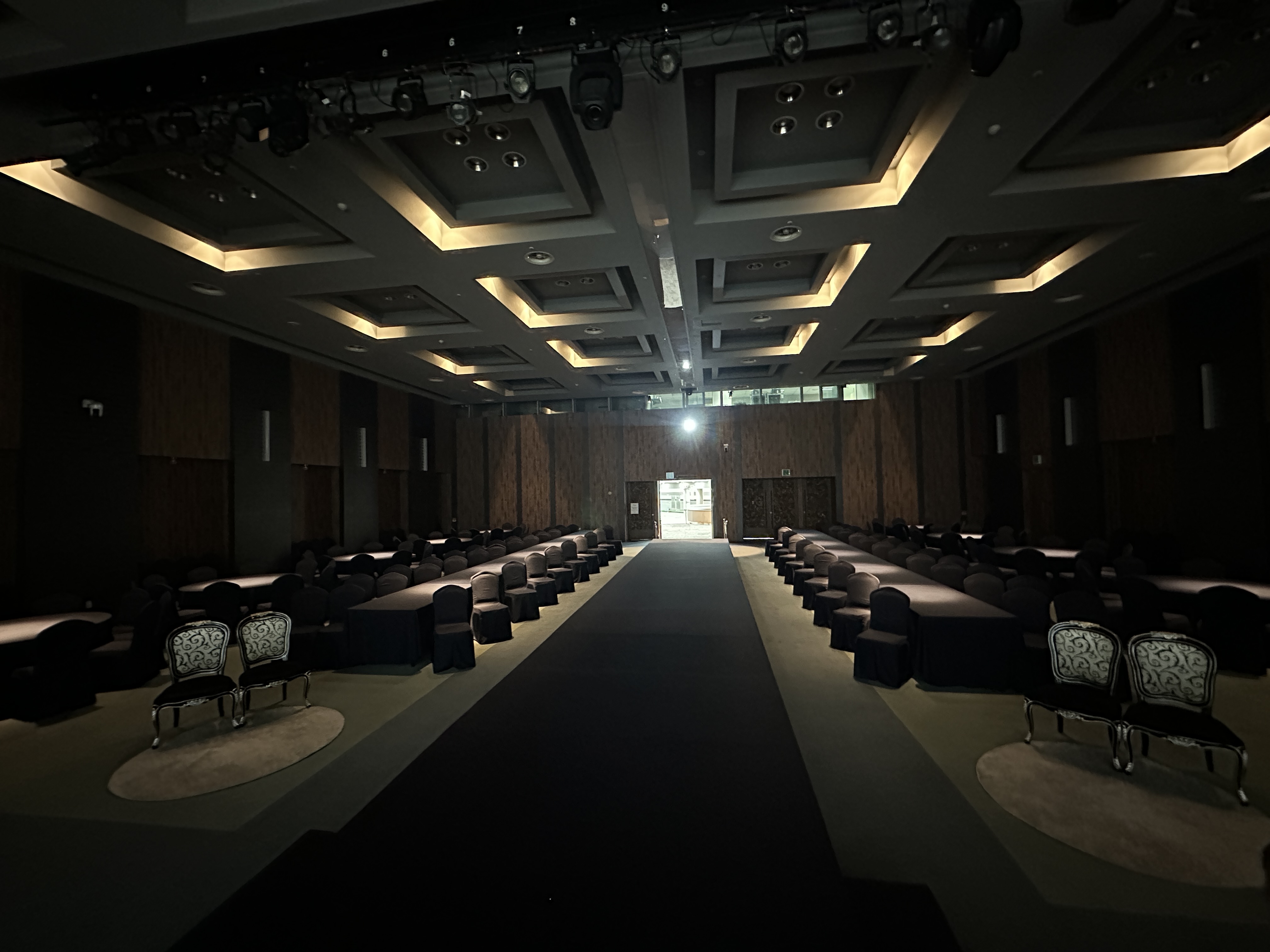 상담을 마치고 실제 식장투어를 시작합니다. 바로 지하 1층의 두개 연회장을 방문해봅니다. 2개의 연회장으로 두 타임씩 소화하는 방식이며, 하객들이 겹치지 않게 되어 있는 점은 큰 장점입니다.