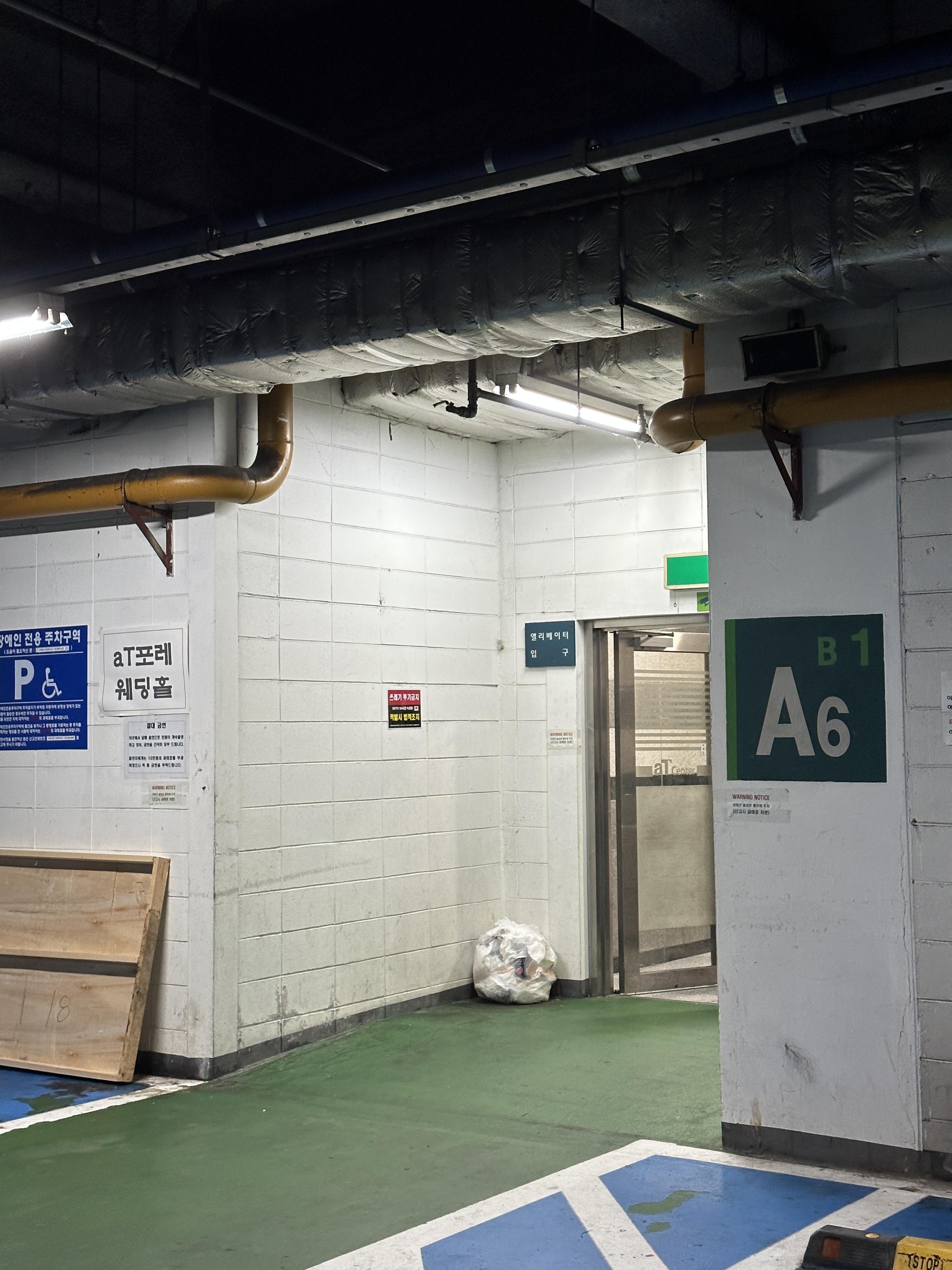 양재 aT포레 웨딩홀 주차장으로 진입했습니다. 이 날은 행사/ 결혼식이 없는 날이어서 꽤 한산해 보였습니다. 입/출차에 불편함은 없었고, 통행에 크게 어려움은 없었습니다. 바로 이어진 통로로 B1과 연결되어 있답니다. 굿굿