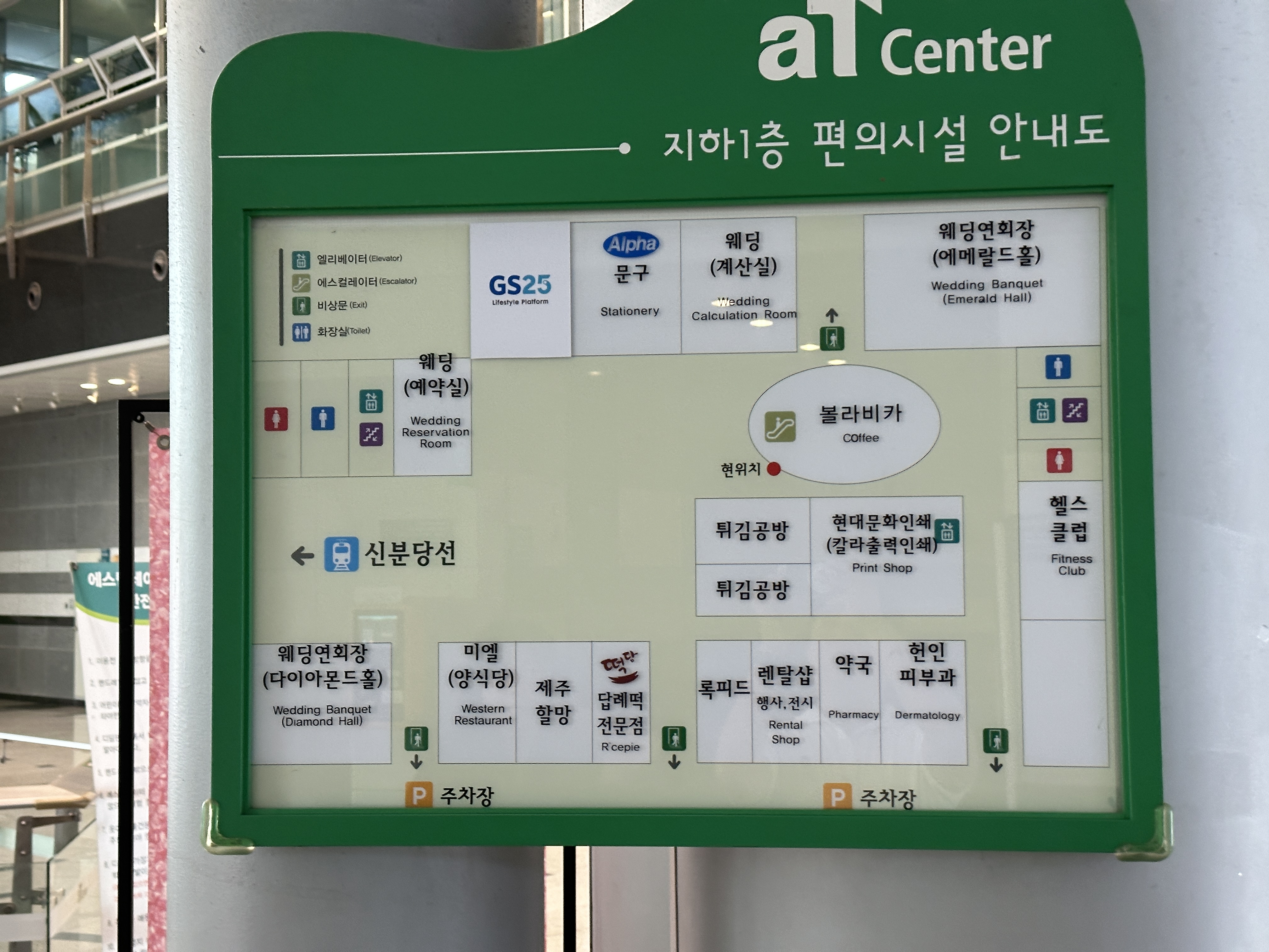 안내도를 참고하시죠. 아무래도 결혼식장만 있는 건물이 아니니, 다양한 업체나 편의시설이 있는 편입니다. 하지만, 행사가 없는 주말같은 경우에는 영업을 대부분 하지 않는다고 하니 참고하세요.