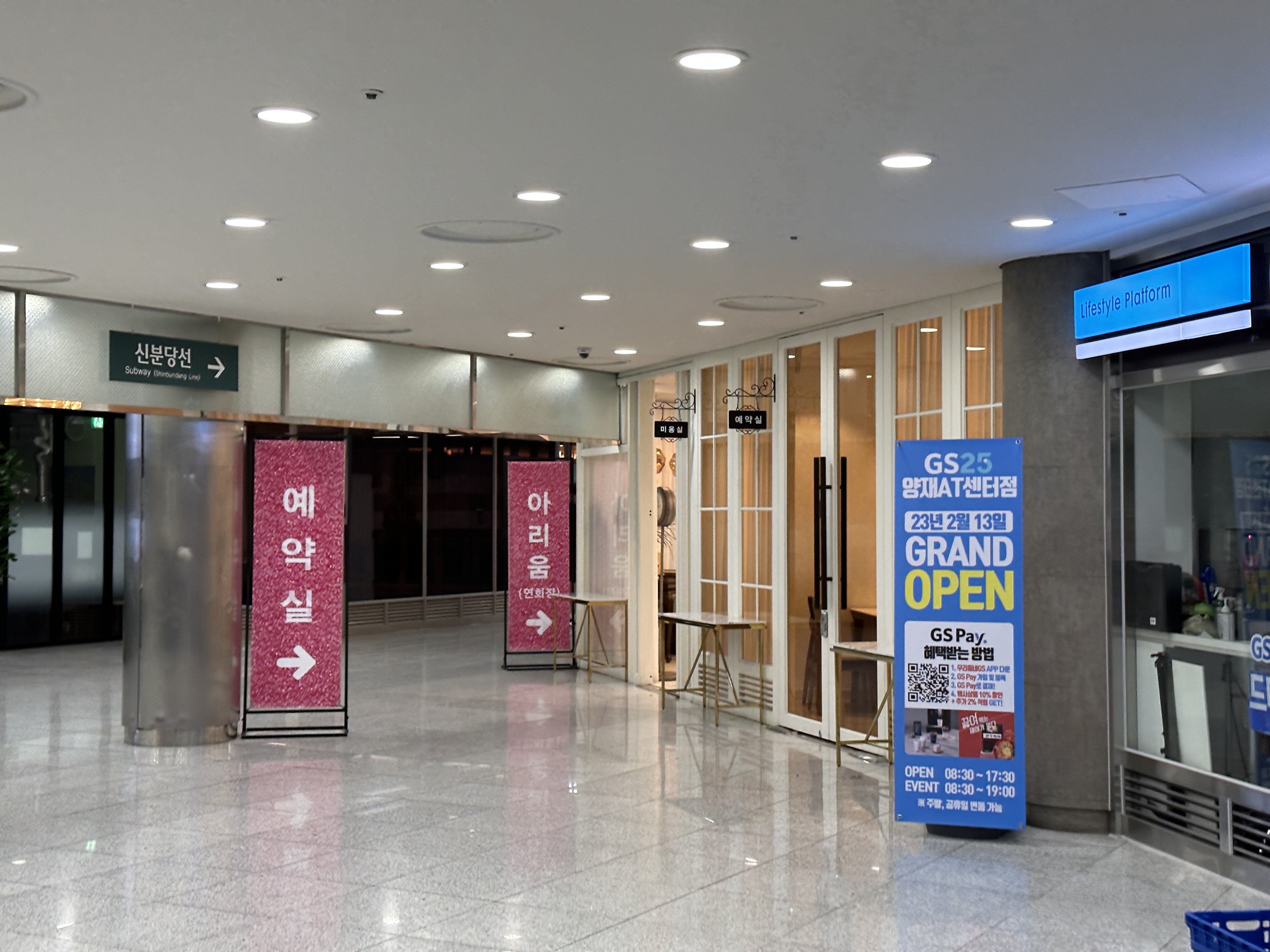 또하나의 큰 장점 중 하나죠, 아무래도 AT센터와 연결되어 있는 양재시민의숲 역의 통로를 그대로 쓸 수 있습니다. 이 것은 정말 큰 메리트입니다. +_+ 도보로 오시는 분들도 매우 편리하게 오실 수 있답니다.