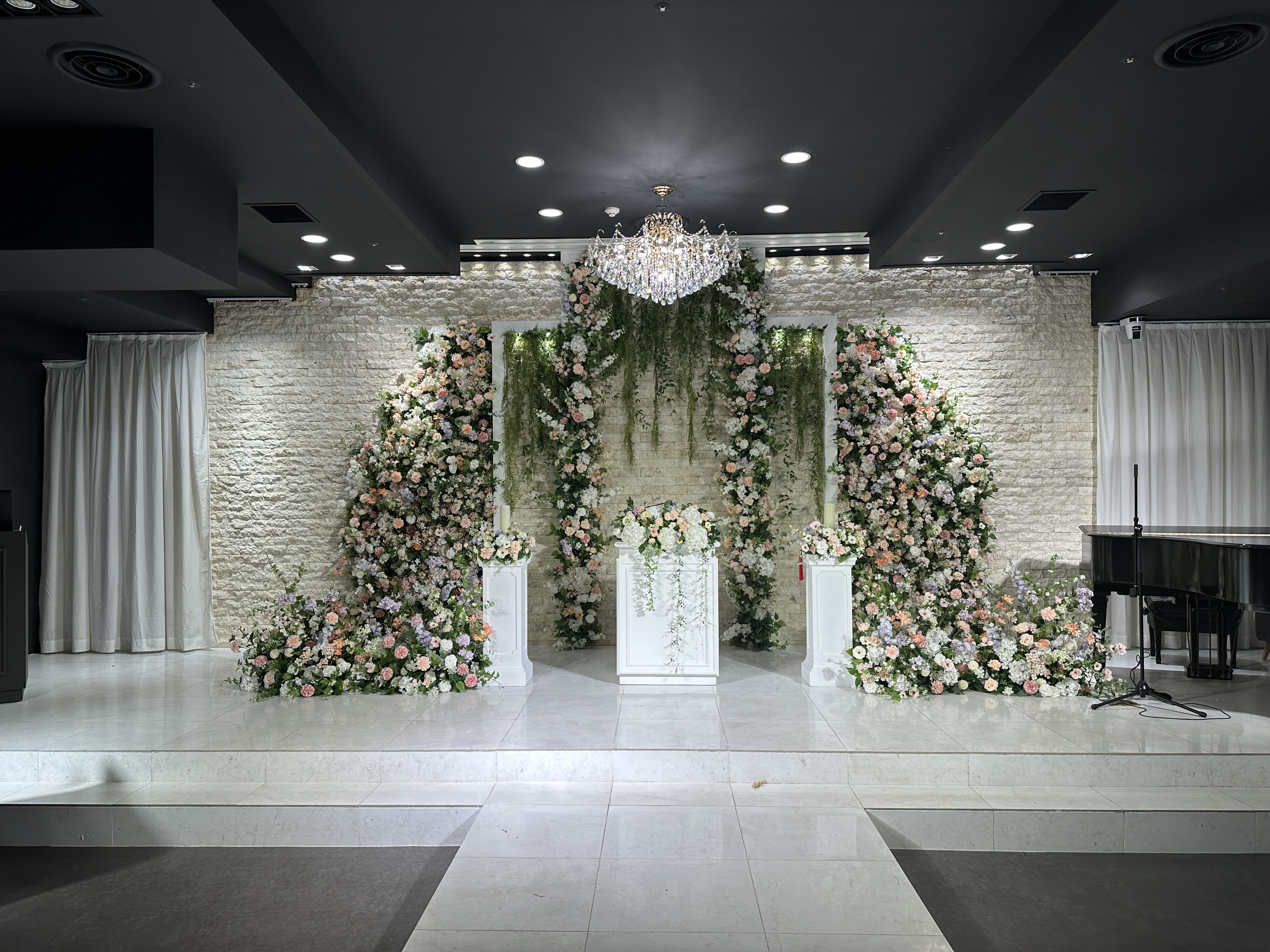 식을 올리게 된다면 이 곳에서 신랑 신부가 마주보게 되겠죠? ㅎㅎㅎ 꽃장식이 화려합니다. 느낌 가져가세요~!
